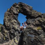 Ein wenig naiv dachten wir, in einer Stunde sind wir oben. Es sollte sich aber im laufe der Zeit zeigen, dass wir mit unserer Einschätzung ziemlich falsch lagen. Es ging hoch und runter über Stock und Stein, aber nach 45 Minuten wurden wir mit dem ersten schönen Panorama und einer Sehenswürdigkeit belohnt – der Felsen mit dem Namen “der Ehering”. Der Aberglaube besagt, dass man durch den Ring krabbelt oder klettert und sich währenddessen etwas wünschen soll. Das ließen wir uns nicht zweimal sagen und nach und nach krabbelten wir durch das Gestein. Wie immer mit ausgelassenem Fotoshooting.