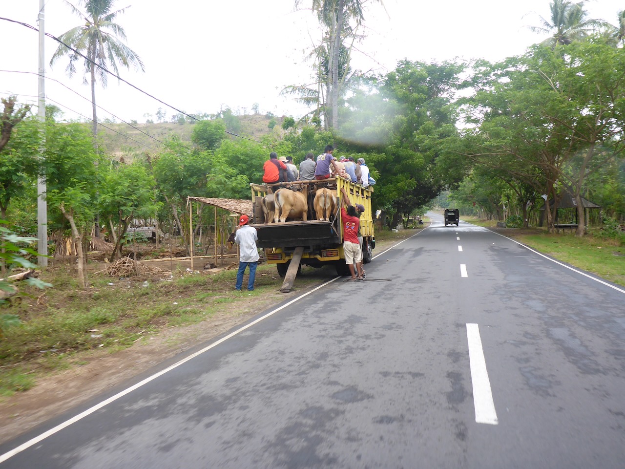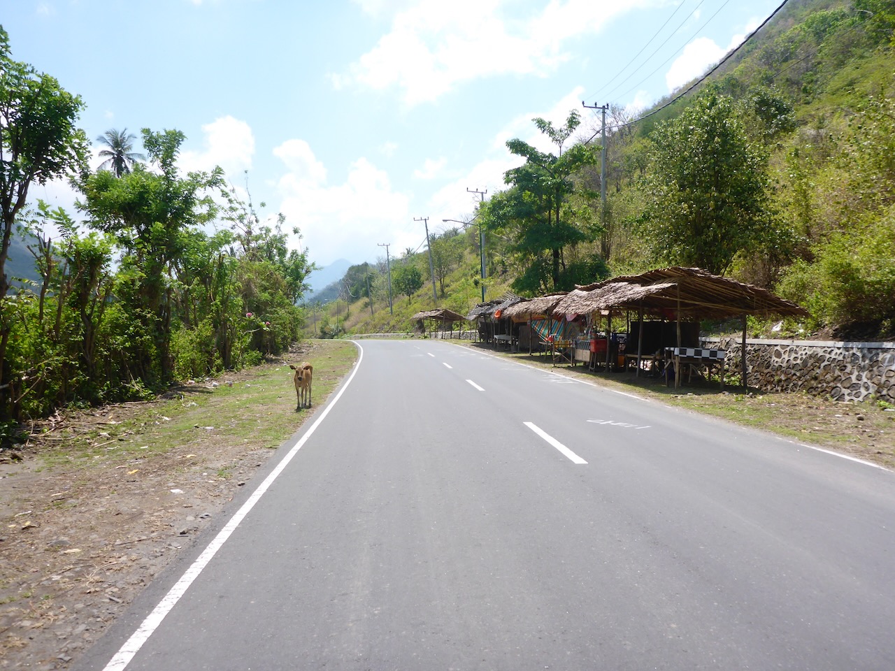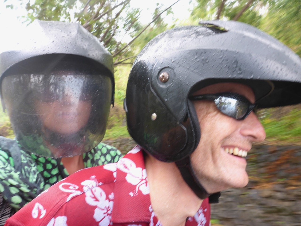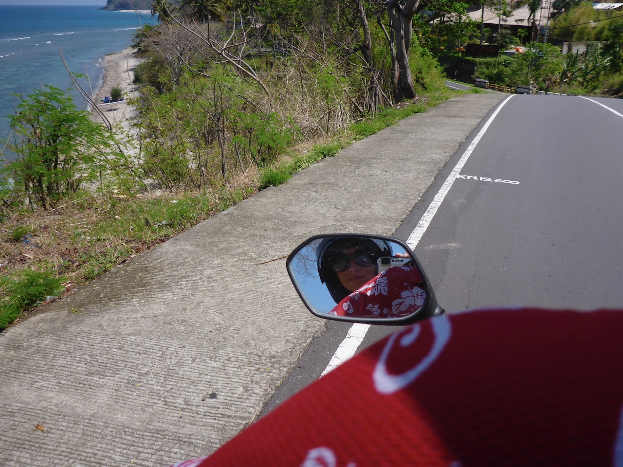 Отседнахме на същото място, като предният път и на следващия ден наехме скутер и поехме на север. За беда един голям черен облак се залепи за нас и реши да ни следва, а и морето в залива Нипа, където мислехме да спрем не беше спокойно, затова продължихме напред. На един завой пред нас се откри прекрасна гледка към трите Гили, а половин километър по-нататък ни разхлади отгоре. Опитахме се да избягаме от черните облаци и дъжда продължавайки на север, където изглеждаше слънчево, но някакси не успяхме да открием плажът за шнорхелуване даден на картата, за това решихме да обърнем назад. Естествено пак трябваше да минем през охладителната система, която все още висеше над заливчето, затова се върнахме в Сингиги, където въобще не беше валяло :/