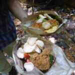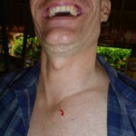 Am Ende des Ausfluges saßen wir noch nett zusammen, aber als der Rutzel sein T-Shirt etwas aufknöpfte, zeigte Frau Rutzel ganz angeekelt an die Brust vom Rutzel und stoß ein “iiiiiiiiihhhh” aus. Da hatte sich doch ein Blutegel an Rutzels Blut ganz fett gefuttert. Rinto nahm das dicke Ding gekonnt ab und auf die Bissstelle kam zum Blutstillen ein wenig Tabak.