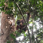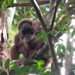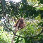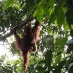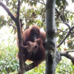 Am nächsten morgen holte uns Rinto, sein Assistent (den Namen haben wir leider vergessen) und Karel, ein sehr netter Holländer der sich unserem Ausflug anschloss, an. Wir erfuhren viel über die Flora und Fauna. Wir bekamen Krallenabdrücke eines Malaienbär (in Indonesien?) am Baum gezeigt und hörten die Laute von verschiedenen Nashornvögel Arten. 3 Arten bekamen wir sogar kurz zu Gesicht. Warum müssen die immer so hoch oben und so unruhig sitzen? Ein Foto zu schießen war leider nicht möglich :-(. Danach ließen sich auch die Thomas Leaf Monkeys blicken. Diese nur hier vorkommende Affenart, die man leicht an ihrem tollen Haarschnitt erkennt, wird von den Einheimischen liebevoll “Punky Monkey” genant. Ein viel passender Name. Rinto und sein Assi sorgten wirklich für eine tolle Auswahl der Wanderroute, auch gerne mal quer Feld, besser gesagt Wald ein. Es folgte eine Pfauenart, die sich von uns überhaupt nicht aus der Ruhe bringen lassen wollte und ein leckeres Mittagessen an einem kleinen Bach. Aber hier waren wir nicht alleine, denn eine Schlangenhalsschildkröte nannte diesen kleinen Bach ihr Zuhause. Nach der Stärkung ging es weiter durch den Wald und dann erblickte Rinto eine Orang-Utan Mama mit ihrem jungen Bavon. Innerlich hüpften die Rutzels vor Glück. Wir beobachteten die beiden ausgiebig bis der Assi von Rinto weitere Orang-Utans sichtete. Es wurde dann für uns wirklich ein unvergessliches Erlebnis. Wir sahen am Ende insgesamt 12 Orang-Utans, davon 4 in der Wildnis geborene Bavons und einen wildes Männchen. Nein eigentlich 2., denn der Rutzel war ja auch noch da :-).