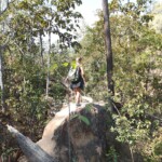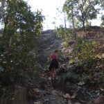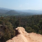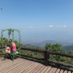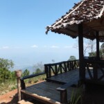 Im Anschluss wollten wir auf einen Aussichtspunkt fahren, der nur 13km von der Hauptstraße entfernt liegt. Auf dem Schild, das wir am Tag zuvor beim Besuchs des Wasserfalls gesehen haben, steht, dass man hierfür 45 Minuten mit dem Moped braucht. Naja, nachdem die „Straßenverhältnisse“ immer schlechter wurden – nein anders formuliert – nachdem der Schotterweg immer staubiger und ausgewaschener wurde und das Moped nicht mehr weiter mit uns bergauf wollte, da liessen wir es stehen um die nächsten 500-600 Höhenmeter zu Fuß durch den „Alpinen Wald“ zu laufen. Frau Rutzel benötigte auf dem Weg nach oben die ein oder andere Pause und Erinnerungen an die verzweifelte Tat am Mount Kinabalu wurden geweckt ;-). Aber dafür war die Aussicht auf 1624 Metern wirklich atemberaubend und auf dem Weg nach unten lief Frau Rutzel wieder wie ein aufgezogener Duracell Hase. Könnte durchaus sein, dass sie vom Geruch der Knoblauch LKW´s angezogen wurde ;-).