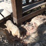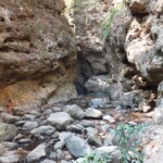 Wir starteten frühmorgens zum Canyon und die Suche nach der Hündin ging los. Nachdem wir sie gefunden haben bekam sie erst einmal eine riesige Portion Futter, Frau Rutzel organisierte ein Gefäß und sogar Wasser vom Filmteam, das nun auch sein komplettes Set inklusive Verpflegungsstation aufgebaut hatte. Die Idee war, das Hundefutter einem der Leute vom Filmset zu geben, damit die Hündin für die nächsten 5-7 Tage gut versorgt ist. Nachdem sie für heute versorgt war, wollten wir erst die Gegend erkunden und dann die Person ausdeuten, die für das Futter verantwortlich gemacht wird. Da das Filmteam die Hauptwege für sich in Anspruch genommen hatte, suchten wir uns unseren Weg. Also ernannten wir einen ausgetrockneten Bachlauf zu unserem Weg und verfolgten diesen, bis wir irgendwie mal wieder Hügelluft schnuppern wollten. Oben angekommen machten wir uns ein Bild und entschieden uns mal von Hinten an das Filmset zu pirschen ;-). Das gelang uns natürlich auch, aber als wir schön hinter dem Set standen, hörten wir Hundegejaule und wir wurden ziemlich nervös. So warteten wir eine Szene ab und sprengten das Set (natürlich fragten wir vorher ;-). Schnell begaben wir uns Richtung Hundegejaule und auf dem Weg dort hin trafen wir auf einen Franzosen, der gerade das Restfutter und das Wasser von uns in der Hand hielt. Er erzählte uns, dass eine Hündin ihre Bavons unter einer Brücke aufzieht. An der Brücke angekommen durften wir feststellen, dass es unsere Hündin war. Wir waren beruhigt, vor allem weil wir nun das komplette Futter bei ihr und ihren 4 Bavons lassen konnten. Mit einem weinenden und einem lachenden Auge liessen wir die 5 zurück, in der Hoffnung, dass alle überleben…