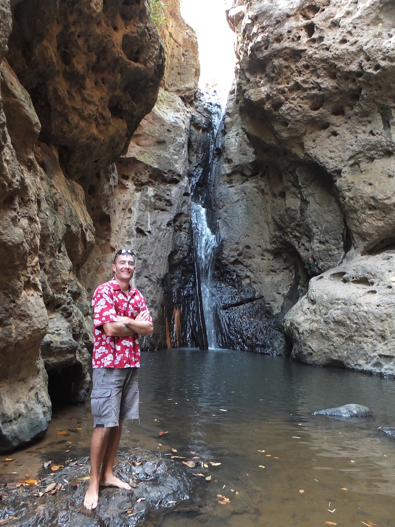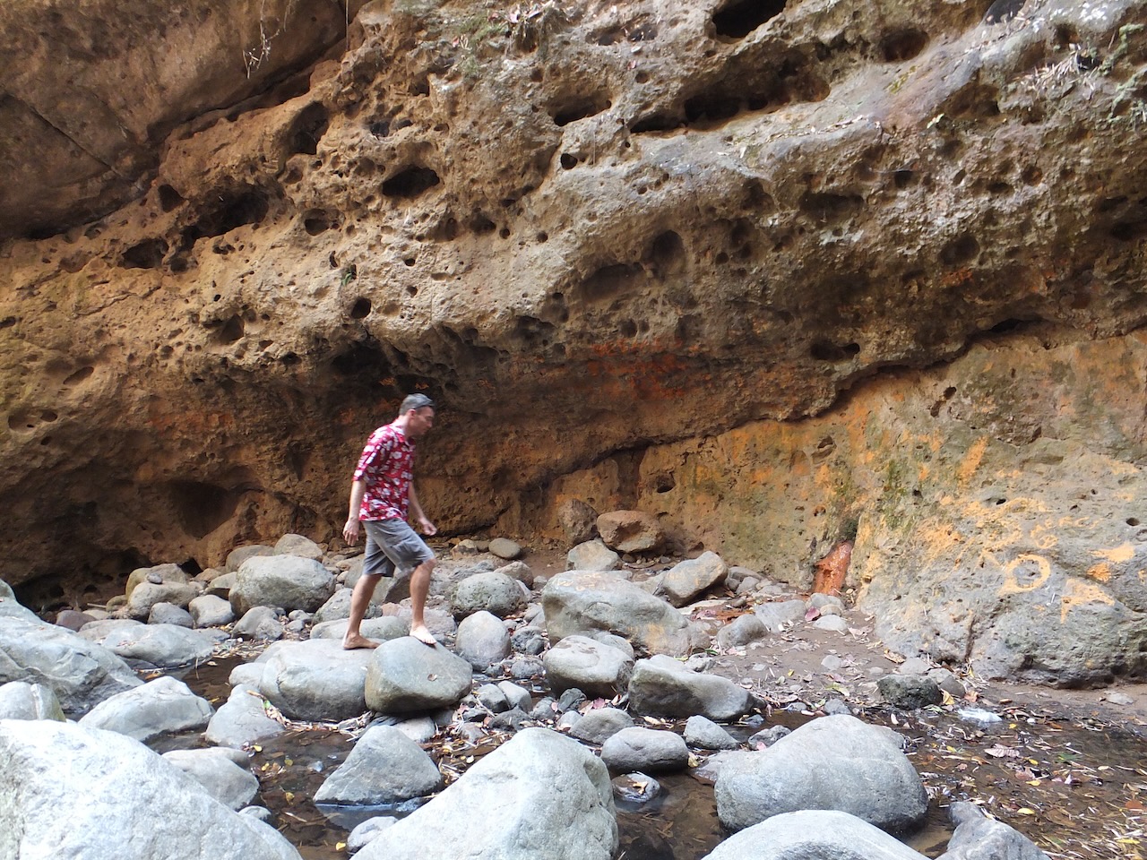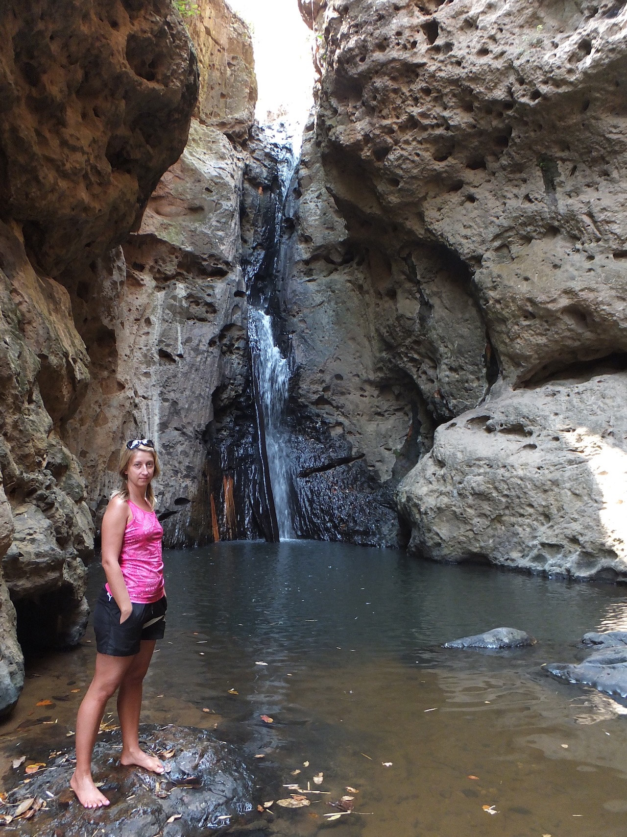 Wir starteten frühmorgens zum Canyon und die Suche nach der Hündin ging los. Nachdem wir sie gefunden haben bekam sie erst einmal eine riesige Portion Futter, Frau Rutzel organisierte ein Gefäß und sogar Wasser vom Filmteam, das nun auch sein komplettes Set inklusive Verpflegungsstation aufgebaut hatte. Die Idee war, das Hundefutter einem der Leute vom Filmset zu geben, damit die Hündin für die nächsten 5-7 Tage gut versorgt ist. Nachdem sie für heute versorgt war, wollten wir erst die Gegend erkunden und dann die Person ausdeuten, die für das Futter verantwortlich gemacht wird. Da das Filmteam die Hauptwege für sich in Anspruch genommen hatte, suchten wir uns unseren Weg. Also ernannten wir einen ausgetrockneten Bachlauf zu unserem Weg und verfolgten diesen, bis wir irgendwie mal wieder Hügelluft schnuppern wollten. Oben angekommen machten wir uns ein Bild und entschieden uns mal von Hinten an das Filmset zu pirschen ;-). Das gelang uns natürlich auch, aber als wir schön hinter dem Set standen, hörten wir Hundegejaule und wir wurden ziemlich nervös. So warteten wir eine Szene ab und sprengten das Set (natürlich fragten wir vorher ;-). Schnell begaben wir uns Richtung Hundegejaule und auf dem Weg dort hin trafen wir auf einen Franzosen, der gerade das Restfutter und das Wasser von uns in der Hand hielt. Er erzählte uns, dass eine Hündin ihre Bavons unter einer Brücke aufzieht. An der Brücke angekommen durften wir feststellen, dass es unsere Hündin war. Wir waren beruhigt, vor allem weil wir nun das komplette Futter bei ihr und ihren 4 Bavons lassen konnten. Mit einem weinenden und einem lachenden Auge liessen wir die 5 zurück, in der Hoffnung, dass alle überleben…