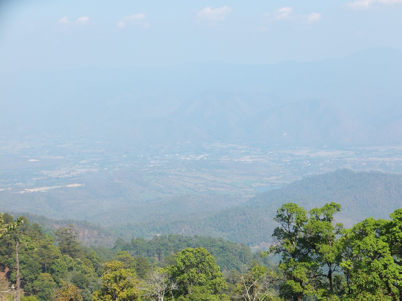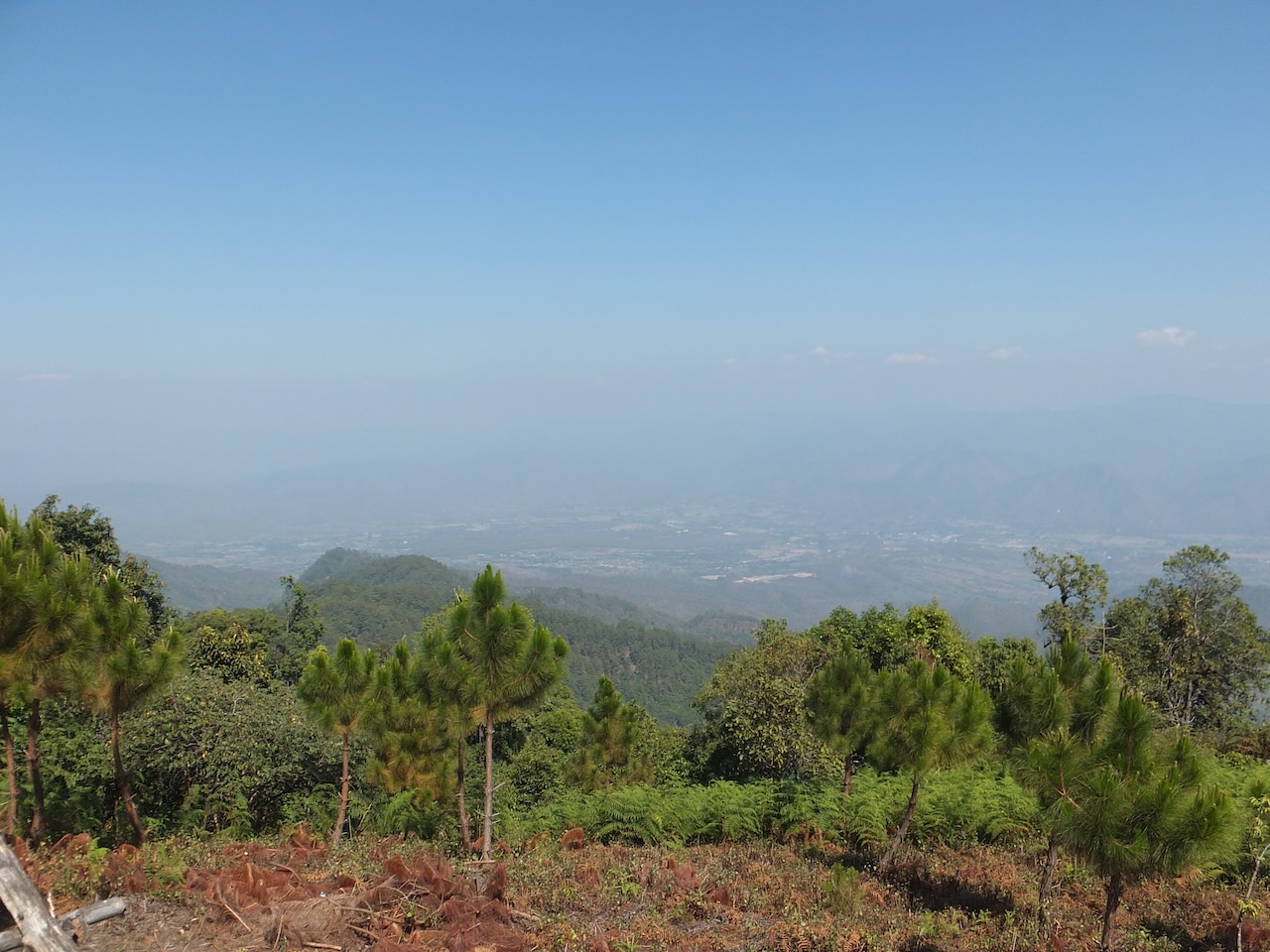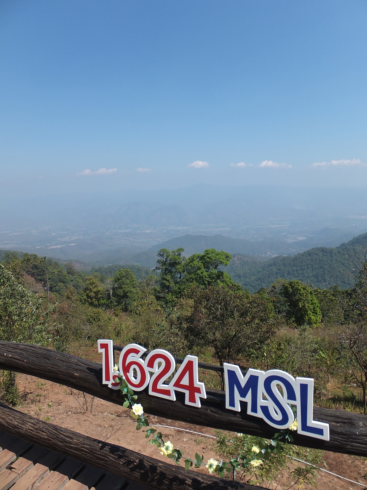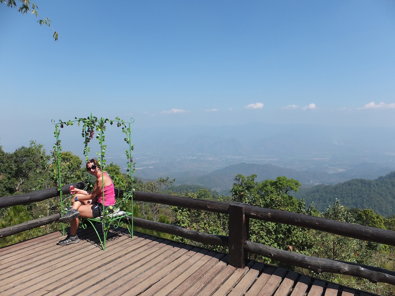 Im Anschluss wollten wir auf einen Aussichtspunkt fahren, der nur 13km von der Hauptstraße entfernt liegt. Auf dem Schild, das wir am Tag zuvor beim Besuchs des Wasserfalls gesehen haben, steht, dass man hierfür 45 Minuten mit dem Moped braucht. Naja, nachdem die „Straßenverhältnisse“ immer schlechter wurden – nein anders formuliert – nachdem der Schotterweg immer staubiger und ausgewaschener wurde und das Moped nicht mehr weiter mit uns bergauf wollte, da liessen wir es stehen um die nächsten 500-600 Höhenmeter zu Fuß durch den „Alpinen Wald“ zu laufen. Frau Rutzel benötigte auf dem Weg nach oben die ein oder andere Pause und Erinnerungen an die verzweifelte Tat am Mount Kinabalu wurden geweckt ;-). Aber dafür war die Aussicht auf 1624 Metern wirklich atemberaubend und auf dem Weg nach unten lief Frau Rutzel wieder wie ein aufgezogener Duracell Hase. Könnte durchaus sein, dass sie vom Geruch der Knoblauch LKW´s angezogen wurde ;-).