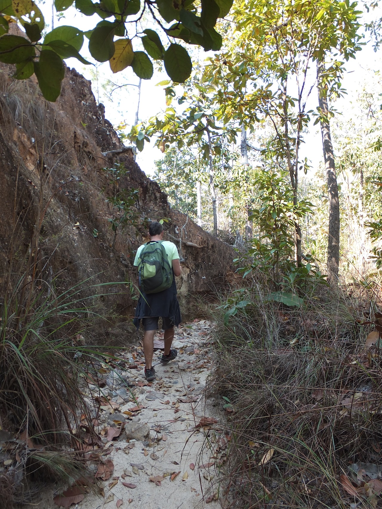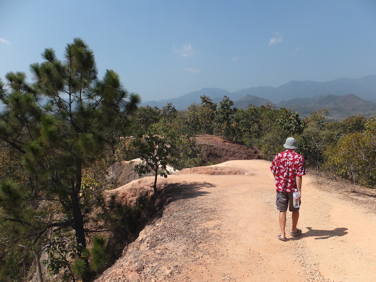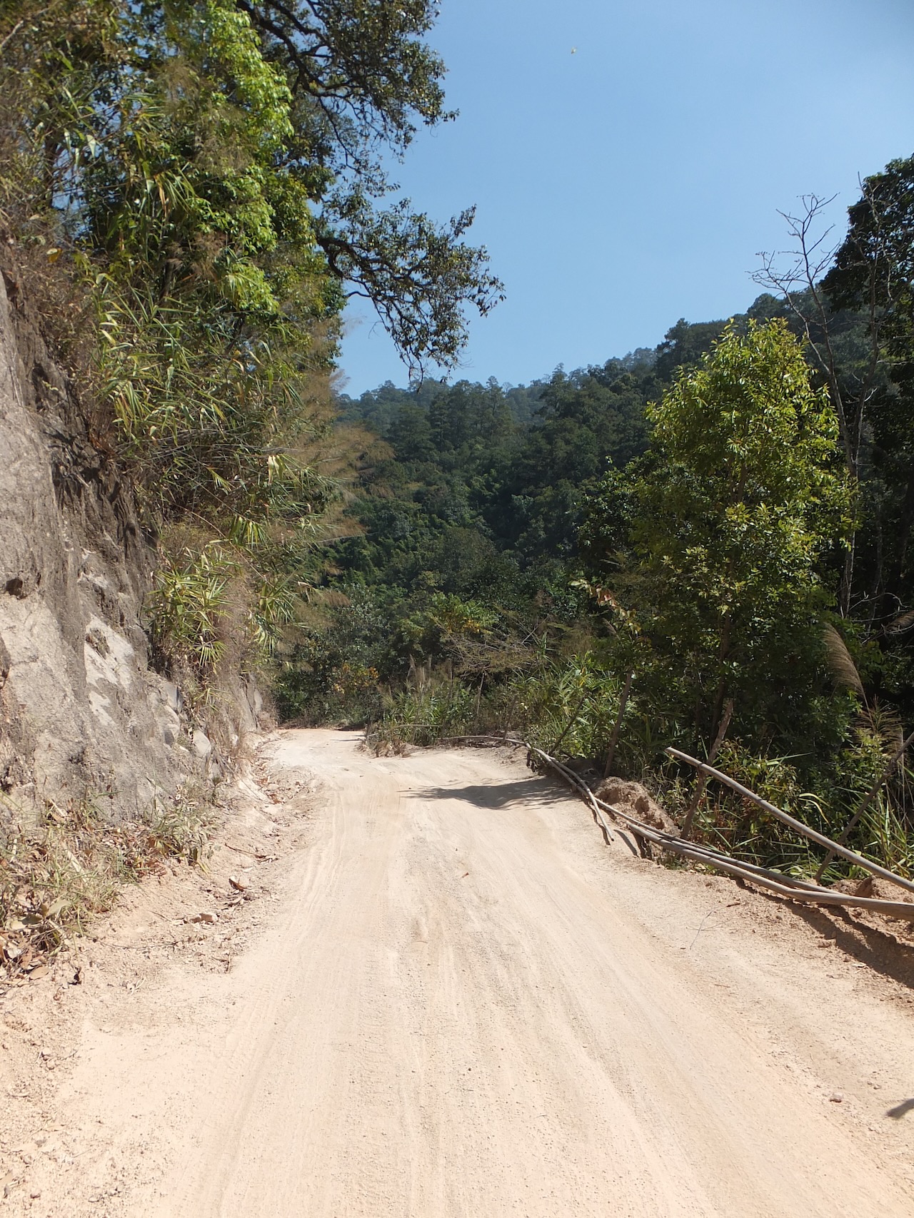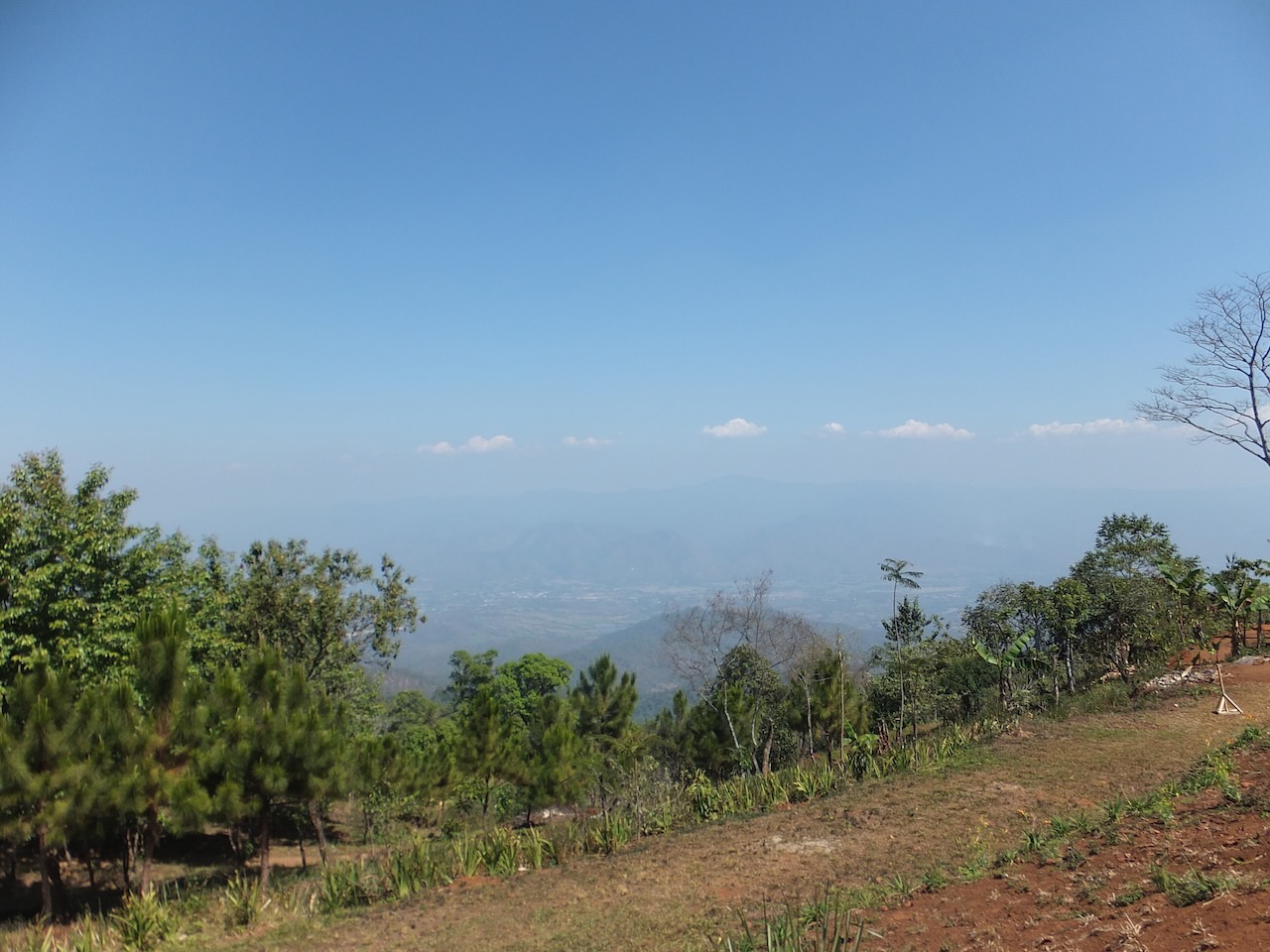 Im Anschluss wollten wir auf einen Aussichtspunkt fahren, der nur 13km von der Hauptstraße entfernt liegt. Auf dem Schild, das wir am Tag zuvor beim Besuchs des Wasserfalls gesehen haben, steht, dass man hierfür 45 Minuten mit dem Moped braucht. Naja, nachdem die „Straßenverhältnisse“ immer schlechter wurden – nein anders formuliert – nachdem der Schotterweg immer staubiger und ausgewaschener wurde und das Moped nicht mehr weiter mit uns bergauf wollte, da liessen wir es stehen um die nächsten 500-600 Höhenmeter zu Fuß durch den „Alpinen Wald“ zu laufen. Frau Rutzel benötigte auf dem Weg nach oben die ein oder andere Pause und Erinnerungen an die verzweifelte Tat am Mount Kinabalu wurden geweckt ;-). Aber dafür war die Aussicht auf 1624 Metern wirklich atemberaubend und auf dem Weg nach unten lief Frau Rutzel wieder wie ein aufgezogener Duracell Hase. Könnte durchaus sein, dass sie vom Geruch der Knoblauch LKW´s angezogen wurde ;-).