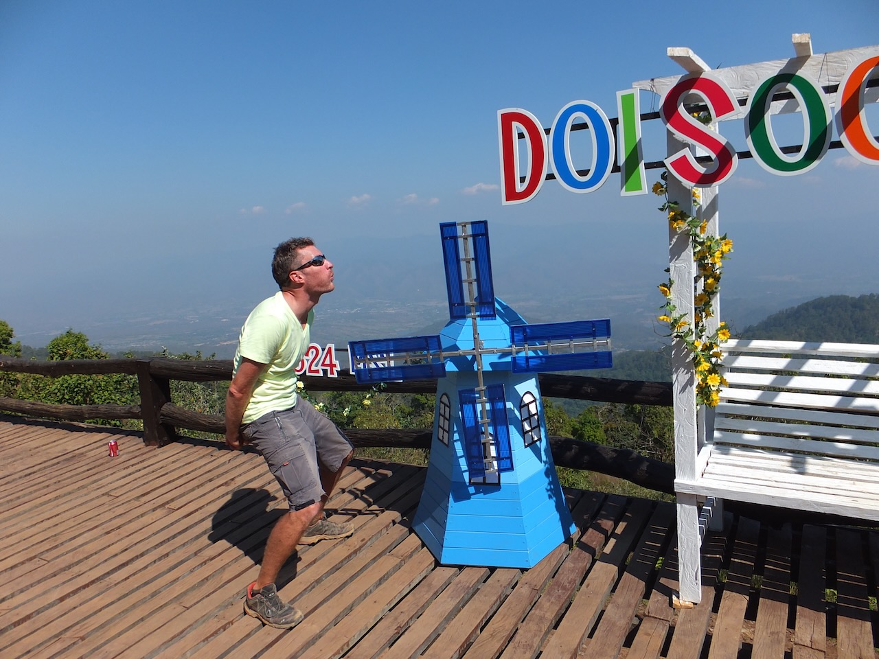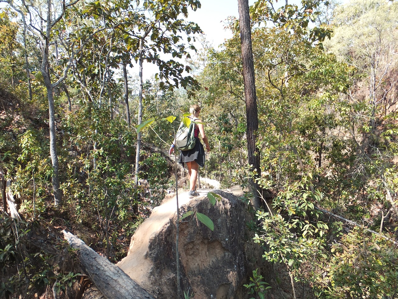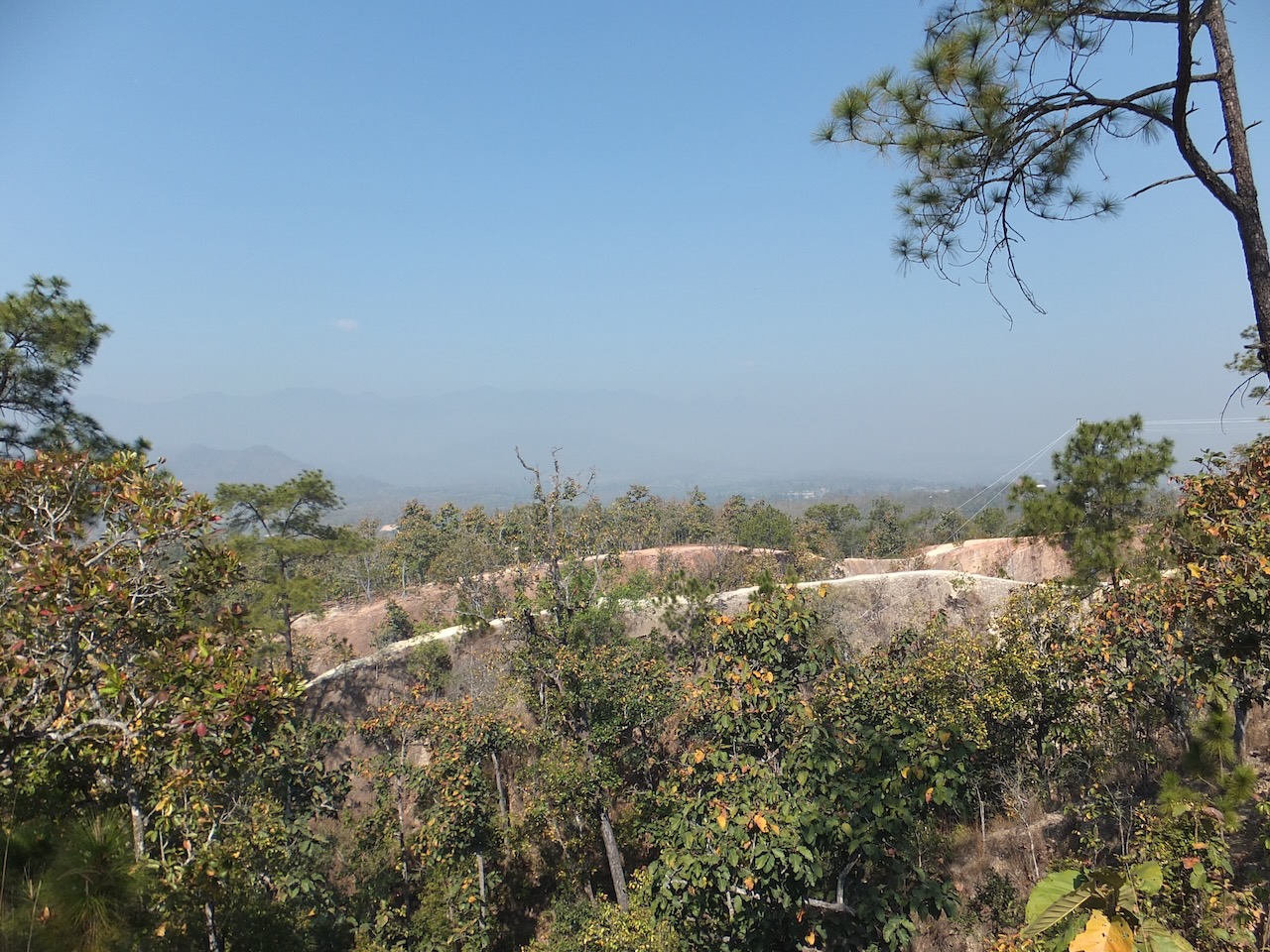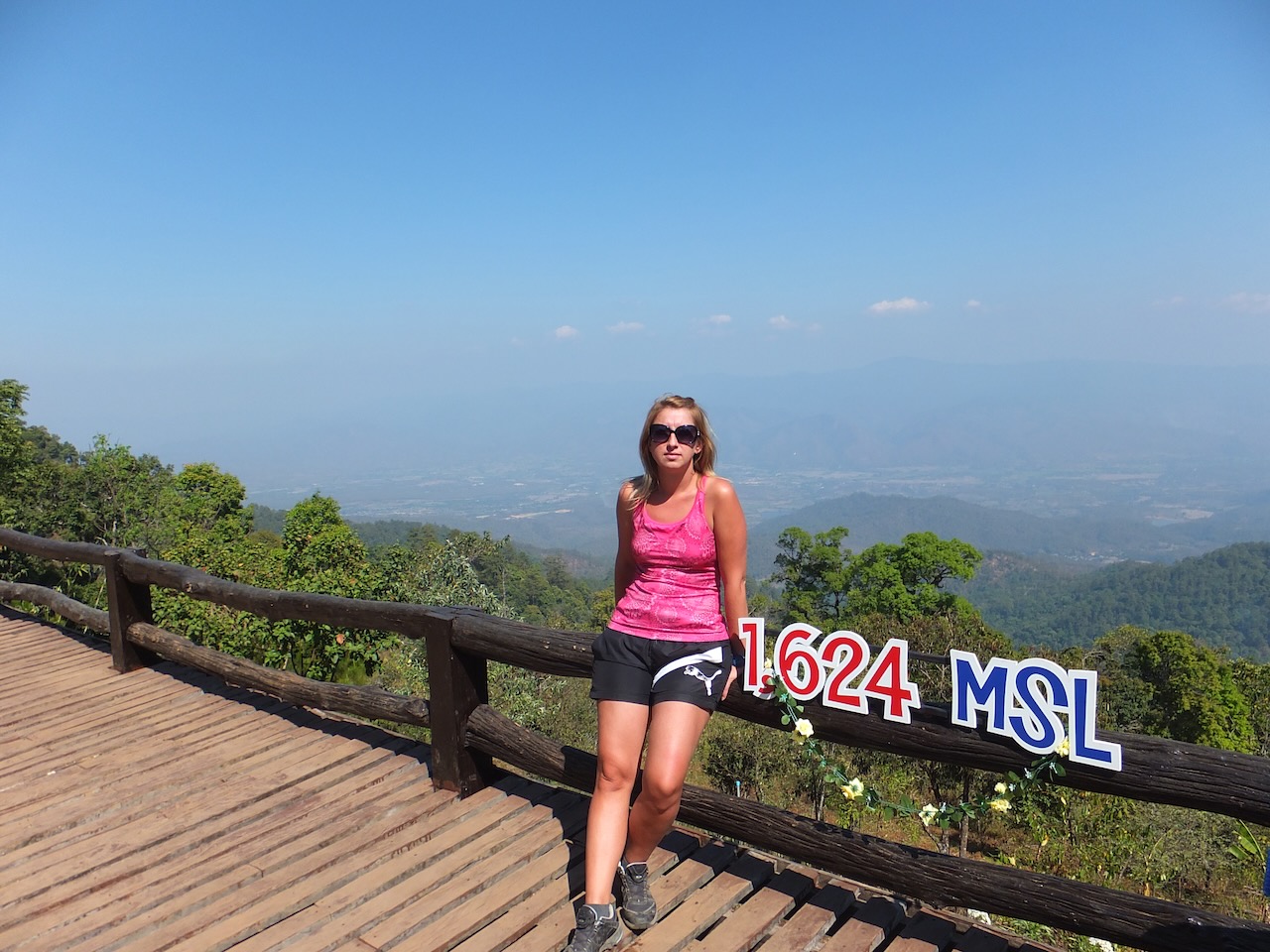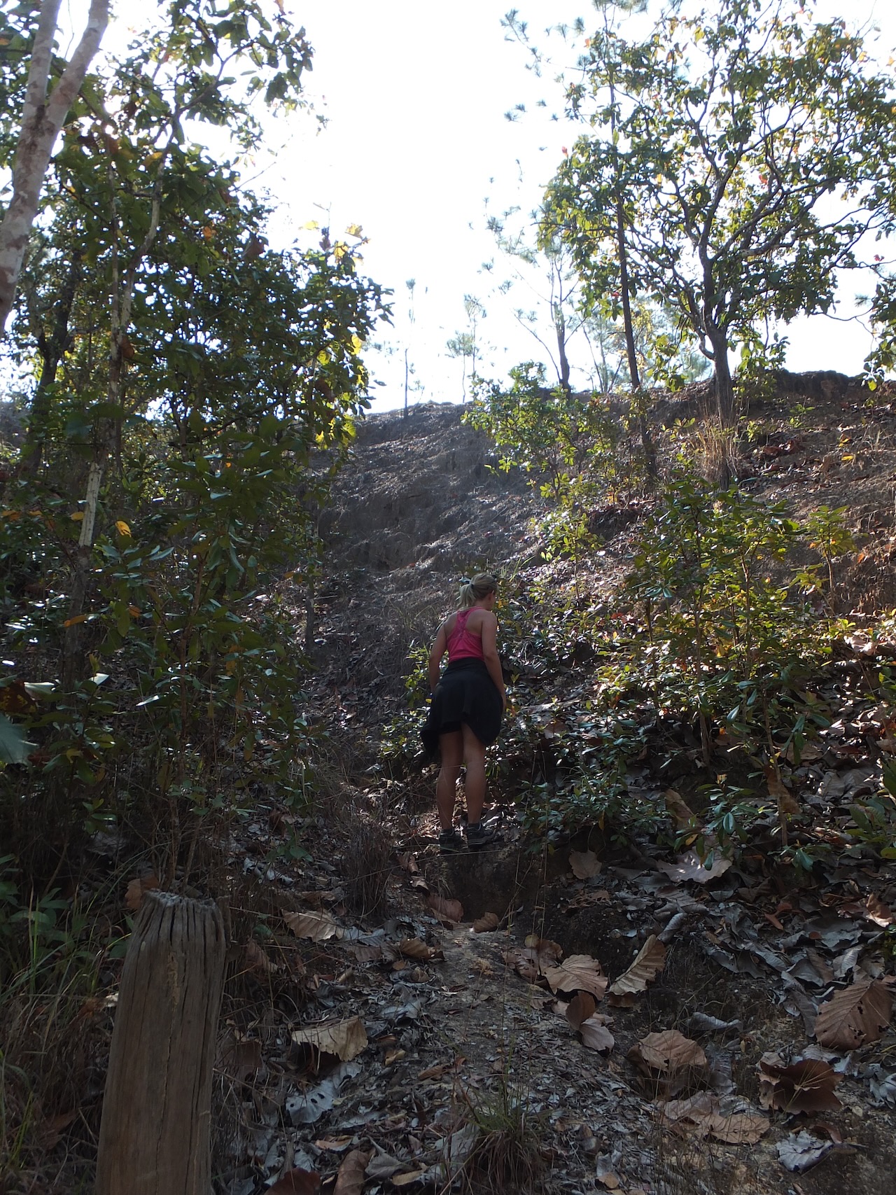 Im Anschluss wollten wir auf einen Aussichtspunkt fahren, der nur 13km von der Hauptstraße entfernt liegt. Auf dem Schild, das wir am Tag zuvor beim Besuchs des Wasserfalls gesehen haben, steht, dass man hierfür 45 Minuten mit dem Moped braucht. Naja, nachdem die „Straßenverhältnisse“ immer schlechter wurden – nein anders formuliert – nachdem der Schotterweg immer staubiger und ausgewaschener wurde und das Moped nicht mehr weiter mit uns bergauf wollte, da liessen wir es stehen um die nächsten 500-600 Höhenmeter zu Fuß durch den „Alpinen Wald“ zu laufen. Frau Rutzel benötigte auf dem Weg nach oben die ein oder andere Pause und Erinnerungen an die verzweifelte Tat am Mount Kinabalu wurden geweckt ;-). Aber dafür war die Aussicht auf 1624 Metern wirklich atemberaubend und auf dem Weg nach unten lief Frau Rutzel wieder wie ein aufgezogener Duracell Hase. Könnte durchaus sein, dass sie vom Geruch der Knoblauch LKW´s angezogen wurde ;-).