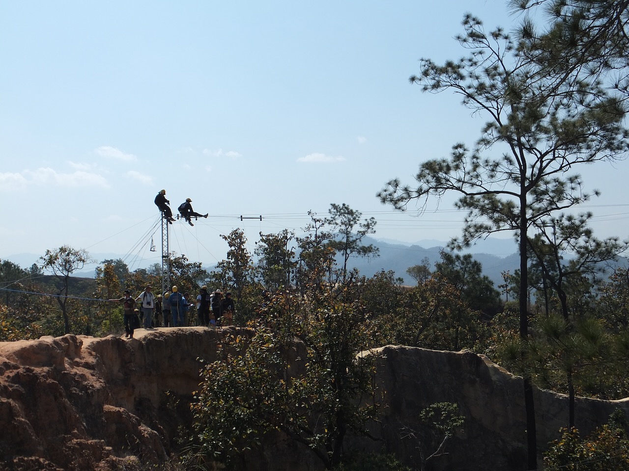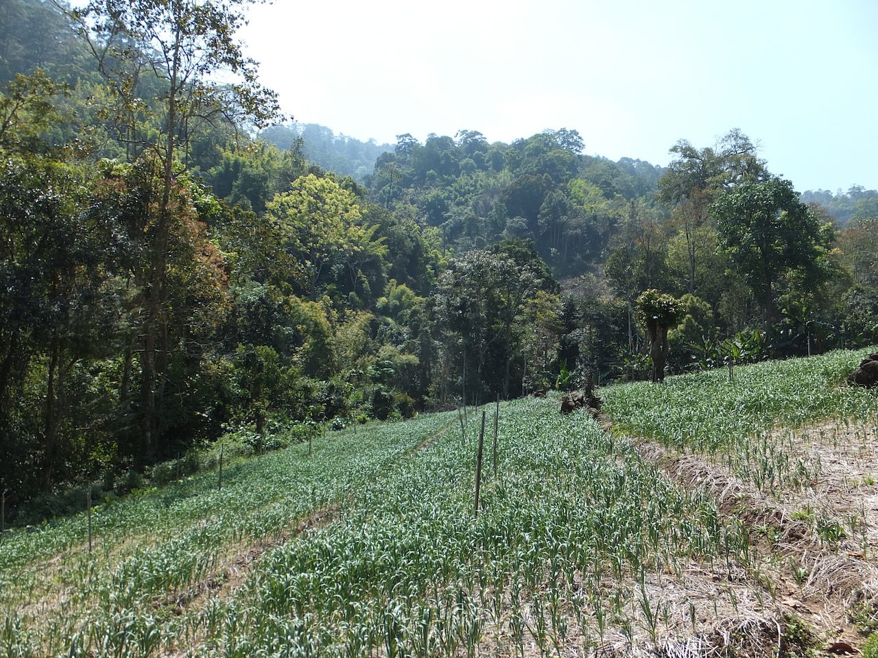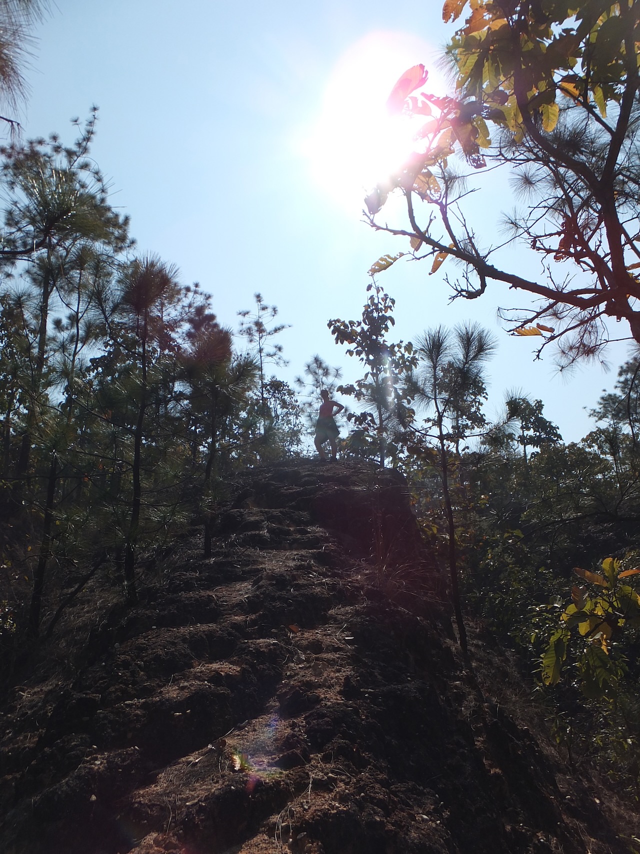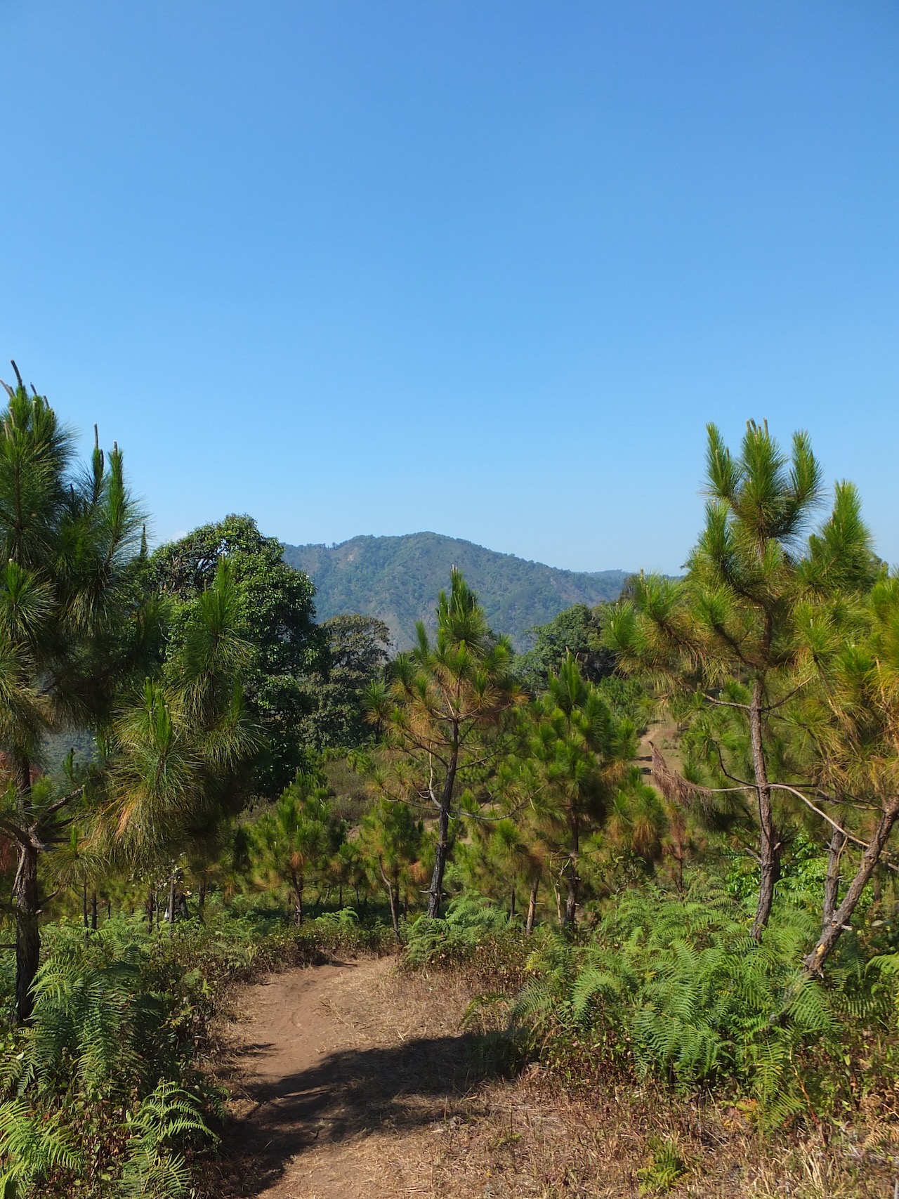 Im Anschluss wollten wir auf einen Aussichtspunkt fahren, der nur 13km von der Hauptstraße entfernt liegt. Auf dem Schild, das wir am Tag zuvor beim Besuchs des Wasserfalls gesehen haben, steht, dass man hierfür 45 Minuten mit dem Moped braucht. Naja, nachdem die „Straßenverhältnisse“ immer schlechter wurden – nein anders formuliert – nachdem der Schotterweg immer staubiger und ausgewaschener wurde und das Moped nicht mehr weiter mit uns bergauf wollte, da liessen wir es stehen um die nächsten 500-600 Höhenmeter zu Fuß durch den „Alpinen Wald“ zu laufen. Frau Rutzel benötigte auf dem Weg nach oben die ein oder andere Pause und Erinnerungen an die verzweifelte Tat am Mount Kinabalu wurden geweckt ;-). Aber dafür war die Aussicht auf 1624 Metern wirklich atemberaubend und auf dem Weg nach unten lief Frau Rutzel wieder wie ein aufgezogener Duracell Hase. Könnte durchaus sein, dass sie vom Geruch der Knoblauch LKW´s angezogen wurde ;-).