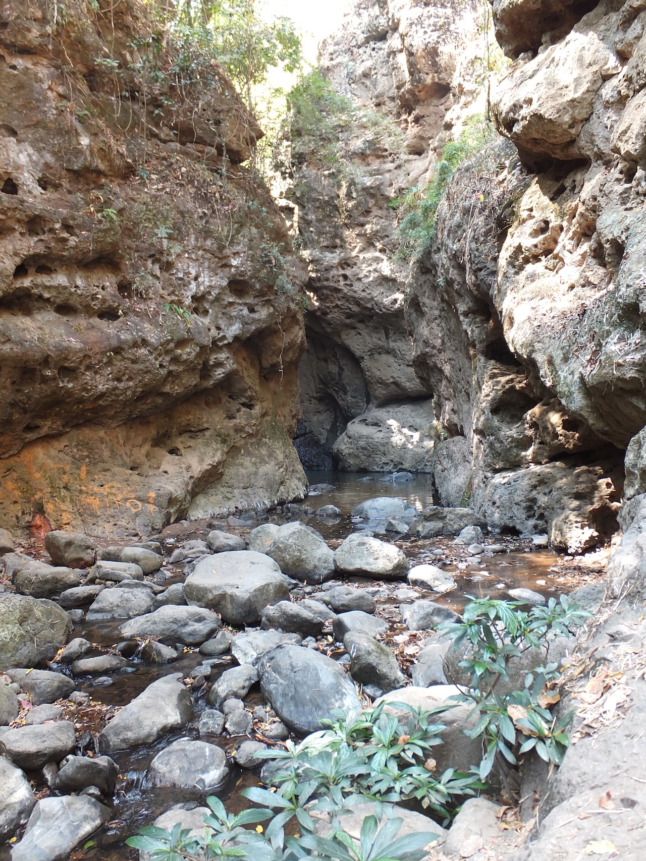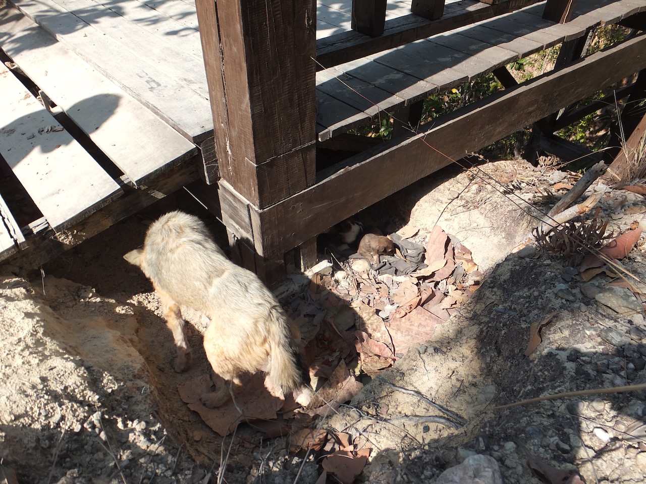 Als wir einen Tag zuvor mit dem Motorrad in der Nähe des Canyons waren, dachten wir uns, komm den schauen wir uns mal schnell an. Mit Flip-Flops an den Füßen und nur mit wenig Wasser ausgestattet stellten wir gleich fest, dass es mit dieser „Einstellung und Ausrüstung” keinen Sinn macht. Trotzdem schauten wir uns ein wenig um und durften zu unserem Vergnügen feststellen, dass hier gerade ein asiatisches Filmset aufgebaut wird. Es war schon lustig anzuschauen wie hier gearbeitet wurde :-). Doch gleich im nächsten Augenblick bekamen wir eine Hündin zu Gesicht, die wirklich nicht sehr gut aussah. Ihr Hals und Brust war entweder aufgrund einer Hautkrankheit stark entzündet oder es war eine Schürfverletzung aufgrund eines Absturzes… Egal, es hat uns das Herz gebrochen und sofort waren wir auf der Suche nach Wasser und Futter. Warum auch immer, fanden wir am Parkplatz Hundefutter, das Wasser für uns war nun für die Hündin und ein Plastikbehälter war auch schnell gefunden. Nachdem die Hündin versorgt war, stand der Plan für den nächsten Tag: richtige Ausrüstung für uns mitnehmen und genügend Hundetrockenfutter kaufen.