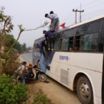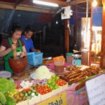 Die Fahrt mit dem internationalen Thai-Lao Direktbus verlief reibungslos. Mittags um 12:30 Uhr ging es in Chiang Rai los, gegen 15:00 Uhr erledigten wir die Grenzformalitäten, die aus einem Fragebogen mit Angaben zur Person/Reise waren und gegen eine Gebühr von 30$ bekam man sein Pass inkl. Visum zurück. Um 19:30 Uhr war Ankunft am Busbahnhof in Luang Namtha, der sich 10km außerhalb der Stadt befindet. Warum nur? Klar, die Tuk-Tuk Fahrer wollen doch auch etwas an uns verdienen. Aber natürlich nicht ohne Handeln, wobei man am Abend immer am kleineren Hebel sitzt :-). In der Innenstadt angekommen, machten sich Juggy und der Rutzel auf die Suche nach einer Unterschlupf für die erste Nacht. Es war natürlich dunkel und für die Suche nach “der Unterkunft” war es zu spät, aber die Mädels waren am nächsten Morgen hierfür eingeplant. Der kleine Nachtmarkt war schon gähnend leer und so aßen wir in einem Restaurant das normalerweise bis 22:00 Uhr geöffnet hat. Aber gegen 21:50 Uhr kam die Chefin und teilte uns mit, dass sie müde sei und wir doch bitte zahlen sollten, weil sie ins Bett wolle. Bitte nicht falsch verstehen, sie war wirklich nett. Trotzdem wunderten wir uns ein bisschen. Aber wenn man bedenkt, dass Laos unter einem Einparteiensystem regiert wird, dann sind die Regeln wie z.B. um 22 oder 23 Uhr schließt das Guesthouse seine Tore, die Restaurants müssen ebenfalls zu diesen Zeitangabe schließen, nachvollziehbar. Ordnung muss sein und die Gästehäuser müssen wirklich auf ihre Gäste “aufpassen”.