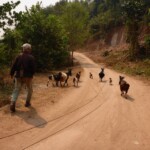 Ausgeschlafen und fit für eine längere Fahrt, mieteten wir uns am nächsten Morgen 2 Mopeds, die uns in den Nord-Westen in das 55km entfernte kleine Dorf Muang Sing führen sollte, das auch gerne das „Goldene Dreieck“ von Laos, Mynmar und China genannt wird. Wir fuhren aber nicht mehr mit der Erwartung los, dass wir nun den langersähnten Primärwald auf der Strecke zu sehen bekommen, da wir vorher Franzi, eine deutsche Biologin die seit 9 Monaten in der Gegend lebt und forscht, kennen gelernt haben. Sie teilte uns mit, dass die geschützten Wälder nur teilweise geschützt werden können, da die hiesigen Bergvölker die Erlaubnis haben, die Wälder auch zur landwirtschaftlichen Nutzung zu verwenden. Das hat u.a. Brandrodung zu Folge, gerade in der trockenen und heissen Zeit im März/April ein begehrtes Mittel. Viel schlimmer ist jedoch die Nachfrage der Industrienationen, wie z.B. der große Nachbar China, nach edlen Hölzern, Kautschuk und einheimische Tiere jeglicher Art. Es sind wir, die immer gierigere und nicht satt werdende „zivilisierte Menschheit“, die unsere Umwelt und Natur zerstören und nicht die Menschen die schon seit Jahrhunderten mit der Natur im Einklang leben. Wenn Laos, das einzige Binnenland Südostasiens seine “grüne Hölle“ komplett opfert, dann wird der vielversprechende Öko-Tourismus einbrechen bevor dieser überhaupt richtig begonnen hat. Auch nach 20km hat sich die Szenerie nicht geändert und da unsere Mopeds ziemlich klapprig waren, haben wir unseren Ausflug abgebrochen und sind zurückgefahren. Wir entschieden uns auch gegen eine Trekking-Tour, denn unsere Erwartungen Tiere zu sehen, hätten sich vermutlich nicht bewahrheitet. Im Nachgang mussten wir uns trotzdem die Frage stellen, ob es richtig war, denn die Bergvölker profitieren auch von dem Ökotourismus (vorausgesetzt der Touranbieter teilt den Kuchen mit ihnen in gerechte Stücke).