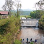 Am nächsten morgen gingen Nicky und Frau Rutzel erneut auf die Suche und kurz danach sind wir in das Thoulasith Guesthouse eingezogen- ein zweistöckiges Haus mit sehr sauberen Zimmern, netten Balkon und sehr freundlichem Personal. Danach stand die erste Stadterkundung an. Wir stellten schnell fest, dass die Stadt an sich nicht so viel zu bieten hat, aber schliesslich sind wir wegen der Natur hierher gekommen. Wir mieteten uns am Weltfrauentag, für alle die es nicht wissen, es ist der 8. März eines jeden Jahres!, ein Fahrrad und erkundeten die Gegend. Überall wurde kräftig, mit lauter Musik und Lao Bier gefeiert, vor allem in den kleinen Dorfgemeinden. Die jüngere Generation zog sich hierfür zum Wasserfall, den wir über die Schotterpiste ansteuerten, zurück. Das Fahrrad geparkt, den kleinen Eintritt bezahlt und nach wenigen Metern erreichten wir den „Wasserfall“ ;-). Es gab kaum Wasser, aber dafür bekamen wir von den Jugendlichen Bier angeboten. Nach dieser kurzen Bierstärkung ging es weiter auf einem steilen, schmalen Pfad oberhalb des Wasserlaufs entlang. Wir kamen immer höher und zwischendurch wussten wir nicht, ob wir den ganzen Weg wieder zurück müssen oder wir einen Rundweg in Angriff genommen haben. Nach 45 Minuten bekamen wir ein kleines Dorf zu sehen, welches sich an der Straße befand, wo auch unsere Fahrräder standen. Wir hatten alles richtig gemacht. Wir sahen im Anschluss noch einige schöne Reisfelder und der erste kleine Ausflug hatte uns Lust auf mehr gemacht.