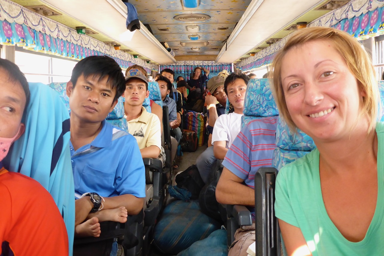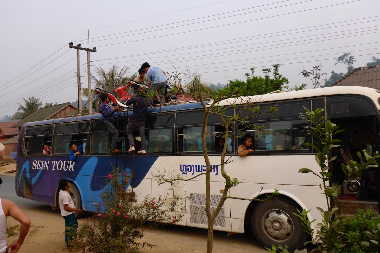 Die meisten Reisenden die von Thailand nach Laos einreisen, entscheiden sich für die beliebten Kombi-Tickets der Agenturen aus den nördlichen Städten Thailands. Hier wird man vom Guesthouse abgeholt und direkt bis an das Ufer der Unesco Stadt Luang Prabang in Laos gebracht. Der Transfer besteht aus einer Bus und Boot Kombination, wobei man die Wahl zwischen 2 Tage mit dem Slowboat oder 6 Stunden Speedboat hat. Das letzt genannte erinnert eher an ein übermotorisiertes 5 Mann Kanu. Beim Speedboat bekommt jeder vor der Abfahrt eine Weste und ein Sturzhelm ausgehändigt. Aufgrund einiger Unfälle in der Vergangenheit macht es auch wirklich Sinn.