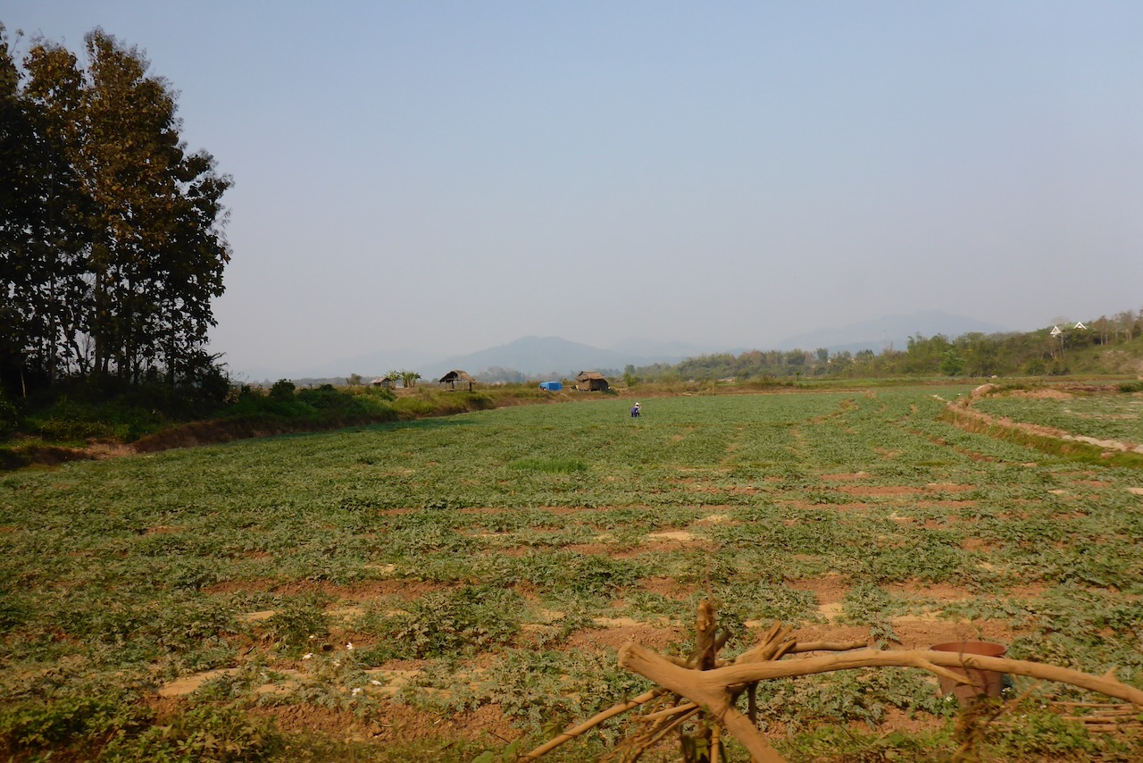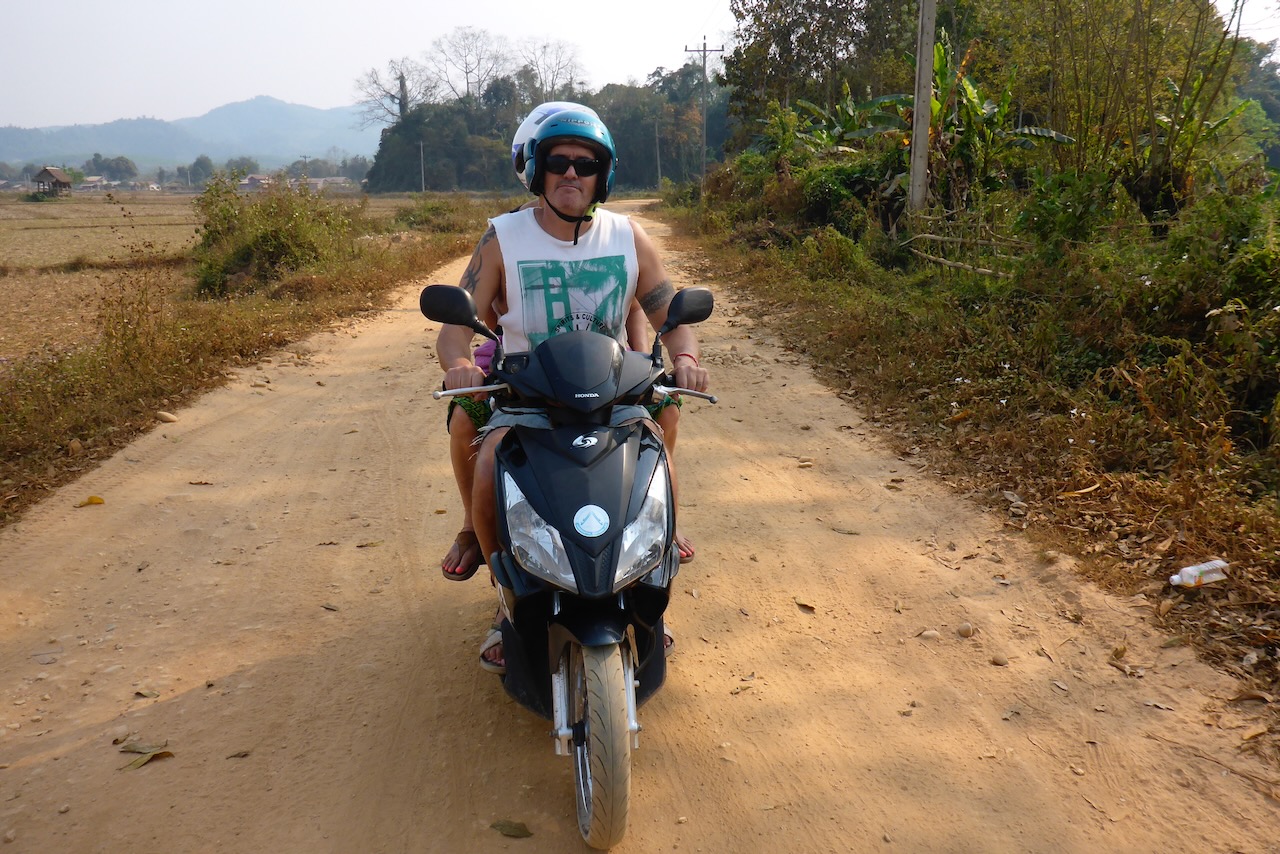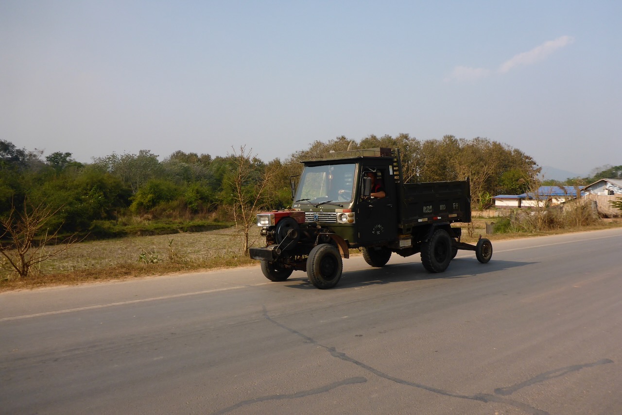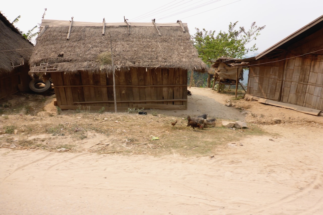 Ausgeschlafen und fit für eine längere Fahrt, mieteten wir uns am nächsten Morgen 2 Mopeds, die uns in den Nord-Westen in das 55km entfernte kleine Dorf Muang Sing führen sollte, das auch gerne das „Goldene Dreieck“ von Laos, Mynmar und China genannt wird. Wir fuhren aber nicht mehr mit der Erwartung los, dass wir nun den langersähnten Primärwald auf der Strecke zu sehen bekommen, da wir vorher Franzi, eine deutsche Biologin die seit 9 Monaten in der Gegend lebt und forscht, kennen gelernt haben. Sie teilte uns mit, dass die geschützten Wälder nur teilweise geschützt werden können, da die hiesigen Bergvölker die Erlaubnis haben, die Wälder auch zur landwirtschaftlichen Nutzung zu verwenden. Das hat u.a. Brandrodung zu Folge, gerade in der trockenen und heissen Zeit im März/April ein begehrtes Mittel. Viel schlimmer ist jedoch die Nachfrage der Industrienationen, wie z.B. der große Nachbar China, nach edlen Hölzern, Kautschuk und einheimische Tiere jeglicher Art. Es sind wir, die immer gierigere und nicht satt werdende „zivilisierte Menschheit“, die unsere Umwelt und Natur zerstören und nicht die Menschen die schon seit Jahrhunderten mit der Natur im Einklang leben. Wenn Laos, das einzige Binnenland Südostasiens seine “grüne Hölle“ komplett opfert, dann wird der vielversprechende Öko-Tourismus einbrechen bevor dieser überhaupt richtig begonnen hat. Auch nach 20km hat sich die Szenerie nicht geändert und da unsere Mopeds ziemlich klapprig waren, haben wir unseren Ausflug abgebrochen und sind zurückgefahren. Wir entschieden uns auch gegen eine Trekking-Tour, denn unsere Erwartungen Tiere zu sehen, hätten sich vermutlich nicht bewahrheitet. Im Nachgang mussten wir uns trotzdem die Frage stellen, ob es richtig war, denn die Bergvölker profitieren auch von dem Ökotourismus (vorausgesetzt der Touranbieter teilt den Kuchen mit ihnen in gerechte Stücke).