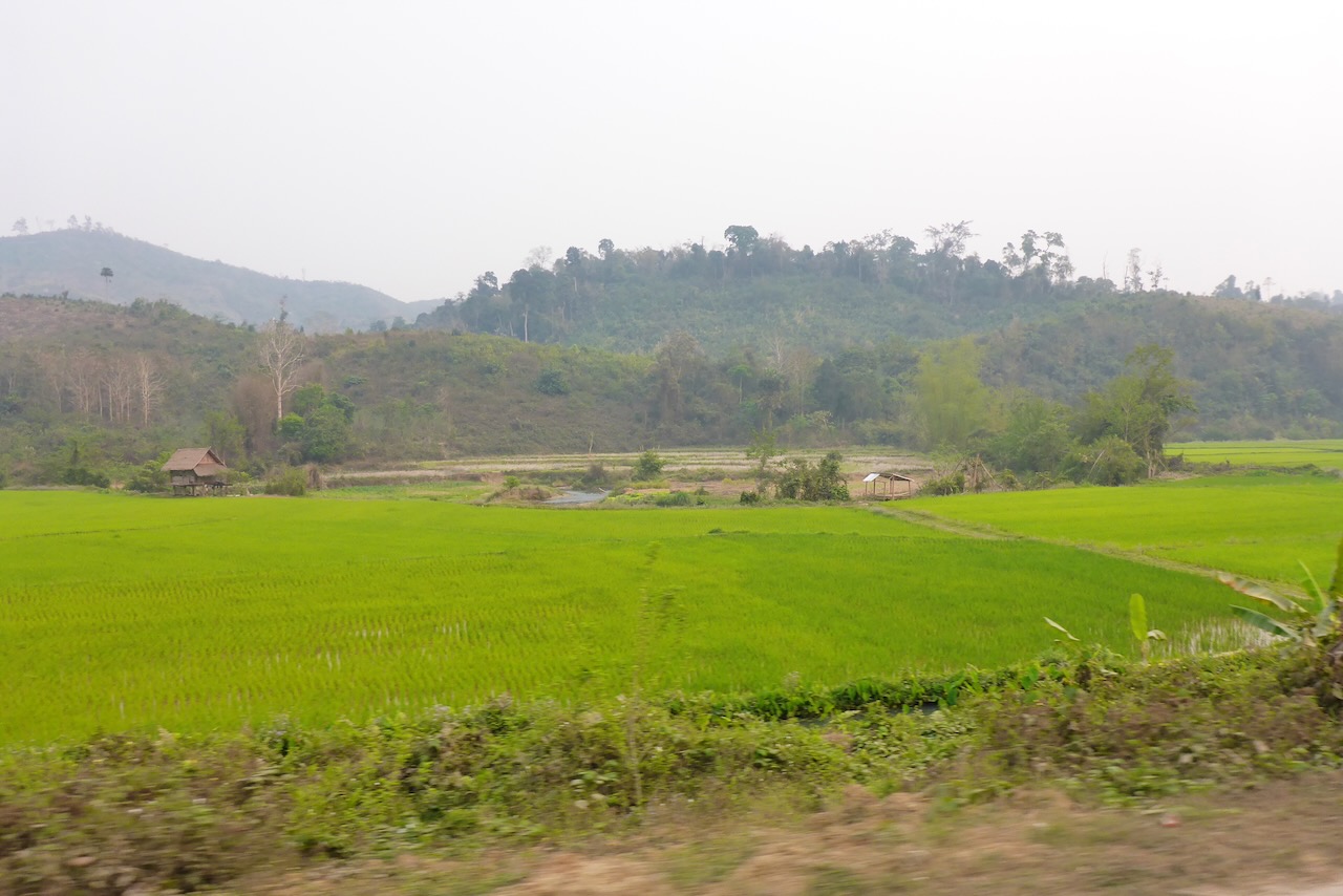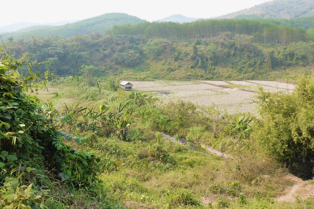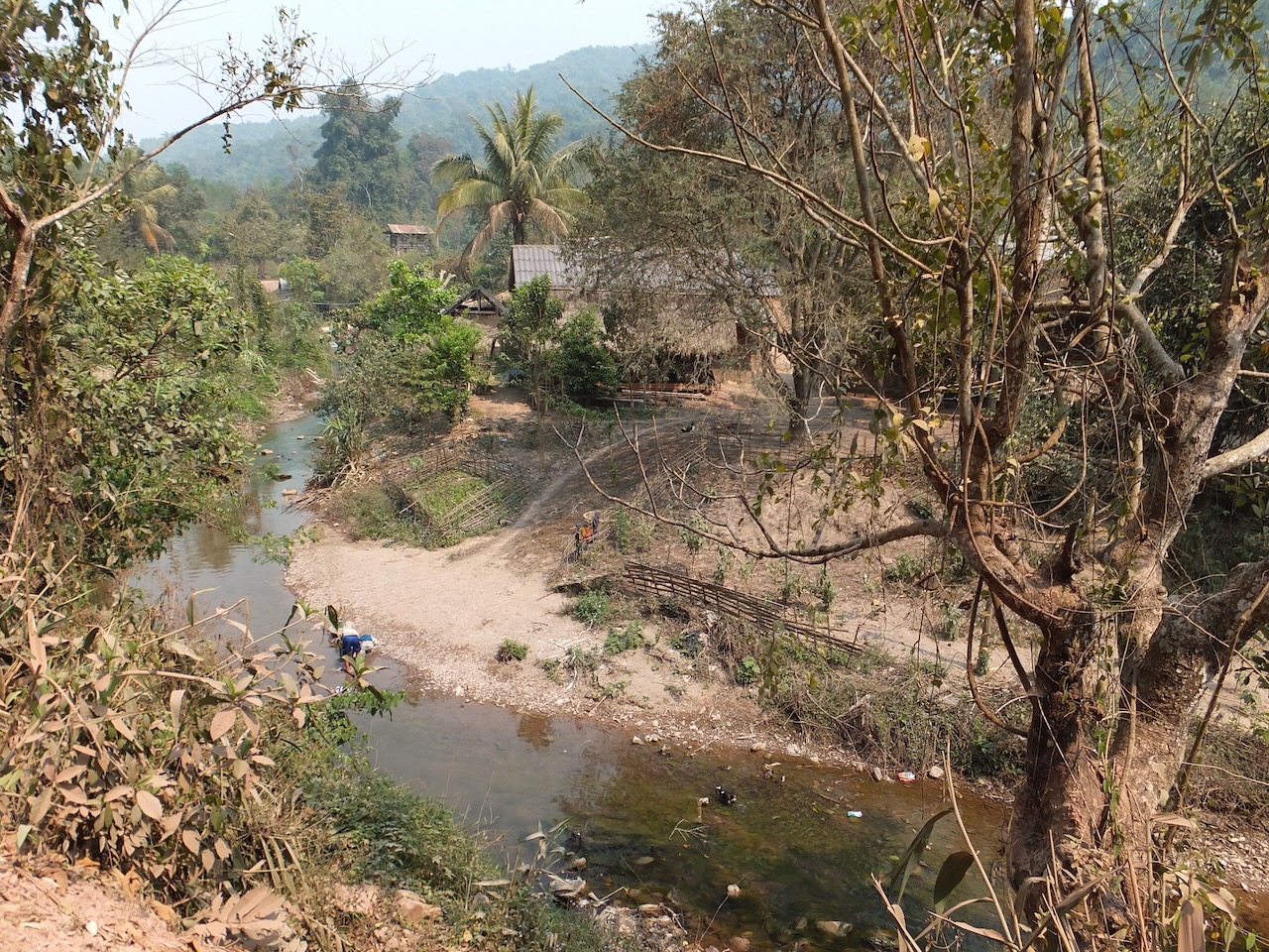 Am nächsten morgen gingen Nicky und Frau Rutzel erneut auf die Suche und kurz danach sind wir in das Thoulasith Guesthouse eingezogen- ein zweistöckiges Haus mit sehr sauberen Zimmern, netten Balkon und sehr freundlichem Personal. Danach stand die erste Stadterkundung an. Wir stellten schnell fest, dass die Stadt an sich nicht so viel zu bieten hat, aber schliesslich sind wir wegen der Natur hierher gekommen. Wir mieteten uns am Weltfrauentag, für alle die es nicht wissen, es ist der 8. März eines jeden Jahres!, ein Fahrrad und erkundeten die Gegend. Überall wurde kräftig, mit lauter Musik und Lao Bier gefeiert, vor allem in den kleinen Dorfgemeinden. Die jüngere Generation zog sich hierfür zum Wasserfall, den wir über die Schotterpiste ansteuerten, zurück. Das Fahrrad geparkt, den kleinen Eintritt bezahlt und nach wenigen Metern erreichten wir den „Wasserfall“ ;-). Es gab kaum Wasser, aber dafür bekamen wir von den Jugendlichen Bier angeboten. Nach dieser kurzen Bierstärkung ging es weiter auf einem steilen, schmalen Pfad oberhalb des Wasserlaufs entlang. Wir kamen immer höher und zwischendurch wussten wir nicht, ob wir den ganzen Weg wieder zurück müssen oder wir einen Rundweg in Angriff genommen haben. Nach 45 Minuten bekamen wir ein kleines Dorf zu sehen, welches sich an der Straße befand, wo auch unsere Fahrräder standen. Wir hatten alles richtig gemacht. Wir sahen im Anschluss noch einige schöne Reisfelder und der erste kleine Ausflug hatte uns Lust auf mehr gemacht.