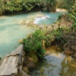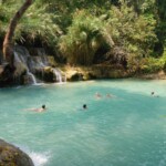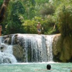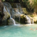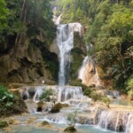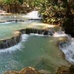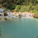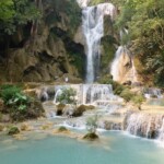Die Uhr zeigte uns 19:30 Uhr an, als wir den Busbahnhof in Luang Prabang erreichten. Mit dem sorngtaaou (Lieferwagen oder Pick-ups mit Bänken auf beiden Seiten) liessen wir uns in die Stadt fahren, wo wir nach kurzer Zeit das familiengeführte Thephavong Guesthouse als Unterkunft wählten, in der die liebenswerte Vermieterin “das Herzstück” war. Im Anschluss hatten wir die Qual der Wahl zwischen den vielen Baguettes-Ständen, die am Nachtmarkt ansässig waren. Warum gibt es in ganz Laos und insbesondere hier eigentlich so viele Baguettes und Croissants? Laos war von 1893 bis 1953 eine französische Kolonie und das beweisen nicht nur die Gerichte, sondern auch die alten Kolonialvillen, die meisten heutzutage in Boutique-Hotels verwandelt. Luang Prabang besitzt eine besondere Mischung aus altem Charme und buddhistischen Tempeln, hat tolle Cafés und einen entspannten Nachmarkt, was insbesondere an der ruhigen und relaxten Art der Laoten liegt. Die Stadt, die man am besten vom Hügel Pousi überschauen kann, lädt zum faulenzen ein, aber auch die Umgebung hat einiges zu bieten. Der Kuang Si Wasserfall ist hier in aller Munde und so lachten wir 4 uns doch tatsächlich einen netten Tuk-Tuk Fahrer an, damit er uns zu dem 40km entfernten Ort bringt. Um dem Touristentrubel zu entgehen, reisten wir schon um 9 Uhr morgens an und es hatte sich wahrhaftig gelohnt. Die Farben des Wassers sind einfach „wow“. Nachdem wir die ersten Fotos geschossen haben, wollten wir natürlich auch den steil anfallenden Weg zu der oberen Ebene des Wasserfalls wandern. Völlig verschwitzt konnten wir den schönen Blick aus der obersten Etage geniessen und im Anschluss wartete das grüne Wasser auf unsere Überhitzten und etwas muffligen Körper. Während der Rutzel ein Paar “Wasserbomben“ machte, hat sich Frau Rutzel von dem natürlichen „Fisch-Spa“ behandeln lassen- herrlich :-). Es gibt hier auch eine Auffangstation für Malaienbären. Diese wurden aus der Käfighaltung von Privatpersonen gerettet und dürfen nun in einer größeren Anlage zumindest ein etwas besseres Leben führen. Der Rutzel durfte beim betrachten der Tiere den folgenden Satz einer deutschen Touristin belauschen: “Och, die Tiere haben hier so ein schönes Leben…”? Teilen konnte er ihre Meinung nicht, aber wenn man sich unseren Umgang mit der Mutter Natur betrachtet, dann konnte er ihr auch nicht widersprechen.