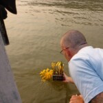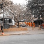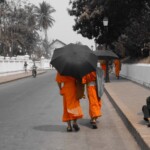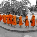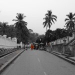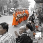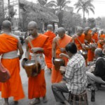Kulturell kann man in Luang Prabang, abgesehen von den vielen Tempeln, noch einiges mehr erleben, zumindest wenn man sich den Wecker für 5:30 Uhr morgens stellt. Dann kann man die Mönche bei ihrem Gang durch die Gassen beim Einsammeln der Essens-Almosen der Gläubigen im Hintergrund beobachten. Da diese Zeremonie jedoch als touristisches Highlight der Stadt angepriesen wird, ähnelt es teilweise einer Hetzjagd. Schon von weitem sah man ein Blitzlichtgewitter und man kam sich so vor, wie auf dem roten Teppich der Oscar Verleihung. Spätestens in diesem Augenblick wussten wir, dass wir von der Hauptstraße weg müssen um eine Stelle zu wählen, die die Atmosphäre so authentisch wie möglich widerspiegelt. Es gelang uns ganz gut dieses Ritual in Ruhe zu beobachten und das frühe Aufstehen hatte sich für uns auf jeden Fall gelohnt.