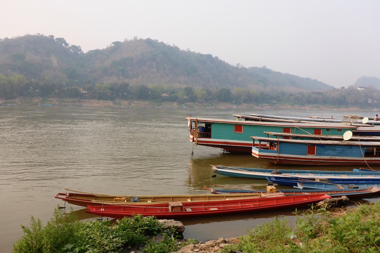 Die nächste Station auf unsere Laos-Route sollte die, am Mekong liegende Stadt, Luang Prabang sein. Die, auf einer Halbinsel befindliche Altstadt, ist von der UNESCO als Weltkulturerbe aufgelistet. Wir haben die Möglichkeit gesehen, zumindest ein Teil von dem Weg von Luang Namtha dorthin auf dem Fluss zu fahren. Leider sollte das nicht sein, denn wir durften feststellen, dass die Trockenzeit genutzt wird, um einen Damm zu bauen und diese Strecke ab sofort nur noch in Teilstücken befahrbar ist. So hatten wir die Wahl zwischen einem Bus am Morgen oder einem Nachtbus. Frau Rutzel war mehr für den Nachtbus, denn so hätten wir sowohl Tageszeit als auch Geld für die Übernachtung gespart. Der Rutzel dagegen wollte den Bus am morgen nehmen, da es nicht sicher war ob man im Nachtbus einen Platz bekommt, der von Nordthailand aus kommend den Riesenbogen über Luang Namtha nach Luang Prabang macht. Gott sei Dank hat sich der Rutzel diesmal durchgesetzt, denn als wir die Straßenzustände und den Weg durch die Berge gesehen haben, wollten wir den auf keinen Fall nachts passieren. Da diese Fahrt an sich eine eigene Geschichte ist, müssen wir diese ein bisschen detaillierter beschreiben.