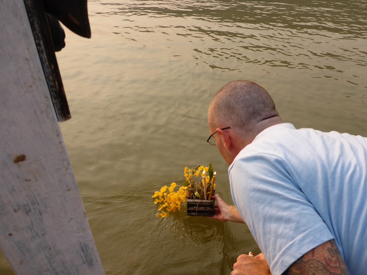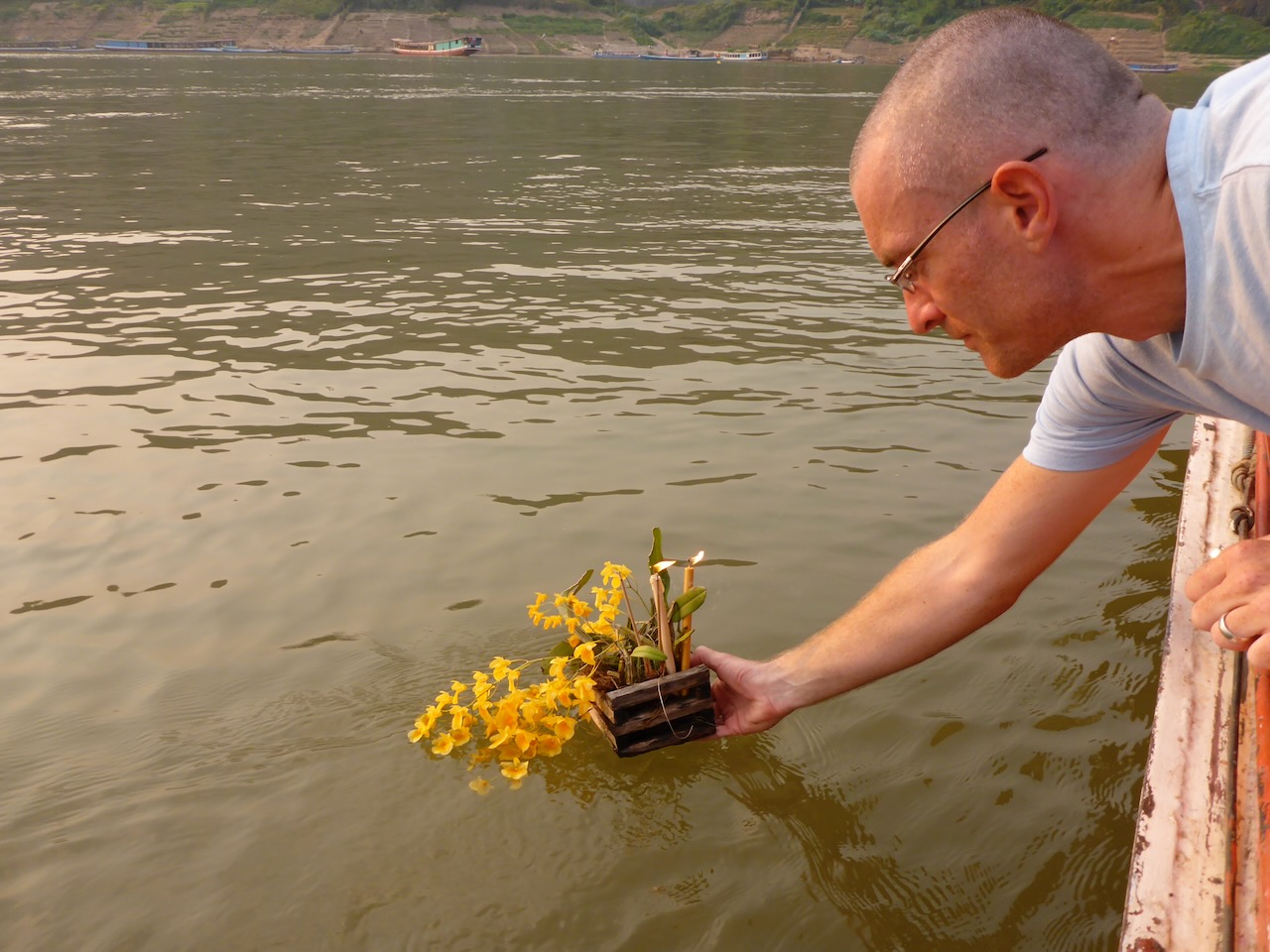Später am gleichen Tag gab es noch ein wenig Kultur, gepaart mit einer Mekongfahrt. Nicki, Juggy und der Rutzel fuhren 2 Stunden auf dem Mekong zu der Pak Ou Höhle, in der sehr viele Buddha Figuren als Opfergaben hingebracht werden. Alte und kaputte Figuren werden auch dort abgestellt, denn die Buddhisten glauben, dass es Unglück bringt diese weg zu schmeißen. Moment mal, wo war den Frau Rutzel geblieben? Ihr Kreislauf hatte seit zwei Tagen mit der schwühl-heissen Luft zu kämpfen und so zog sie es vor, sich ein wenig unter dem Zimmerventilator auszuruhen.