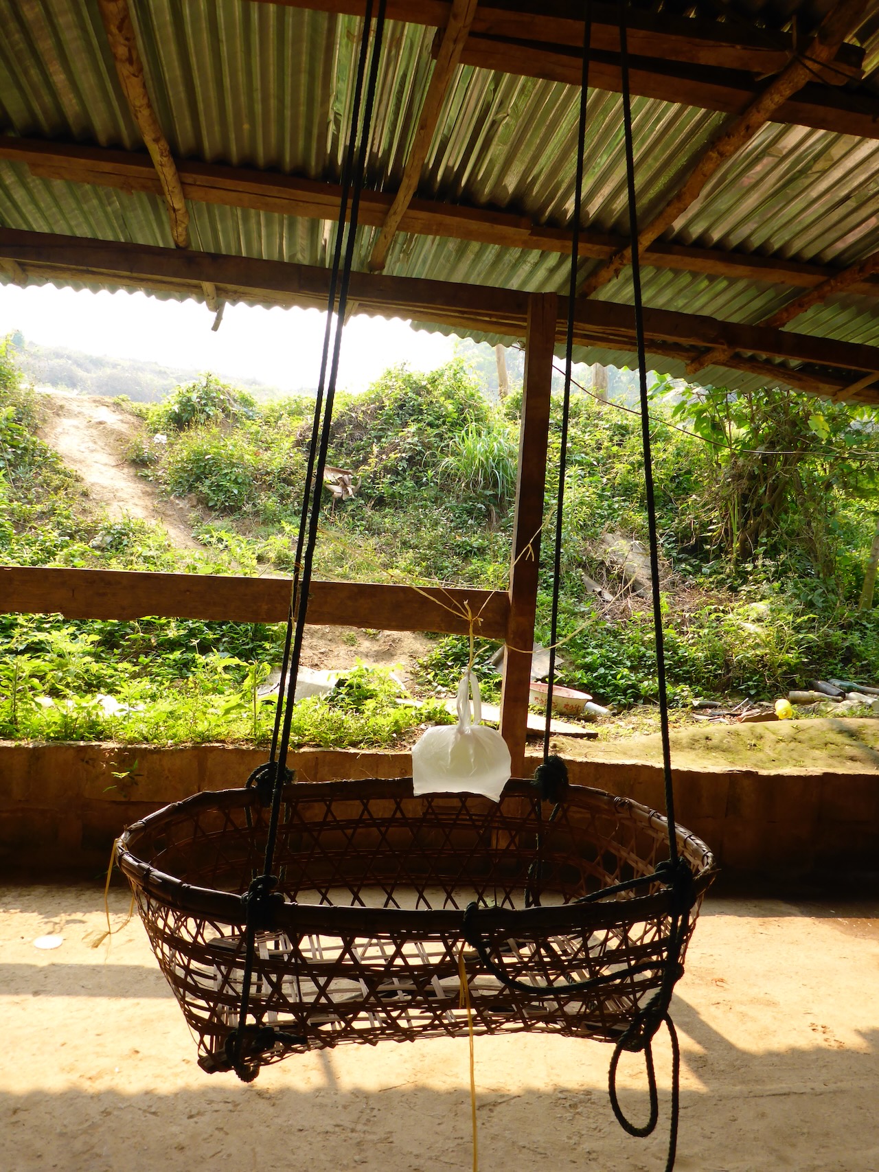 Um 07:30 Uhr wurden wir vom Guesthouse von einem Sammeltaxi abgeholt und zum Busbahnhof gebracht, nur um zu erfahren, dass der Bus nicht wie uns gesagt um 08:00 Uhr, sondern um 09:00 Uhr startet. Also, der 08:00 Uhr Morgenbus fuhr pünktlich mit einer Stunde Verspätung und mit 2 Mopeds auf dem Dach los :-). Die ersten Kilometer auf der gut befestigten Straße bis nach Oudom Xai verliefen problemlos, aber sobald wir die Stadt verlassen hatten, veränderte sich das Bild. Im weiteren Verlauf führt die Straße in höhere Regionen bis auf ca. 1300 Meter und aus der gut befestigten Straße wurde eine Staubpiste mit kraterähnlichen Schlaglöchern, abgerutschten Hängen und Serpentinen mit einem wunderbaren Blick nach unten :-). Wir mussten immer und wieder daran denken, wie es gewesen wäre diese Strecke in der Nacht zu fahren. In der „Luft“ stand ein einem Gemisch aus Staub und Rauch vom Feuer der Brandrodung aber für Erfrischung sorgten die offenen Fenster und die Bustür. In unserer Gesellschaft würde man es vermutlich als „unbewohnbare Gegend“ abstempeln. Aber genau hier, direkt an dieser Piste leben viele Einheimische, ohne fliessend Wasser und ohne Strom. Die Kinder haben nur den Platz zwischen den Häusern zum spielen, denn vor ihnen ist die Piste und hinter ihnen der Abgrund. Es ist wie immer der gefährliche Kreislauf, Nord- und Zentrallaos besteht aus bergigem Land und hier gab bzw. gibt es nach wie vor genügend Land (auch wenn es steil ist) um mit dem Rohstoff Holz, Geld zu machen und im Anschluss das Land als Ackerland zu gewinnen.