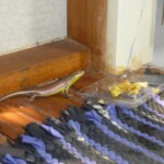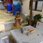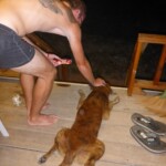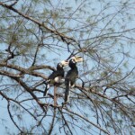 Mit der Zeit bekamen wir mehr Nachbarn. Nicht nur aus Frankreich sondern auch aus der Luft und zu Wasser wie z.B. einige Doppelhornvögel, eine Greifvogelart, 2 Frösche und eine zutrauliche Echsenart, mit der wir unsere Ananas gerne teilten.