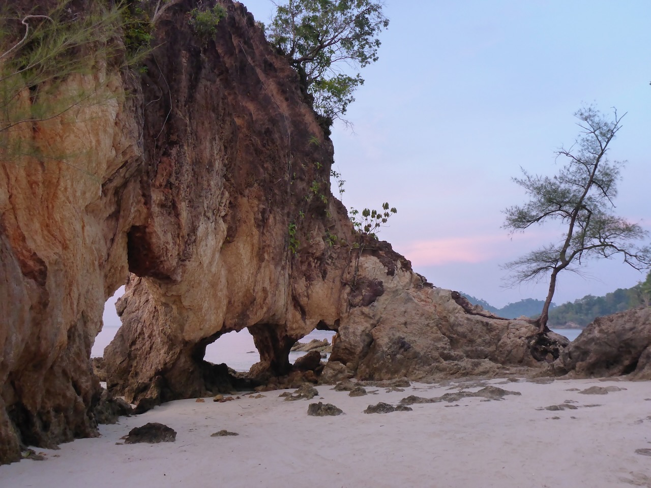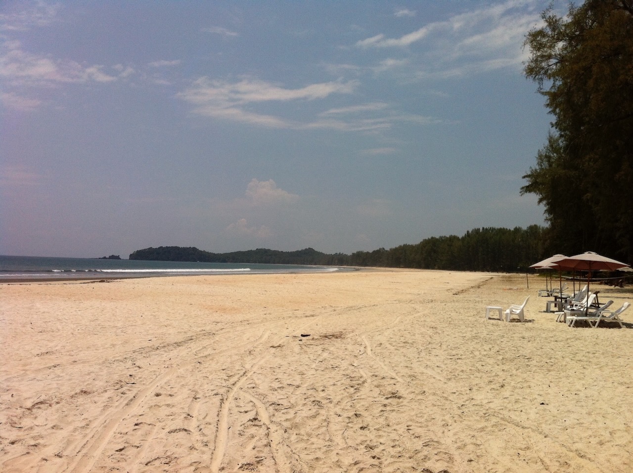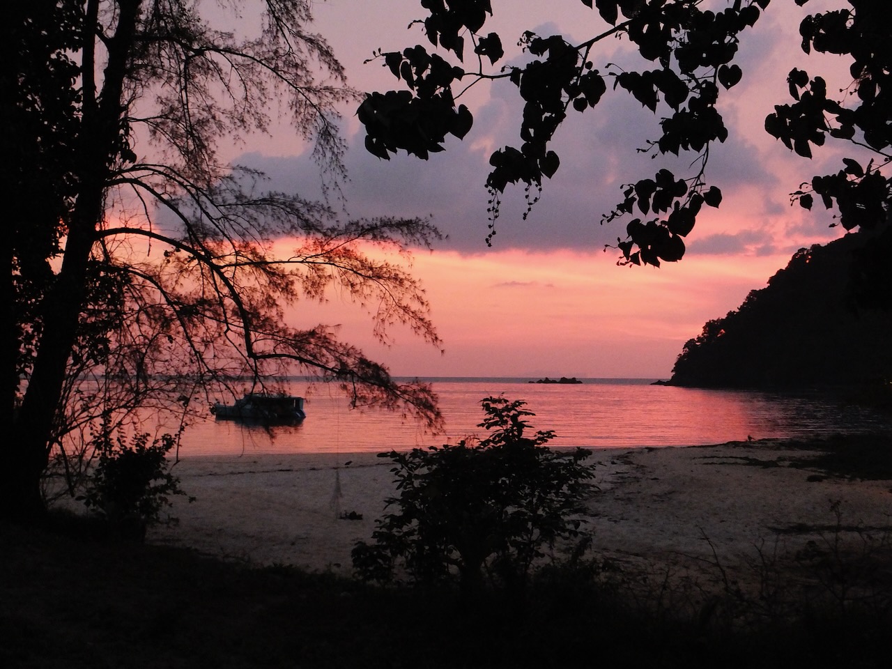 Damit wir auf die Insel Koh Phayam kommen, mussten erst einmal die 560km bis zum Hafen nach Ranong zurück gelegt werden. Die Wahl viel auf den Nachtbus, damit wir gleich mit der ersten Fähre zur Insel übersetzen können. Ranong liegt einen Katzensprung vom Südzipfel Myanmars entfernt und wird gerne für Visa-Runs für Thailand genutzt. Es ist sicherlich nur eine Frage der Zeit bis diese Grenze auch für die offizielle Einreise nach Myanmar geöffnet wird. Um 5 Uhr in der Früh steuerte der Busfahrer den Bahnhof in Ranong an und gemeinsam mit einer Guesthouse Besitzerin aus Koh Phayam fuhren wir auf einen Motorrad-Taxi mit Beiwagen zum Hafen. Hier hieß es für 3 Stunden “sit and wait” bis die erste Fähre fährt. Eigentlich kein Problem, wenn da nicht der penetrante, in der Nase festgesetzte Geruch, eine Mischung zwischen totem Fisch und Kanal, gewesen wäre. Aber auch daran gewöhnt man sich schnell. Schade, dass unsere Kamera über keinen Geruchssensor verfügt. Die 2 Stunden Fährfahrt vergingen rasch. Am Hafen in Koh Phayam angekommen schnappte sich jeder ein Motorrad-Taxi und nach einer 10 minütigen Fahrt erreichten wir unseren Strand, den kleineren, aber ruhigeren Ao Kwai.