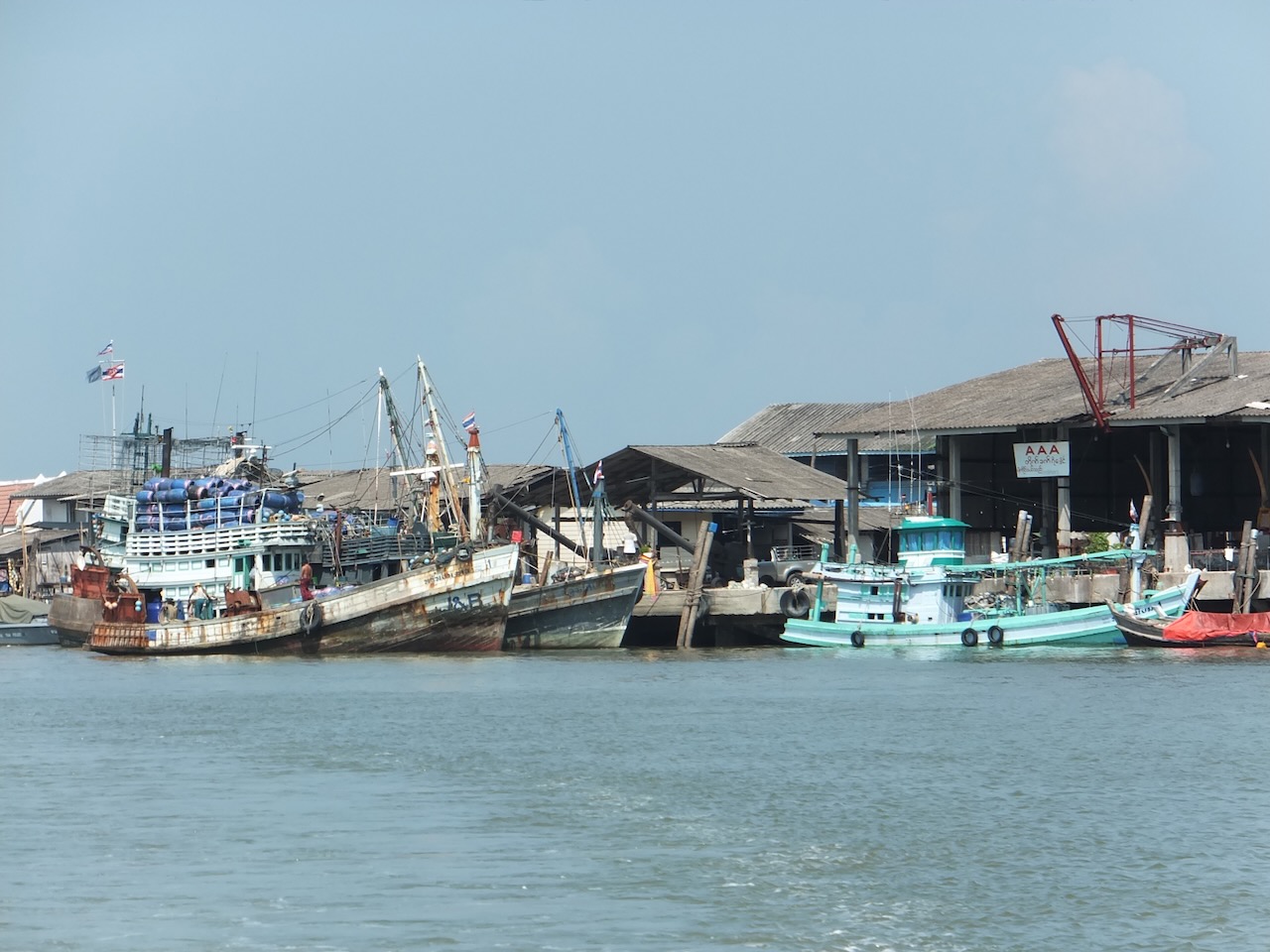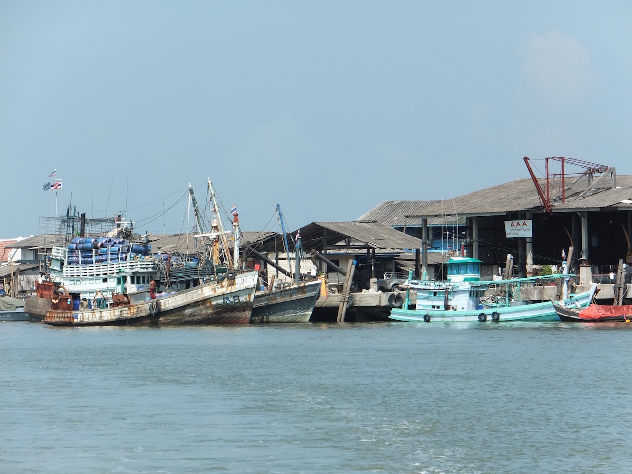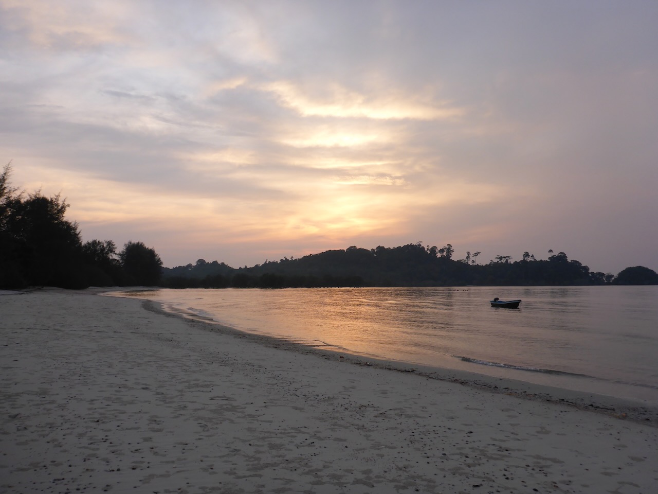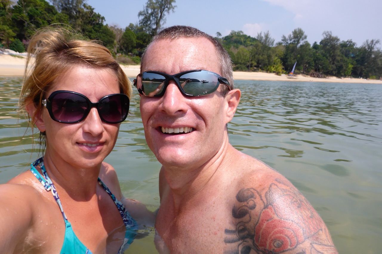 Damit wir auf die Insel Koh Phayam kommen, mussten erst einmal die 560km bis zum Hafen nach Ranong zurück gelegt werden. Die Wahl viel auf den Nachtbus, damit wir gleich mit der ersten Fähre zur Insel übersetzen können. Ranong liegt einen Katzensprung vom Südzipfel Myanmars entfernt und wird gerne für Visa-Runs für Thailand genutzt. Es ist sicherlich nur eine Frage der Zeit bis diese Grenze auch für die offizielle Einreise nach Myanmar geöffnet wird. Um 5 Uhr in der Früh steuerte der Busfahrer den Bahnhof in Ranong an und gemeinsam mit einer Guesthouse Besitzerin aus Koh Phayam fuhren wir auf einen Motorrad-Taxi mit Beiwagen zum Hafen. Hier hieß es für 3 Stunden “sit and wait” bis die erste Fähre fährt. Eigentlich kein Problem, wenn da nicht der penetrante, in der Nase festgesetzte Geruch, eine Mischung zwischen totem Fisch und Kanal, gewesen wäre. Aber auch daran gewöhnt man sich schnell. Schade, dass unsere Kamera über keinen Geruchssensor verfügt. Die 2 Stunden Fährfahrt vergingen rasch. Am Hafen in Koh Phayam angekommen schnappte sich jeder ein Motorrad-Taxi und nach einer 10 minütigen Fahrt erreichten wir unseren Strand, den kleineren, aber ruhigeren Ao Kwai.