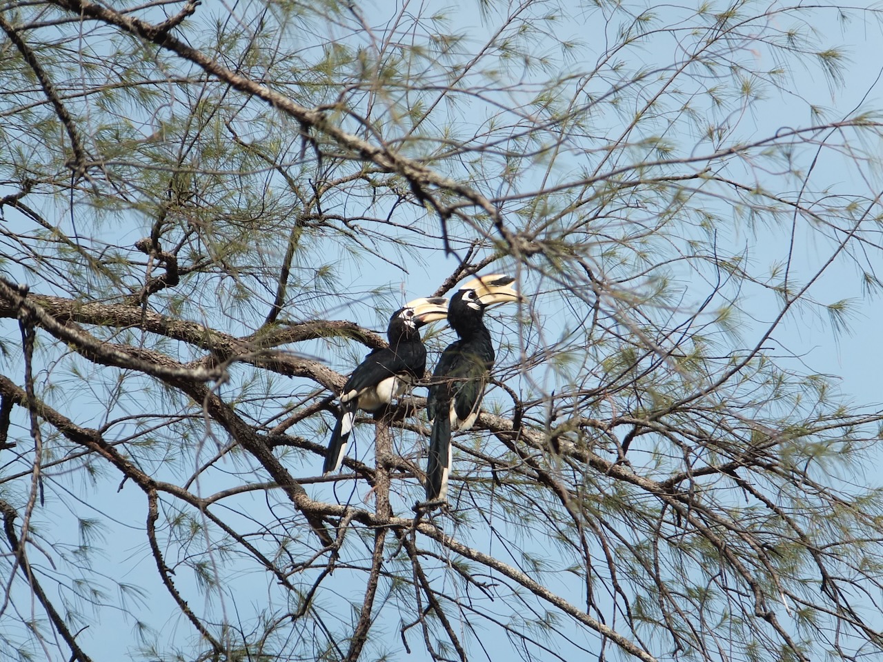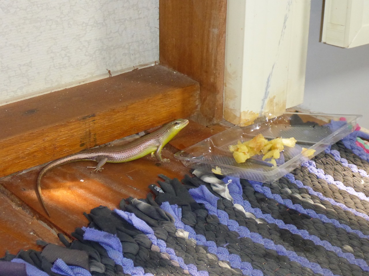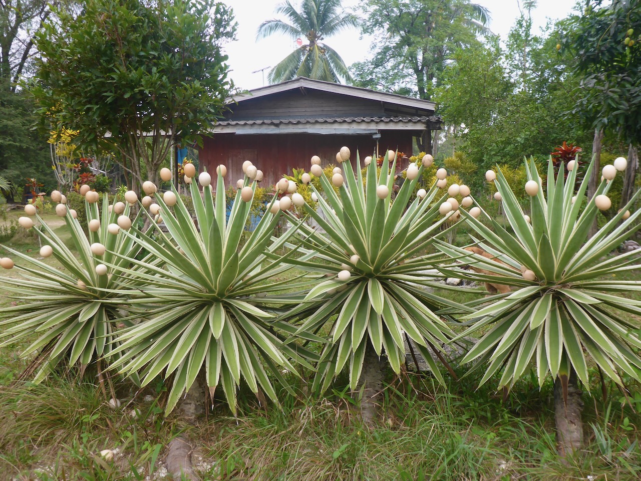 Mit der Zeit bekamen wir mehr Nachbarn. Nicht nur aus Frankreich sondern auch aus der Luft und zu Wasser wie z.B. einige Doppelhornvögel, eine Greifvogelart, 2 Frösche und eine zutrauliche Echsenart, mit der wir unsere Ananas gerne teilten.