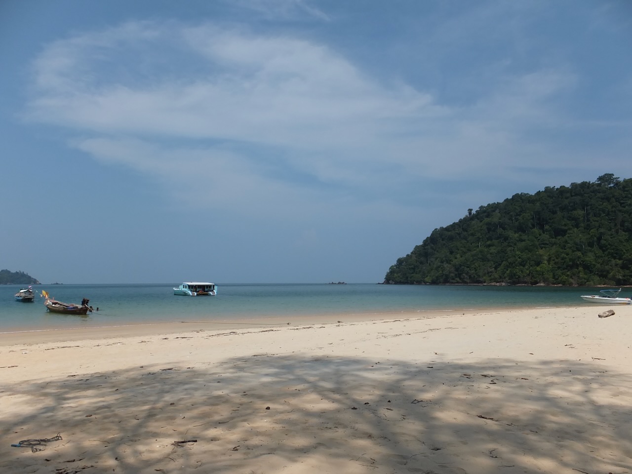 Nach der “Uffreschung” haben wir uns erst einmal bei Mr. Gao für ein paar Stunden eingenistet. Hier gibt es, abgesehen von den schönen Bungalows, erstklassiges Essen, einen guten Kaffee mit richtiger Milch und sogar ein langsames Wifi. All das mit bequemen Sitzgelegenheiten direkt am Strand. Und wenn es einem dann doch zu langweilig werden sollte, dann kann man mit 10 Einheimischen, einem untermotorisierten Traktor, ein paar Bambusrohren und Palmwedel, die nicht zum Frischluft-Fächern verwendet wurden, und ohne Plan ein Boot aus dem Wasser zerren, vorerst ohne Erfolg…