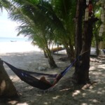 След толкова много екшън човек може да разпусне доволно на един хамак под някоя палма. Иначе няма кой знае какво друго да се прави на Пулау Капас. Тук няма улици, няма превозни средства, няма магазини или супермаркети. Един остров като на Робинзон Крузо. Една единствена пътечка води към другата страна на острова, където има един малък плаж. Ние решихме, че е време за малко повече движение и придружихме малайците, които бяха пристигнали с нас и също бяха отседнали в Capt’s Longhouse и с които междувременно вече се бяхме сприятелили. Походът ни продължи не повече от час, но казвам ви дори в сауната не съм се потила така. Потта просто се лееше от мен като вода, дори по целият ми гръб и раменете…жегата и влажността тук са направо убийствени. Слава Богу най-после стигнахме от другата страна където се насладихме на морският бриз. След едночасова почивка поехме наобратно по друг път, който беше по-къс и не толкова “потен”.