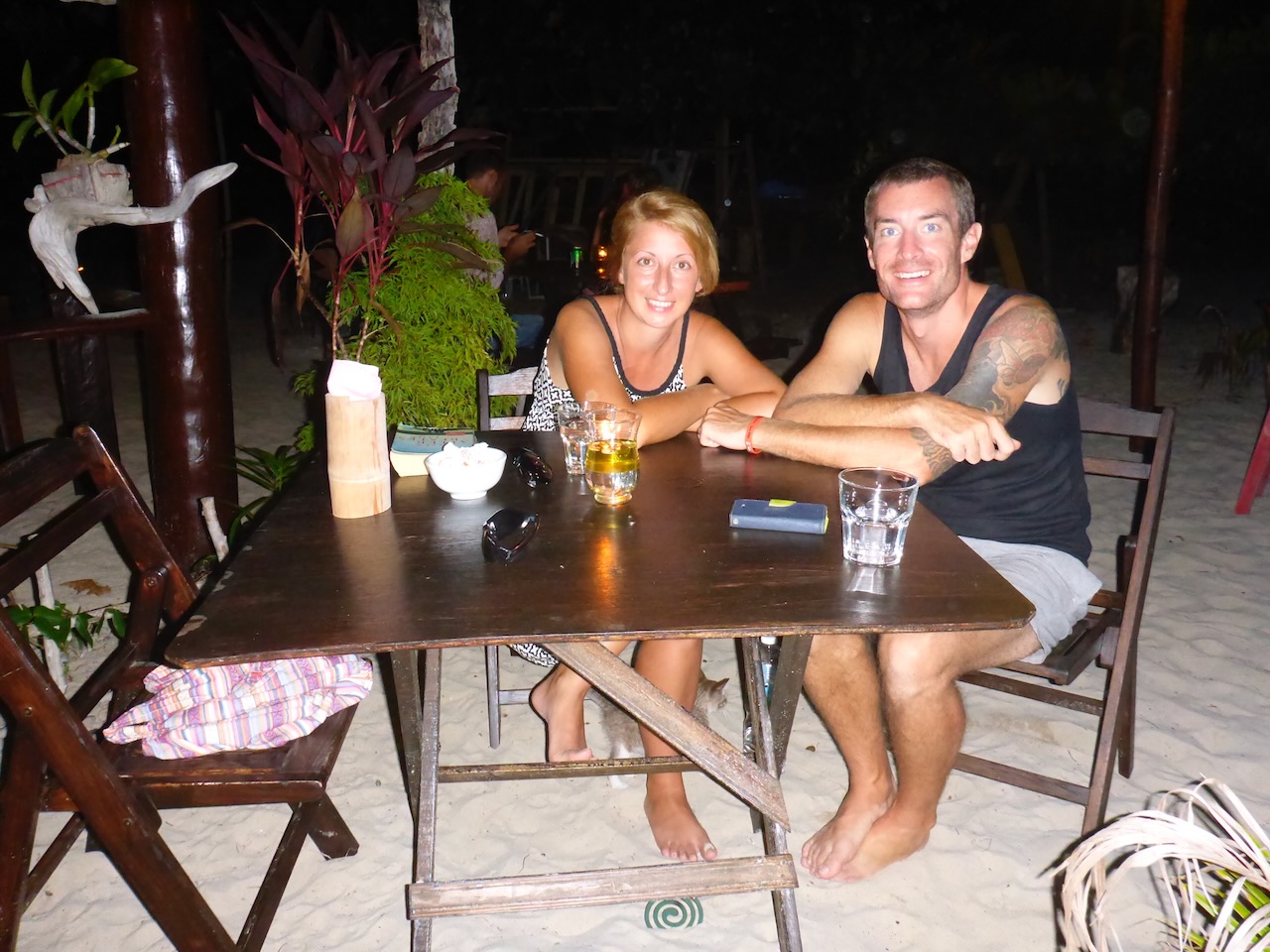 Слава Богу в “Коко” си разбират от работата. Върнахме се там за вечеря и освен, че обстановката много ни хареса, Калид ни зариби с готварското си изкуство. Всички ястия, които опитахме бяха страхотни, включително прословутите му палачинки. А и котенцето Коко даваше всичко от себе си, просто да се влюбиш в него. Но и на малките костенурки, които се бяха излюпили една вечер, им бяха дали убежище, докато Рони- братът на Калид, дойде да ги вземе и отнесе на Джемиа, където има център за съхранение на костенурки. Може би трябва да добавят към името на ресторанта и “спасителен център за диви животни”. Както установихме собствениците търсеха някой, който срещу храна и нощувка да им помага. Ние вече бяхме поизморени от постоянните пътувания и може би щяхме да останем и да им помогнем ако нямахме вече резервиран полет до Камбоджа. А и се бяхме уговорили с нашите английски приятели Ники и Джъги да се срещнем отново там. Но някой ден, ако вятърът ни отвее пак насам, със сигурност ще им ударим едно рамо.