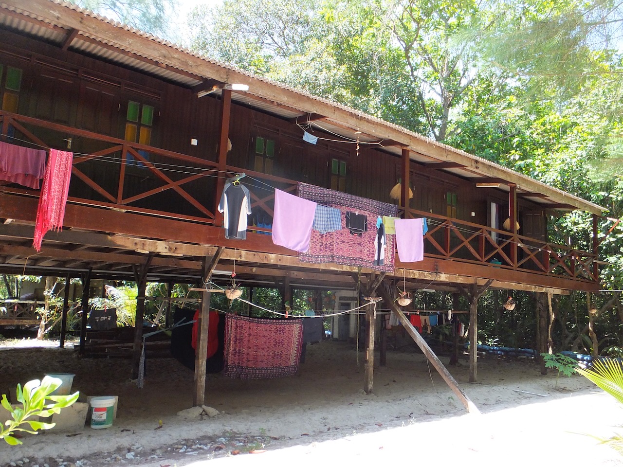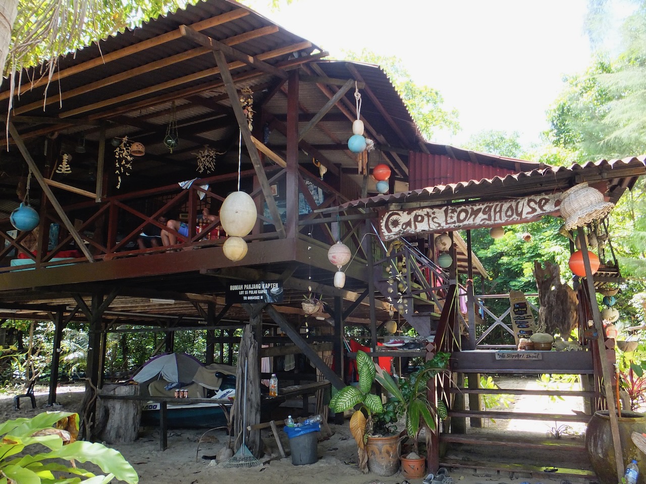 Нощният автобус от Джорджтаун ни изтърси още по тъмно на автогарата в Куала Теренгану. Тук трябваше да чакаме почти два часа за първият автобус до Маранг в 06:30. И още 2,5 часа за първата лодка до острова. За наше щастие Пулау Капас се намира само на около 6км от брега и за няма и 15 мин. вече бяхме там. Свалиха ни на плажа пред Kapas Beach Challet (KBC) където обаче имаше само едно свободно бунгало, но само за три нощи. От тук тръгнахме наляво по плажа, но бунгалата бяха или скъпи или смотани, или пък и двете наедно. Върнахме се обратно и тръгнахме в другата посока. И чак на края на дългият плаж открихме Capt’s Longhouse- голяма дървена къща, строена по традиционен начин, както се строят в Саравак, Борнео и които могат да поберат до 50 семейства. В средата на къщата се намира едно голямо помещение, превърнато тук, в малкият вариант в спална зала, отляво и отдясно са стаите с дълъг балкон, а отпред има голяма закрита веранда. На нас много ни хареса и след като спазарихме цената за една седмица, се настанихме в една двойна стая. Тук видяхме отново трите момчета и три момичета, които бяха заедно с нас в лодката. Както по-късно установихме всички те идваха от Куала Лумпур на почивка тук и то не за пръв път.