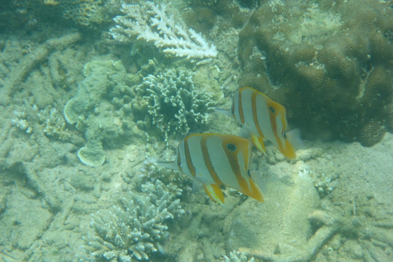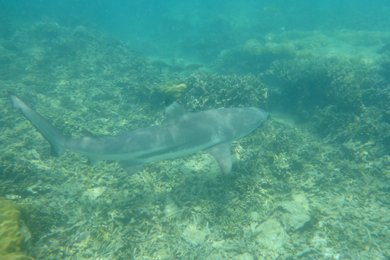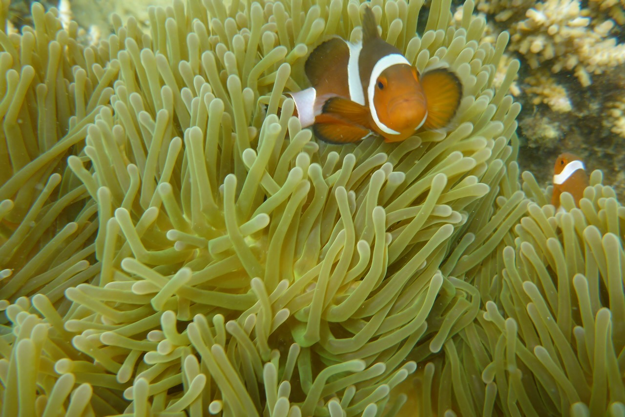 Но освен с вкусната храна, островчето ни завладя и със сравнително здравословният си корален риф. Особено между Капас и още по-малкият остров Джемиа, коралите бяха в много добро състояние. Имаше най-различни корали, някой от тях приличаха на марули и на места изглеждаше като огромно поле от салати. Естествено имаше и много от малките рибки Немо и естествено аз не се сдържах да не ги снимам. Но и рифови акули се навъртаха тук-там. По едно време както си плувах и зяпах наляво-надясно, изведнъж като от изневиделица видях една акула, която плуваше директно към мен и вече беше на около три метра разстояние. Така се стреснах, щото си беше и доста големичка, но нали съм профи папарак набързо щракнах 2-3 снимчици преди да започна да цапам из водата :-).