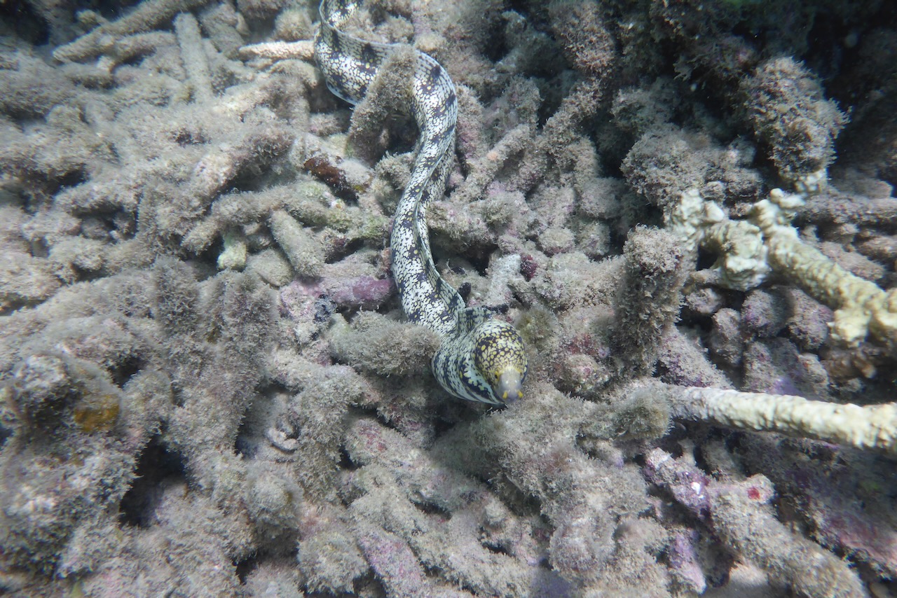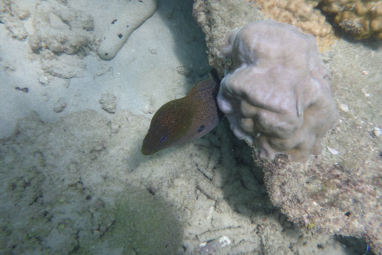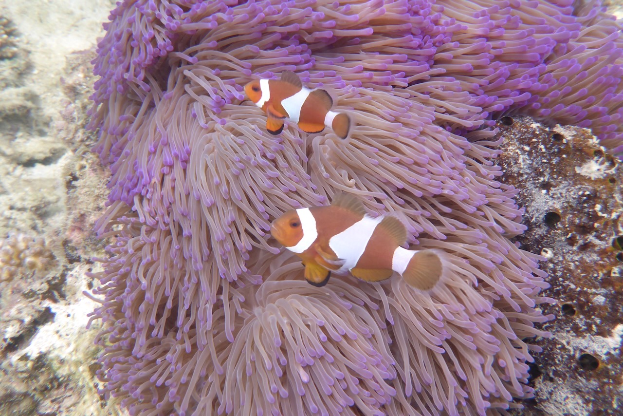 Но освен с вкусната храна, островчето ни завладя и със сравнително здравословният си корален риф. Особено между Капас и още по-малкият остров Джемиа, коралите бяха в много добро състояние. Имаше най-различни корали, някой от тях приличаха на марули и на места изглеждаше като огромно поле от салати. Естествено имаше и много от малките рибки Немо и естествено аз не се сдържах да не ги снимам. Но и рифови акули се навъртаха тук-там. По едно време както си плувах и зяпах наляво-надясно, изведнъж като от изневиделица видях една акула, която плуваше директно към мен и вече беше на около три метра разстояние. Така се стреснах, щото си беше и доста големичка, но нали съм профи папарак набързо щракнах 2-3 снимчици преди да започна да цапам из водата :-).