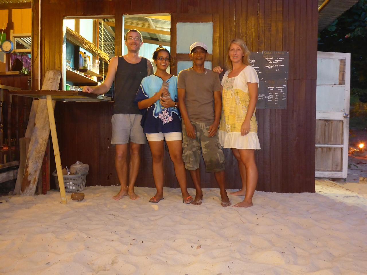 След като се настанихме и поосвежихме, решихме че е време за закуска. Момчетата от Longhouse ни препоръчаха ресторант Коко, който се намираше веднага след къмпинга до нас. Но когато стигнахме там собствениците Ела и Калид ни казаха, че за съжаление е затворено, защото трябва да занесат на ветеринар котенцето, което наскоро били приютили. Те пък от своя страна ни казаха да си опитаме късмета на ресторанта на кея. Мога още сега да заявя, че това беше първият и последният път, когато ядохме там. Въпреки че им е семеен бизнес, хората там не си дават много зор с гостите. Докато дъщерята ни взимаше поръчката през цялото време се занимаваше с телефона си. След това си седна на мястото, където седеше и майка и и никой повече не се помръдна. След около 10 мин. в недоумение, попитахме дали кухнята им работи. Отвърнаха ни “да, защо?”, “защото поръчахме Мий горенг”. Отговориха ни троснато “не, не сте”. “Напротив, ние поръчахме, защото сме гладни”. Ами какво друго да кажа, така става когато виртуалният свят е по-важен от реалният.