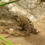 Това което също ни фасцинира, бяха флората и фауната в района на руините. Най-различни кактуси, пойни птички, пеликани, десетки легуани, които се пекат на слънцето и наблюдават тълпите туристи. Дори едно коати (мече от вида на миещата мечка) притича набързо по плажа, на който костенурки все още идват да снасят яйца.