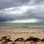 Тъкмо привършвахме нашето посещение, когато заваля като из ведро и изведнъж пътечките обезлюдяха. Само някой и други смелчаци все още се цъкаха под дъжда. Като поспря се запътихме към големият плаж, който видяхме от брега. Мислехме да повървим оттам към града Тулум, когато чухме и видяхме как нова вълна дъжд идва към нас. Едва успяхме да протичаме и да се скрием под един чадър. След около 10 минути пак отшумя, но на нас ни писна и решихме да се връщаме към Плая дел Кармен, където сме отседнали. Плажовете тук обаче много ни харесаха, затова решихме, че Тулум ще е нашата следваща дестинация.