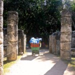 Тръгнахме да разгледаждаме Храмът на Бойците и Обсерваторията. През това време все повече и повече търговци подготвяха дюкянчетата си със сувенири, традиционни рокли и маски. За съжаление тук е позволено на търговците да продават своята стока в района на руините, което променя атмосферата на това уникално място. От всякъде подвикваха търговци или пък се чуваха някакви звуци, наподобяващи тигър или птица, които идваха от нещо като свирки. Беше доста дразнещо. А и тълпите туристи постоянно нарастваха. Както и жегата. Започна да става доста горещо и с повишаване на температурата нашето желание за разглеждане се понижаваше повече и повече. Но искахме да видим и игрището, едно от многото намерени в района. Навсякъде се виждаха групи туристи, а техните гидове пляскаха с ръце, за да покажат какво ехо създават стените му.