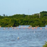Мерида е изходна точка и за няколко дневни екскурзии. Например до Селестун, Сисал или Прогресо. Ние избрахме Прогресо, защото наоколо има по-интересни местенца за разглеждане. Хванахме местният автобус до там, а на място се спогодихме с един туроператор за един излет. Като първо отидохме до El Corchato- нещо като открито сеноте със сладководна вода. Между “басейнчетата” тече кафеникава вода, която по необяснима за нас причина, не се смесва с бистрите сини води. Докато чакахме лодката да дойде, се забавлявахме с едно семейство еноти, което един от пазачите хранеше със сухи плодове. От тук отидохме до близкото езеро, където имаше десетки розови фламингота. През лятото сигурно цялата местност изглежда розова, но сега през зимата тук са останали само калените. Най-после успяхме да видим фламингота в естествената им среда. Като за последно спряхме на едни солници, където нашият водач ни показа, как се добива сол. Всичко на всичко един много интересен излет.
