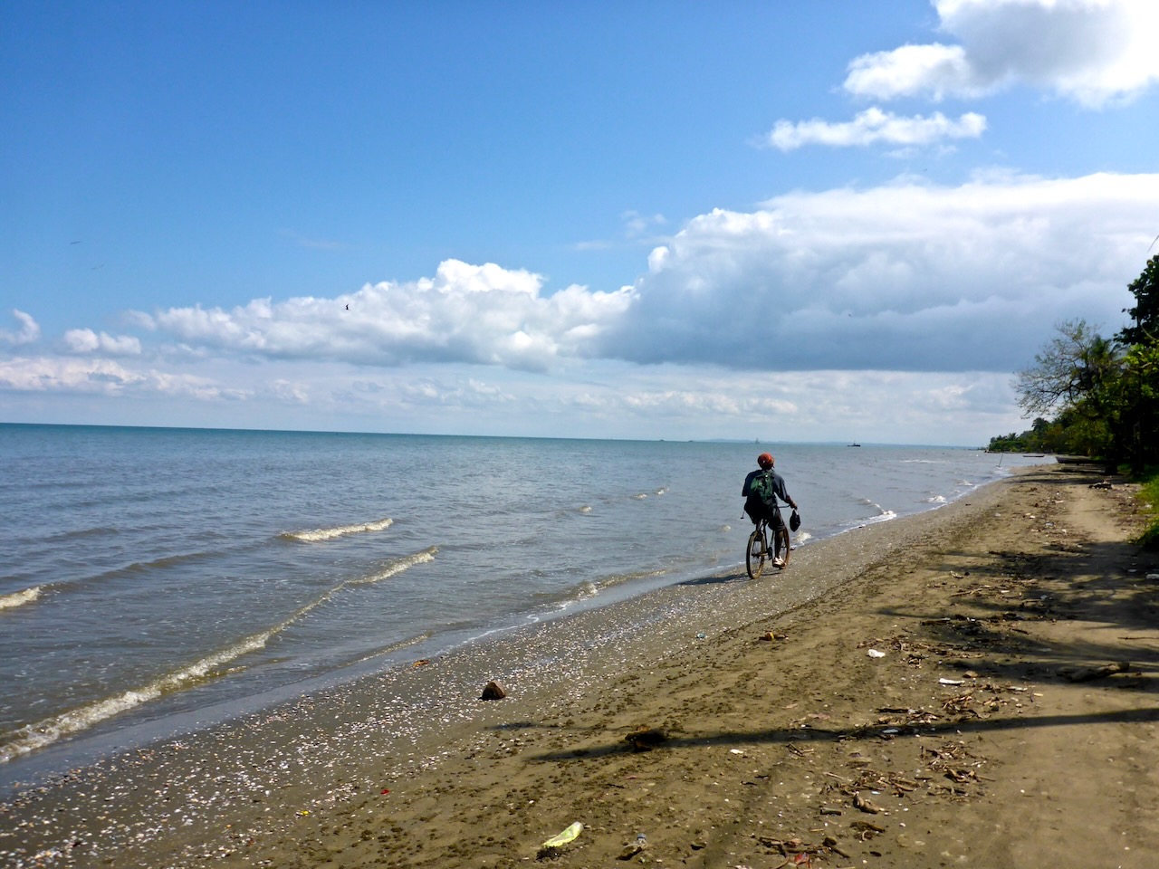 Прекосяването на залива от Пунта Горда (Белиз) към Ливингстън (Гватемала) стана бързо, макар и “твърдо” като камък, заради вълните. Този път за разнообразие знаехме, че ще нощуваме в “Каса де ла Игуана“, където приятелите на Рике и Фабиан им бяха запазили места. Избрахме туристическата спалня, в която въпреки че беше празна, ни предложиха, ако искаме да спестим пари, да спим двамата в едно легло. Че как да не се съгласим, хем да се гушкаме, хем да плащаме само 3€ на нощ. А и ни беше добре дошло, след малко по-скъпичкият Белиз.
