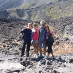 Einer der Sehenswürdigkeiten in der Nähe von Santa Ana ist der Parque Nacional Los Volcanes mit den drei Vulkanen – Cerro Verde, Santa Ana und Izalco. Wir wollen auf den Santa Ana, aber vorher muss sich Frau Rutzel noch um Laufschuhe kümmern. Sie hatte ihre, aufgrund altersbedingter Erscheinungen, vor ein paar Tagen entsorgt. Eine nette Schweizerin aus dem Dorm benötigte Flip-Flops. Also tauschten die beiden für diesen Tag Laufschuhe gegen Flip-Flops. Auch wenn die Schuhgröße etwas variierte. Frau Rutzels “grosser Onkel” hat endlich mal richtig Platz zum atmen :-). Um 7:30 Uhr ging es mit dem Bus los. Die Fahrt an sich ist schon ein Erlebnis, immer und wieder sehen wir den schönen Kratersee Lago de Coatepeque, ein absoluter Zungenbrecher :-). Nach ca. 2 Stunden erreichen wir den Parkeingang und schon beim aussteigen denken wir, wir werden gleich wegfliegen. Der Wind ist so stark, dass er den Aufstieg zum Gipfel unmöglich macht. Wir sollten warten, ob sich die Situation ändert und wir doch hoch laufen dürfen. Aber auch nach einer Stunde sieht es nicht besser aus und die Touristenpolizei entscheidet, dass wir als eine kleine Entschädigung den Abstieg zum Fuss des Izalco’s unternehmen können. Ist zwar nicht das gleiche, aber wenn wir jetzt schon mal hier sind… let’s go. Unten angekommen müssen wir an den Vulkan Arenal in Costa Rica, mit seinem Lavagestein denken. Und natürlich auch an Claudi, Melli und Miro, mit denen wir dort 2009 zusammen waren. Der Wind ist auch hier unten so stark, dass man sich festhalten muss, wenn man über die Steine kraxelt. Es ist irgendwie für die Psyche nicht sehr von Vorteil erst mal abzusteigen, denn danach kommt der Aufstieg. Pfuiiii, das hat sich gezogen… Wieder oben auf der Straße wurde uns noch einen Aussichtspunkt gezeigt, von dem man einen wunderschönen Blick über den ganzen Kratersee hat. Von dort aus geht es zu einem verlassenen Hotel. Das Hotel wurde gebaut, damit die Gäste nachts den Lava spukenden Cerro Verde beobachten können. Ja, aber die Rechnung ging nicht auf, denn der Vulkan hat, kurz nachdem das Hotel fertig war, aufgehört zu brodeln. Man kann Gott sei Dank nicht alle Geschäfte auf Kosten der Natur machen.