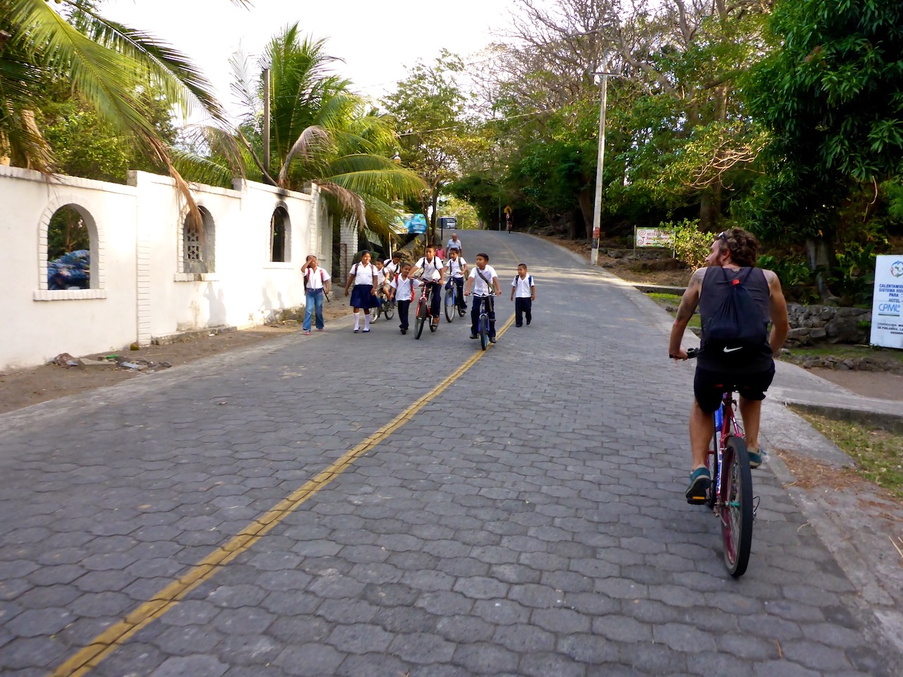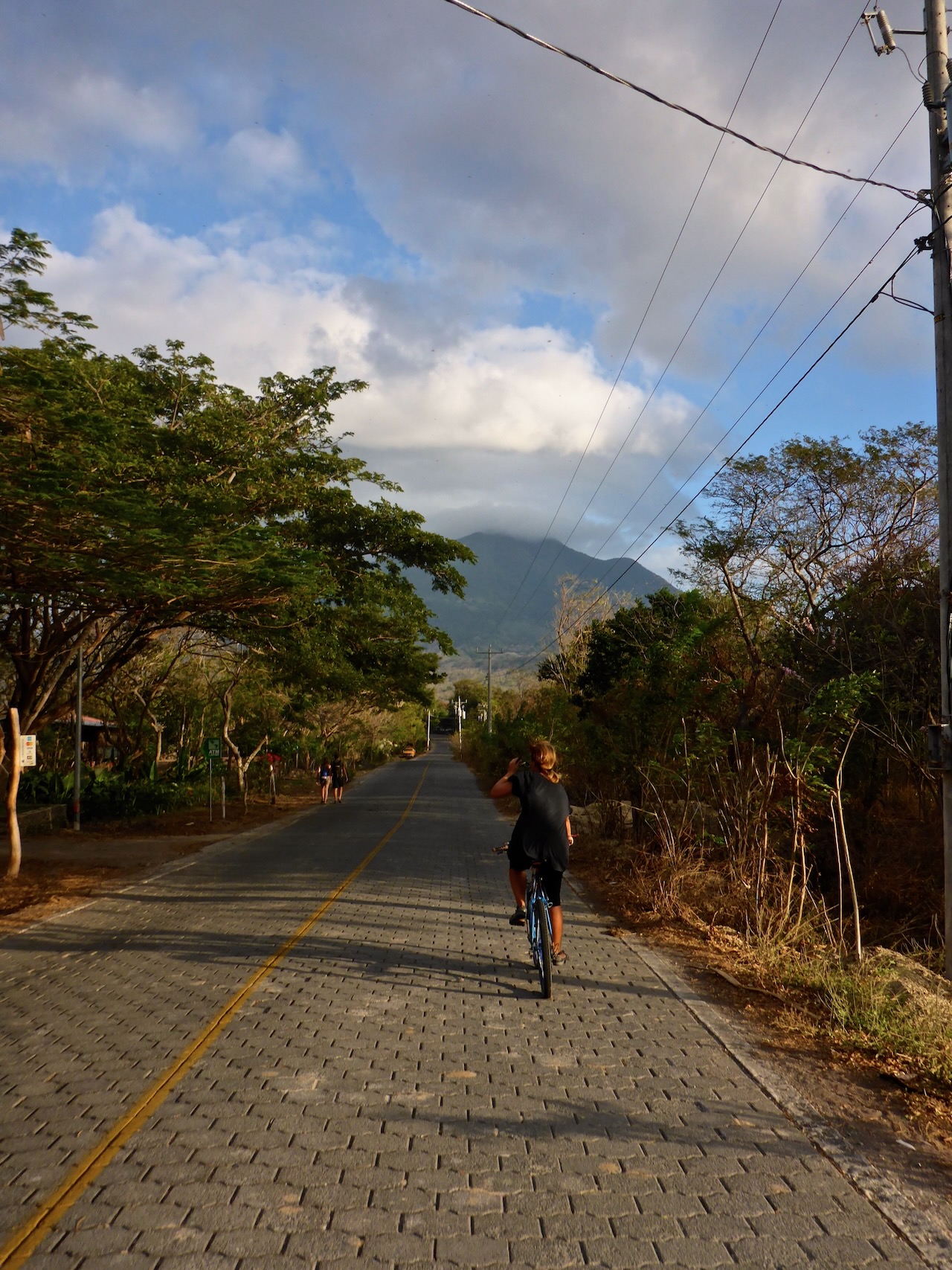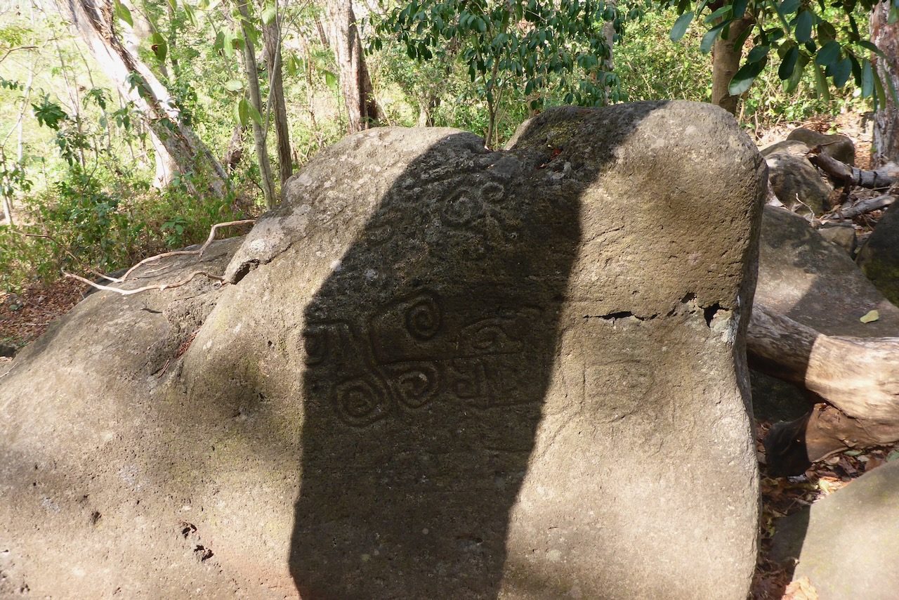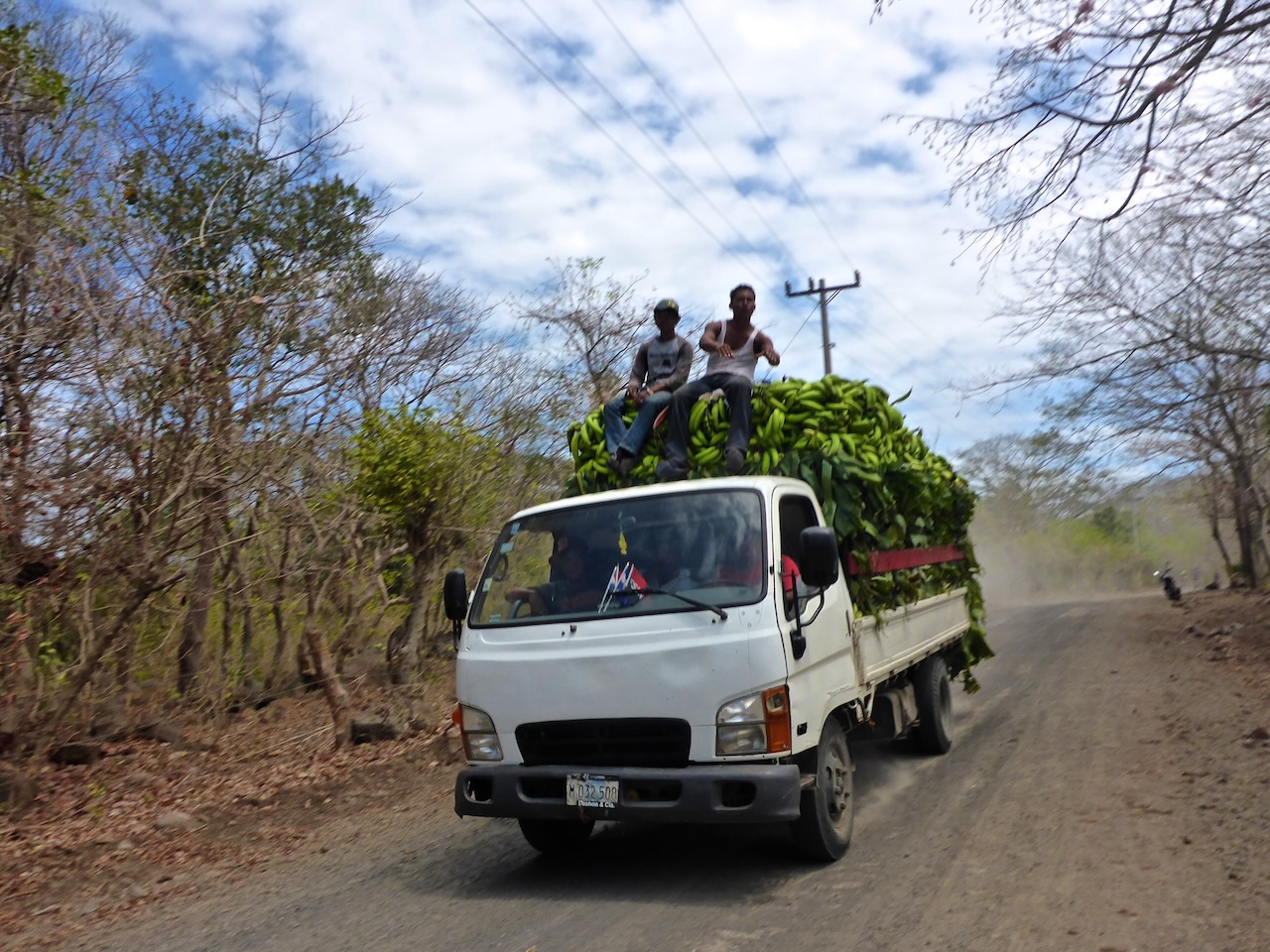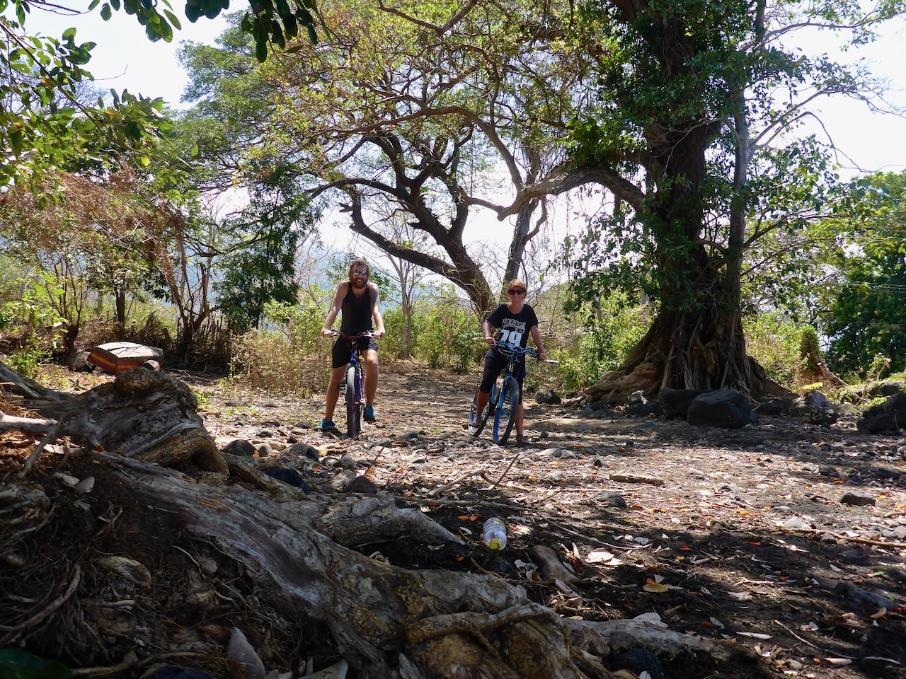 Die Finca Magdalena liegt am Fuss des kleineren Vulkan Maderas, der bereits erloschen ist. Der grosse Bruder – der Vulkan Concepcion – ist einer der aktivsten in Nicaragua und sorgt dafür, dass hier der Boden sehr nährstoffreich ist und sich sehr gut für den Anbau von Kaffee, Bananen usw. eignet. Schnell merken wir, dass hier die Uhr viel langsamer tickt und die Einwohner viel freundlicher und aufgeschlossener sind als in den Städten. Touristenmassen? Fehlanzeige! Das liegt vielleicht auch daran, dass auf Isla de Ometepe – die weltweit größte vulkanische Insel in einem Süßwassersee – nur ca. 40.000 Einwohner leben. Einfach herrlich entspannt. Die Reisenden haben als Fortbewegungsmittel die Auswahl zwischen Motorrad und Fahrrad, die beste und vor allem luftigste Art der Fortbewegung. Ausserdem fahren die Busse (un)regelmässig alle paar Stunden. So mieteten wir uns Fahrräder und erkundigten die friedvolle Insel. Auf einen Gipfelsturm einer der beiden Vulkane haben wir verzichtet. Dafür aber ein paar der zahlreichen Petroglyphen (Bilder in Stein gearbeitet), die sich netter Weise gleich hinter der Finca befinden, angeschaut.