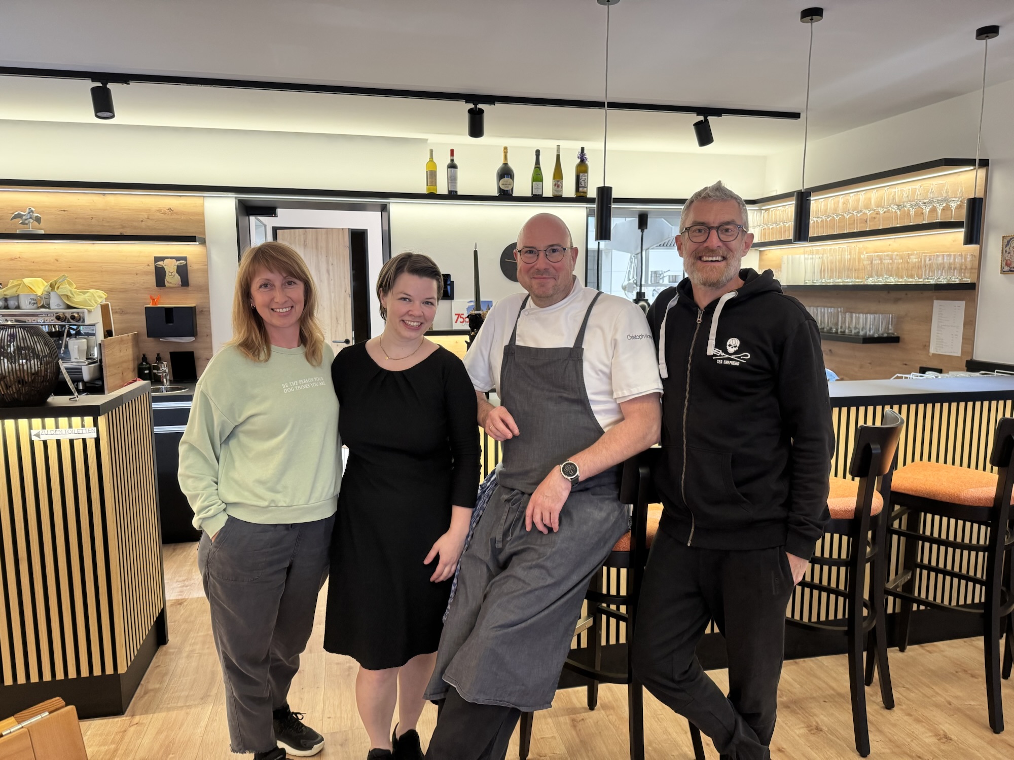 Irgendwann zeigte das Navi an, dass wir Richtung Ulm müssen. Da fiel dem Rutzel ein, mensch, der Christoph betreibt seit einiger Zeit ein eigenes Restaurant in der Nähe von Ulm. Der Rutzel kennt Christoph seit der Jugend vom Basketball und heute ist Christoph ein Sternekoch. Das leckere Essen können wir uns doch nicht entgehen lassen.