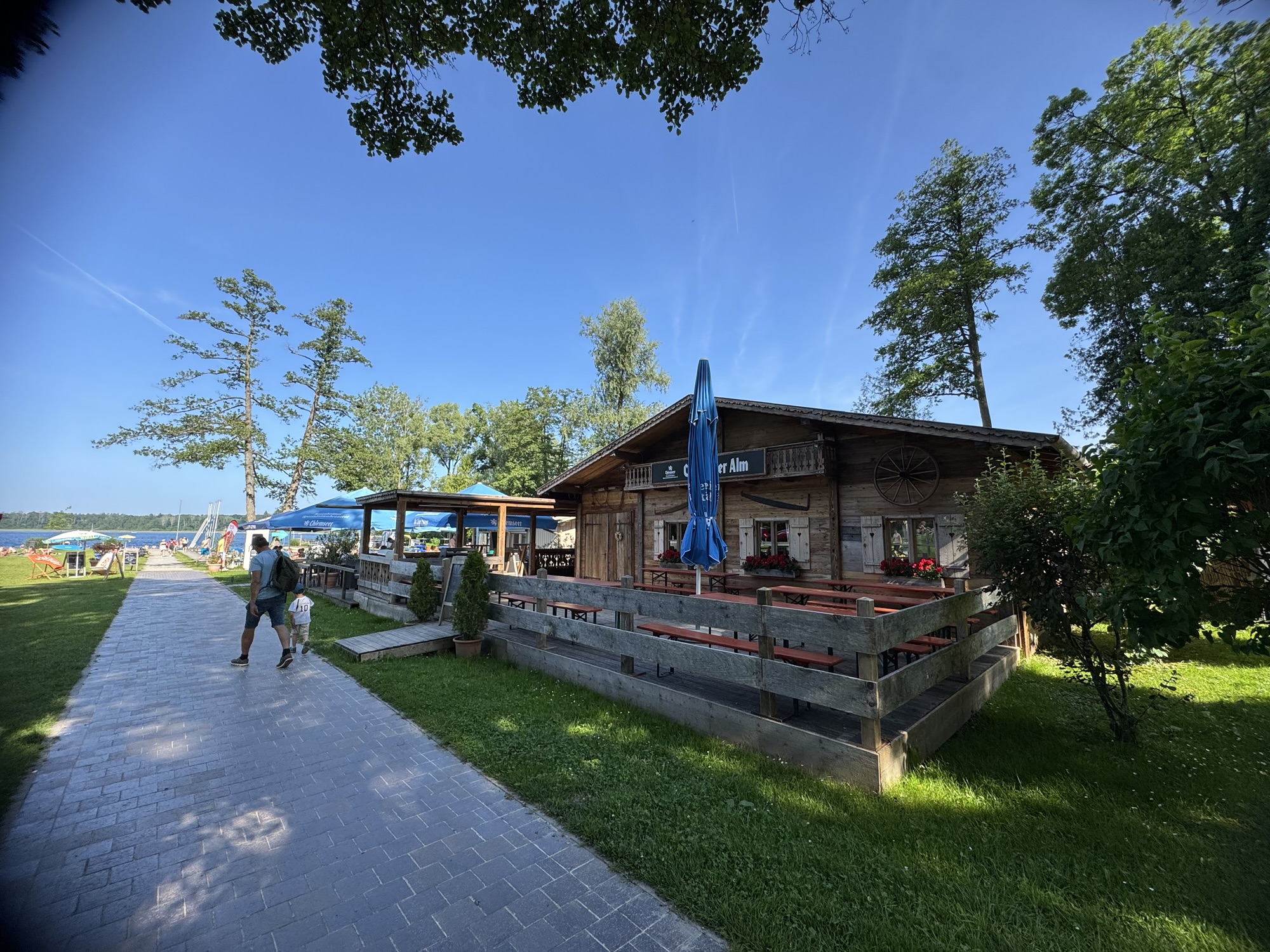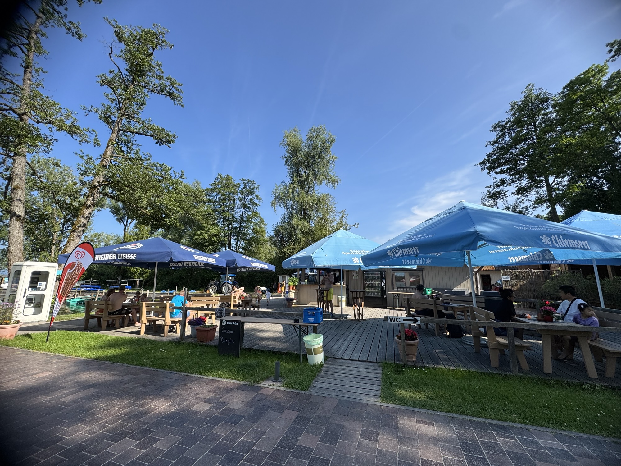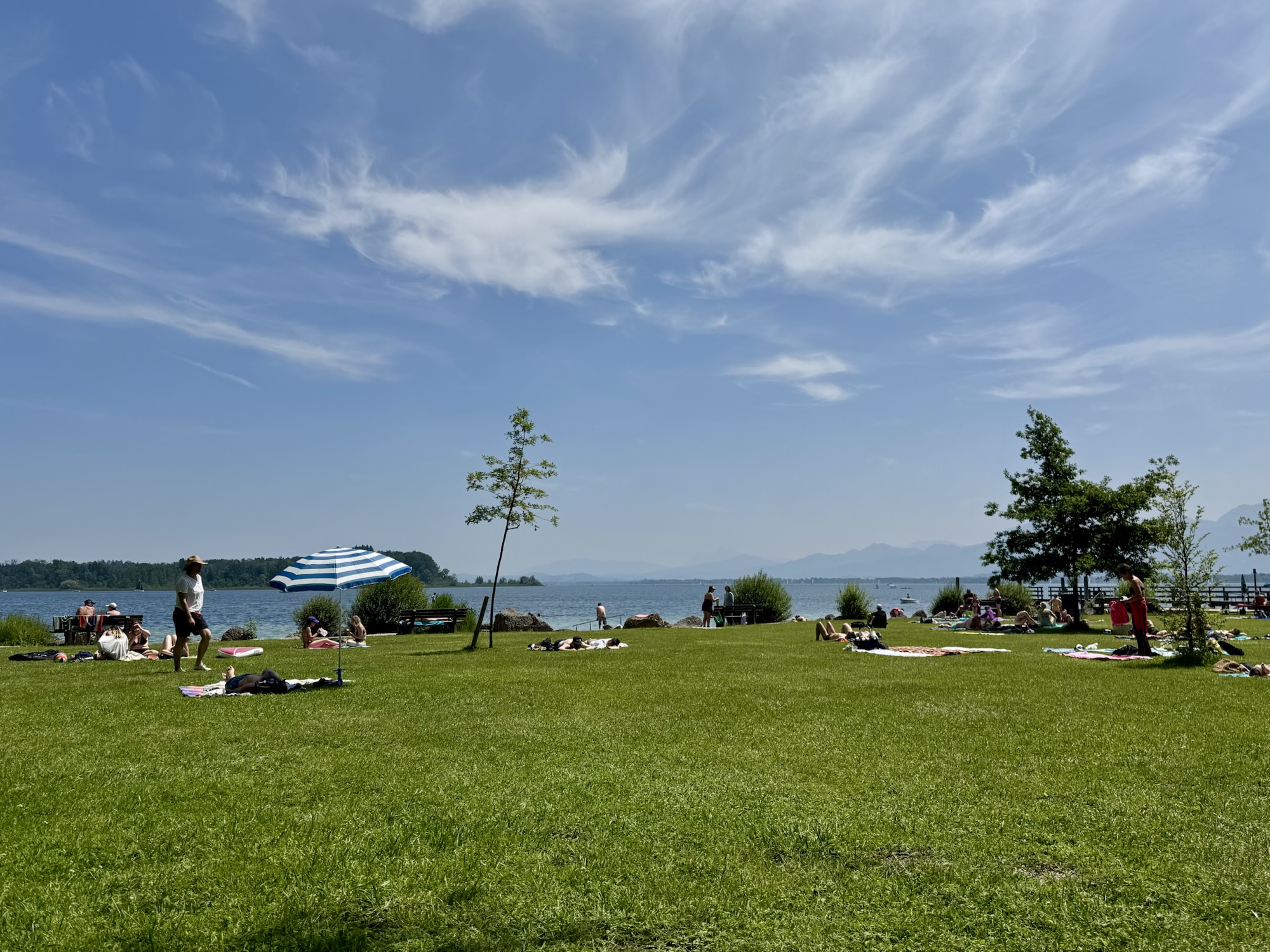 Wie letztes Jahr, haben wir uns auch diesmal entschieden eine Nacht am Chiemsee zu verbringen. Diesmal wollten wir aber die westliche Seite checken. Nach langem Suchen über die App Park4Night hat die Frau Rutzel den Badeplatz Schraml in Prien am Chiemsee vorgeschlagen. Und das hat sich als ein Glücksgriff herausgestellt. Ein Badeplatz mit einer tollen Wiese, schöner Location und netten Mitarbeiterinnen. Und obendrein auch einer der günstigsten um den Chiemsee. Man zahlt 5€ pro Tag für den Parkplatz und 14€ für die Nacht.