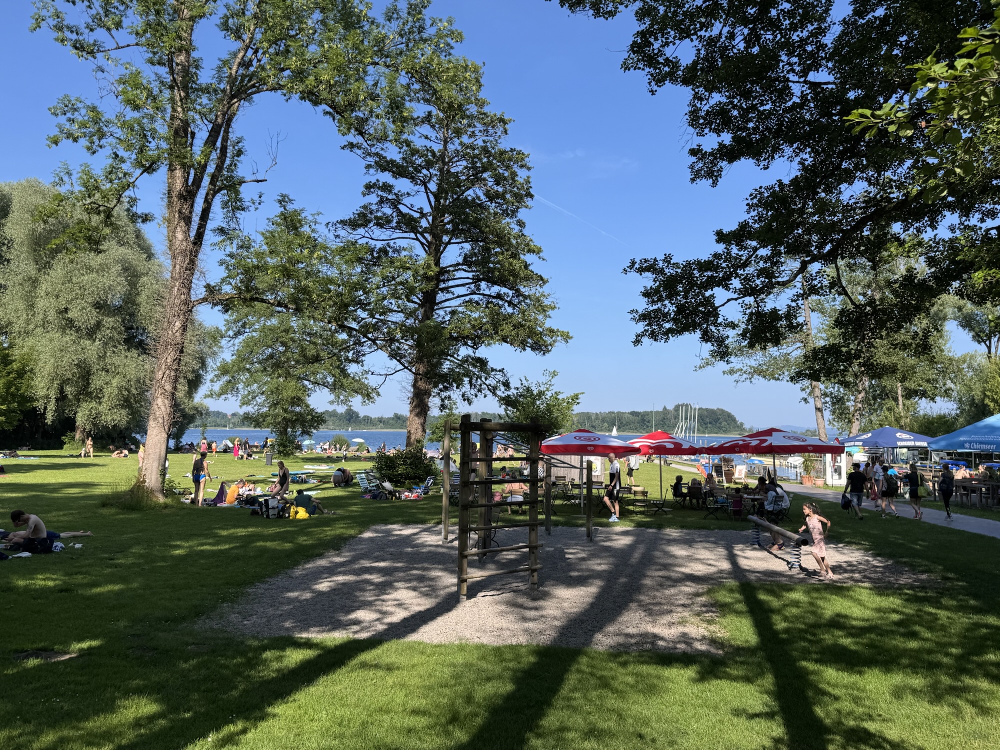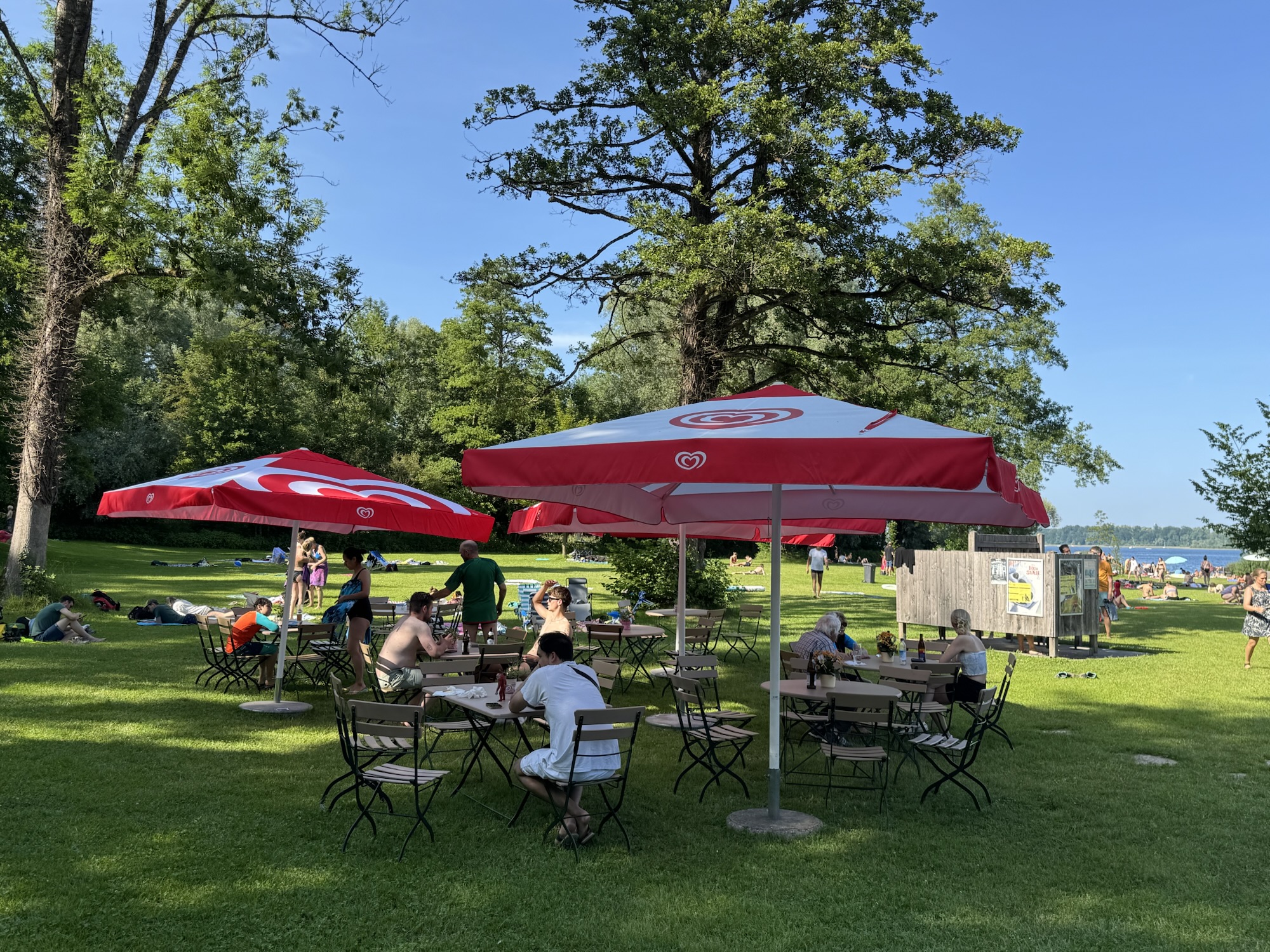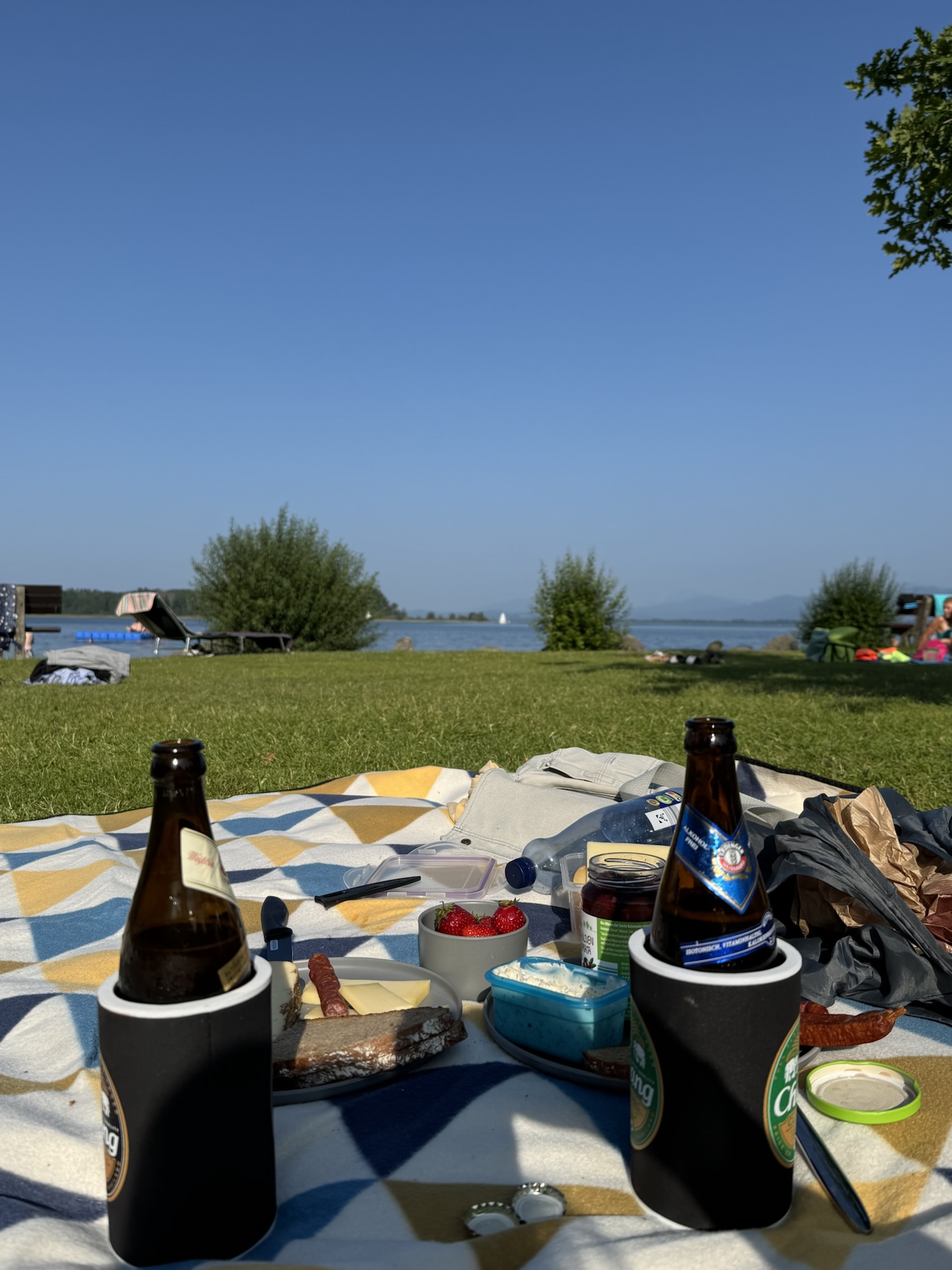 Wie letztes Jahr, haben wir uns auch diesmal entschieden eine Nacht am Chiemsee zu verbringen. Diesmal wollten wir aber die westliche Seite checken. Nach langem Suchen über die App Park4Night hat die Frau Rutzel den Badeplatz Schraml in Prien am Chiemsee vorgeschlagen. Und das hat sich als ein Glücksgriff herausgestellt. Ein Badeplatz mit einer tollen Wiese, schöner Location und netten Mitarbeiterinnen. Und obendrein auch einer der günstigsten um den Chiemsee. Man zahlt 5€ pro Tag für den Parkplatz und 14€ für die Nacht.