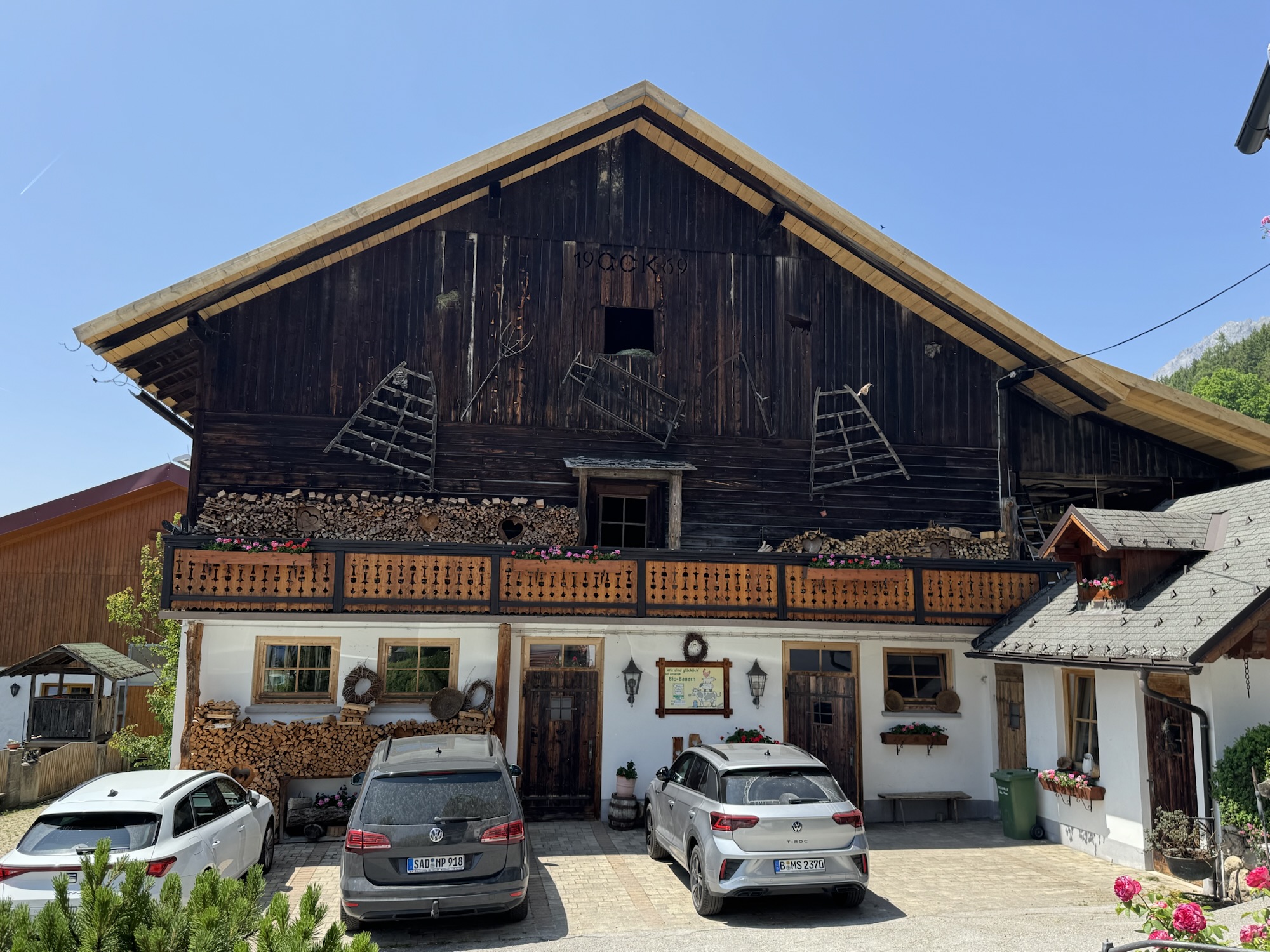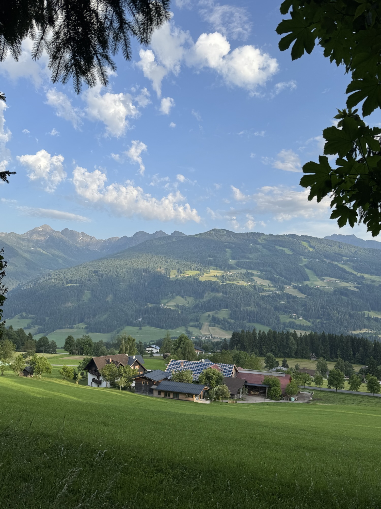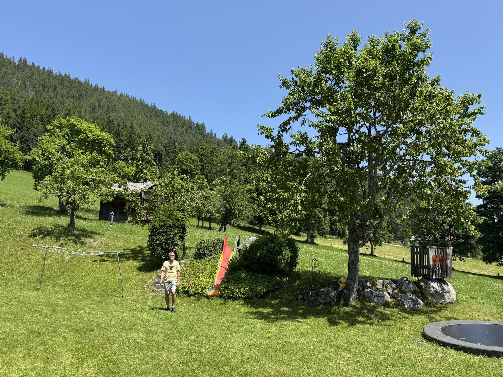 Der Empfang der übernächsten Generation von Eva und Georg war genauso herzlich, wie vor knapp 40 Jahren von Großvater Gottfried und Großmutter Christel. Wir wurden gleich zum Grillen und Bier eingeladen und danach durften wir ein wunderschönes Apartment, mit traumhaften Ausblick auf die Berge, die Weide und auf den Stall beziehen.