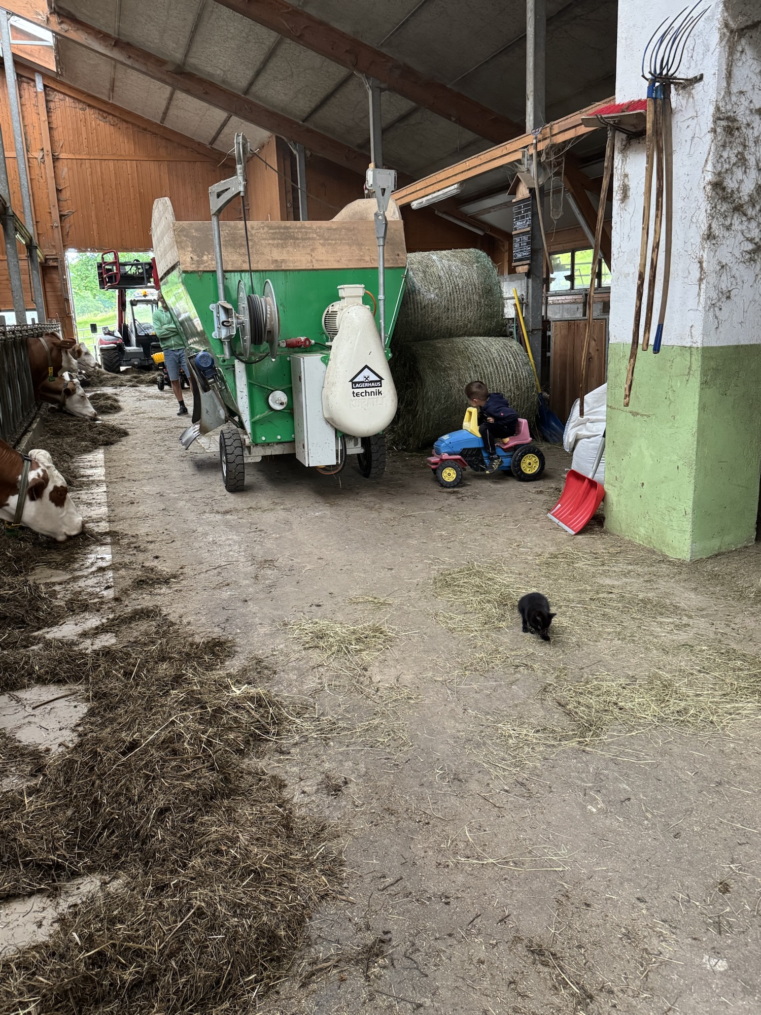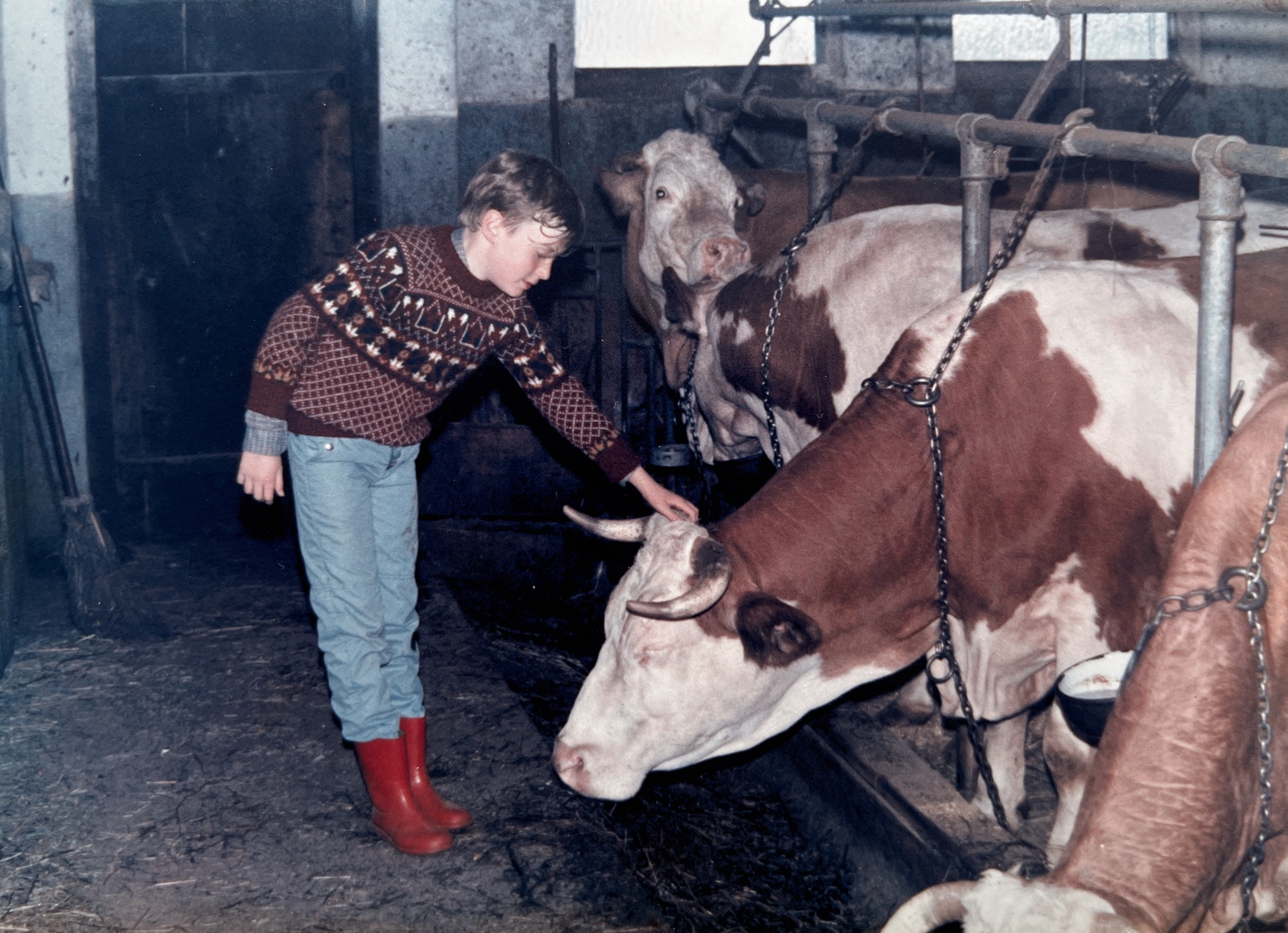 Morgens um 5:00 Uhr ging es mit Gottfried in den Stall zum misten und melken und danach ging es meist direkt aus dem Stall an den Frühstückstisch. Selbstverständlich mit den Stall-Klamotten. Wenn jemand damals dem kleinen Rutzel auf den unangenehmen Stallgeruch angesprochen hat, dann ging er sofort an die Decke und verteidigte, den für ihn „guten Geruch“. Diesen guten Geruch trägt er heute noch unverändert in seiner Nase und dem Herzen 💚.