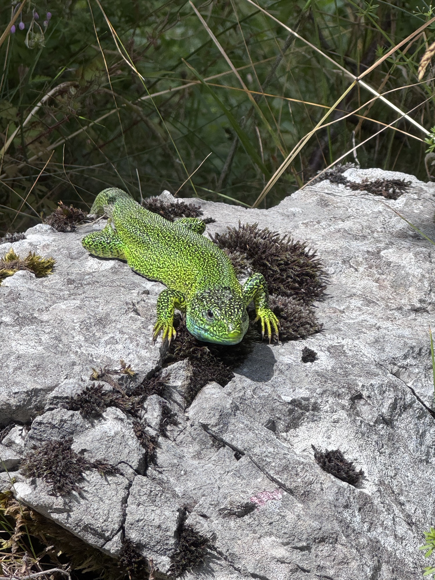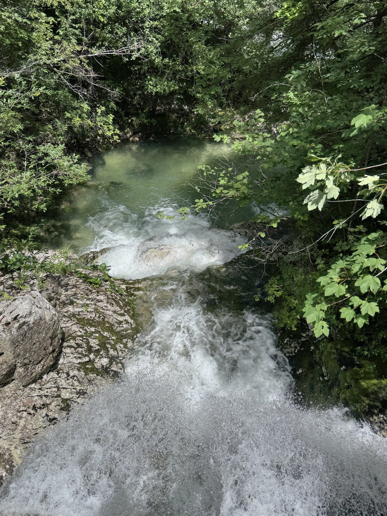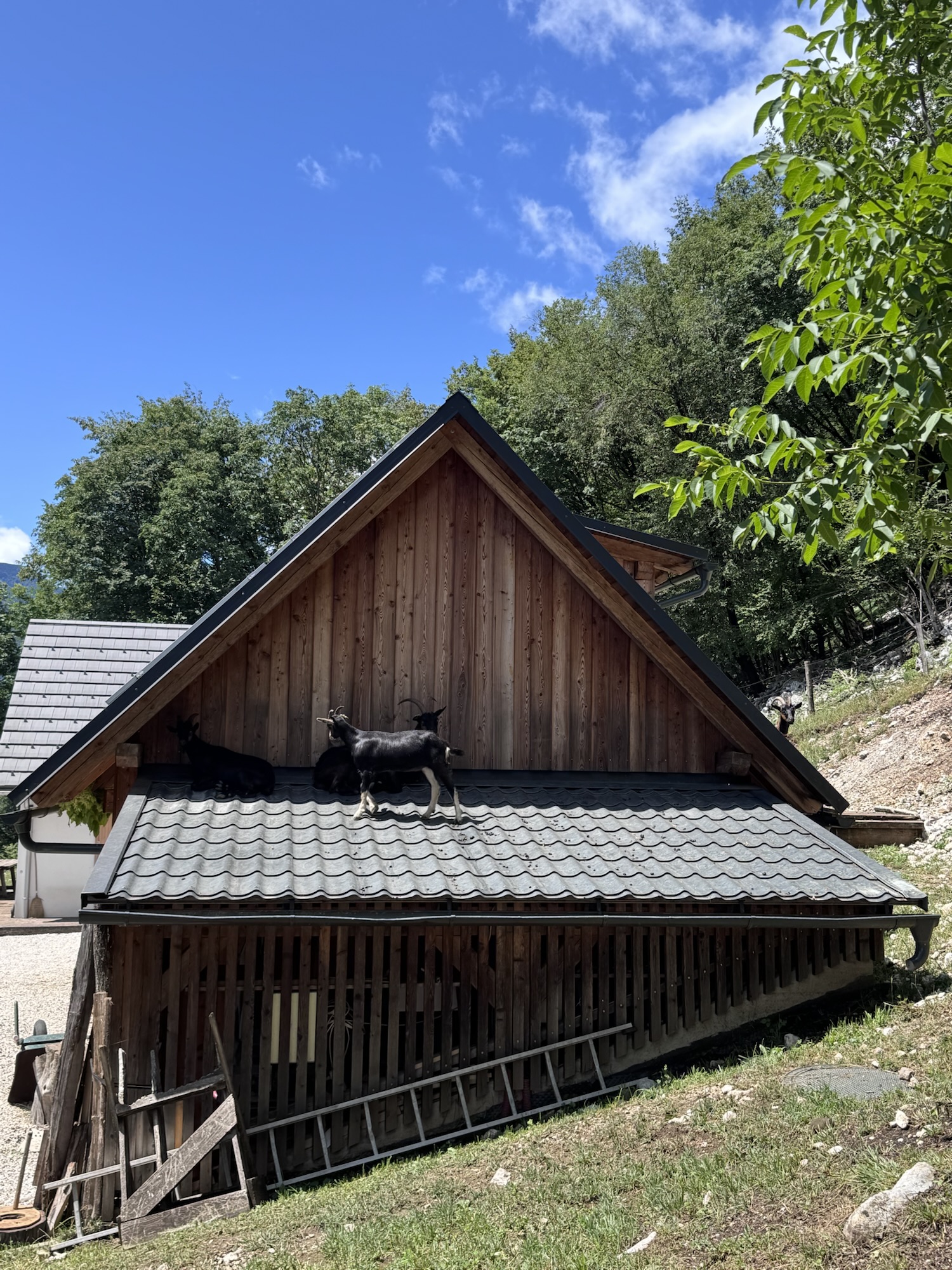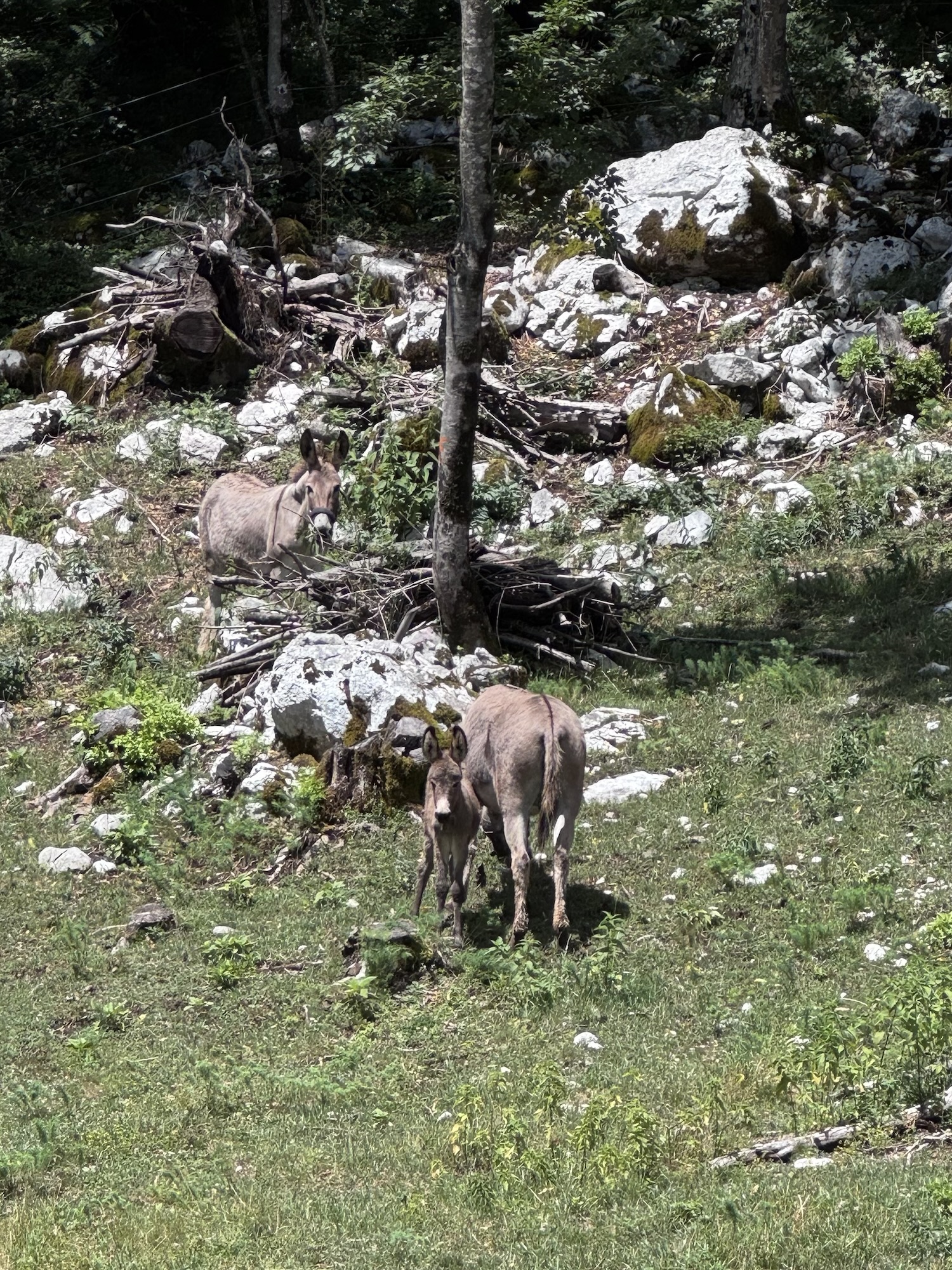 Auf den Fotos, die man im Internet sieht, ist der Virje Wasserfall im Sommer eher ein Rinnsal mit türkisenem Pool, aber nach dem Regen kam ordentlich Wasser runter. Auf dem Weg dorthin haben wir die ein oder andere schöne Smaragdeidechse, süße Esel und Ziegen gesehen. Na, wie viele Ziegen stehen auf dem Dach? 🤔