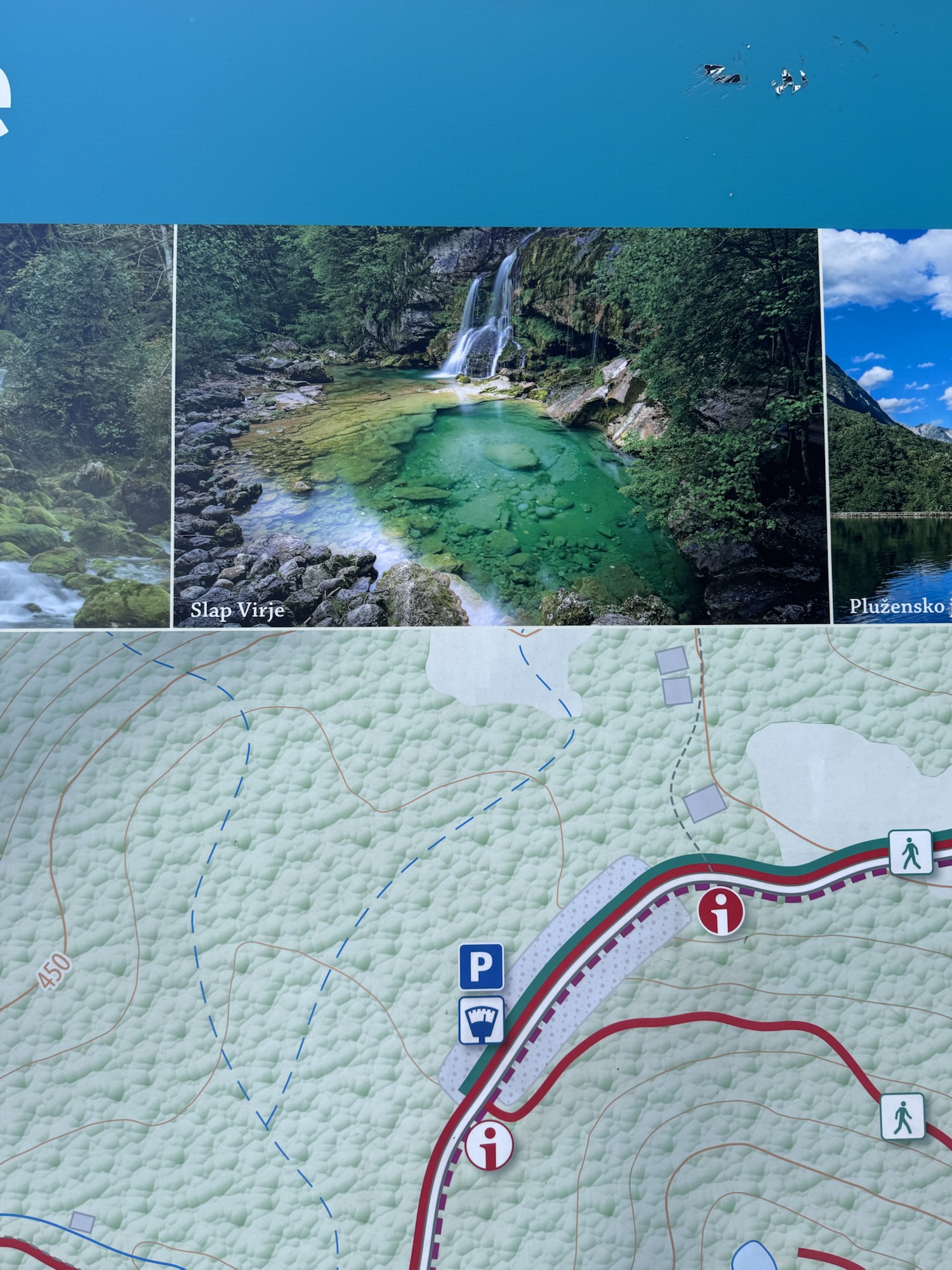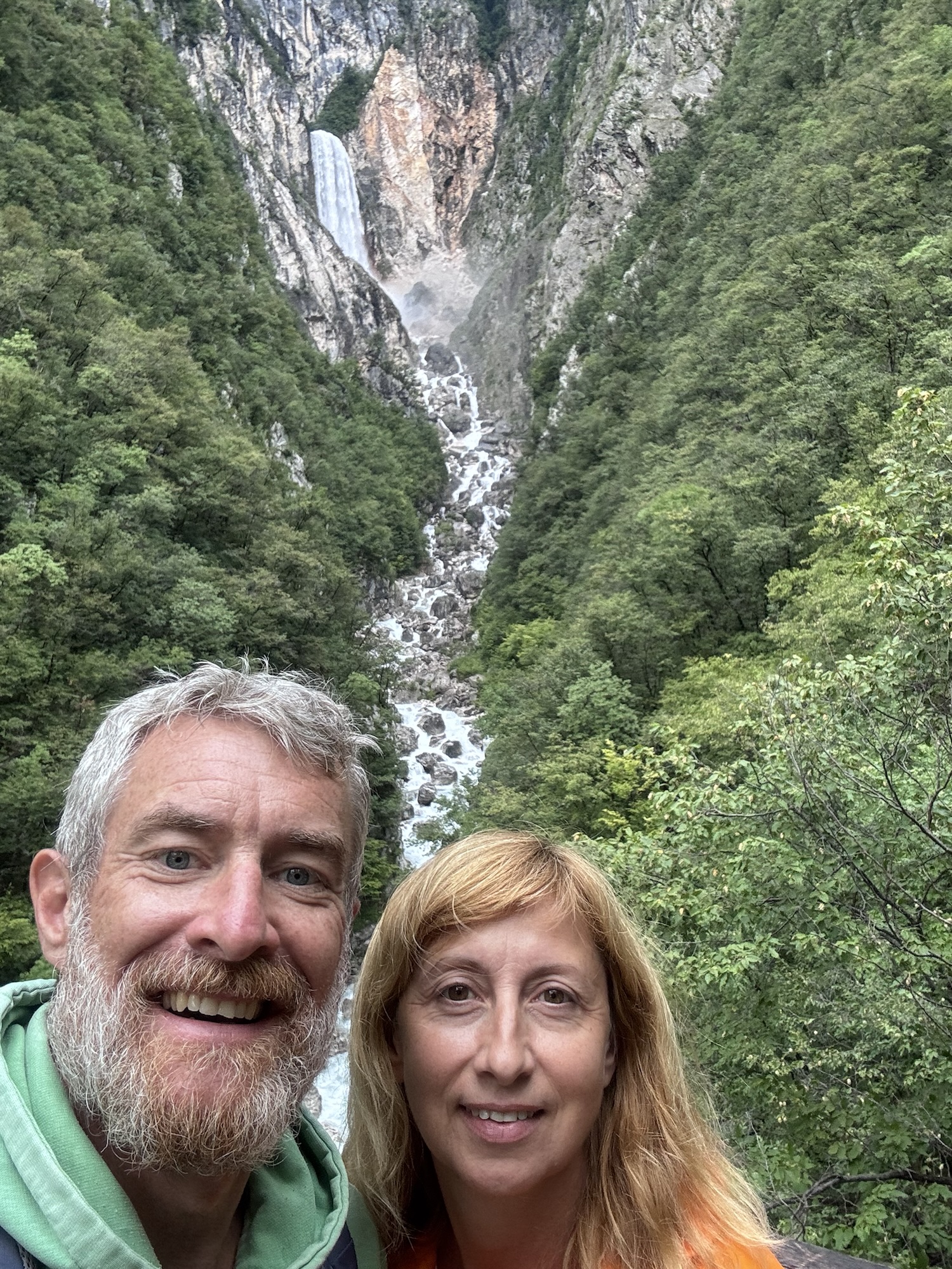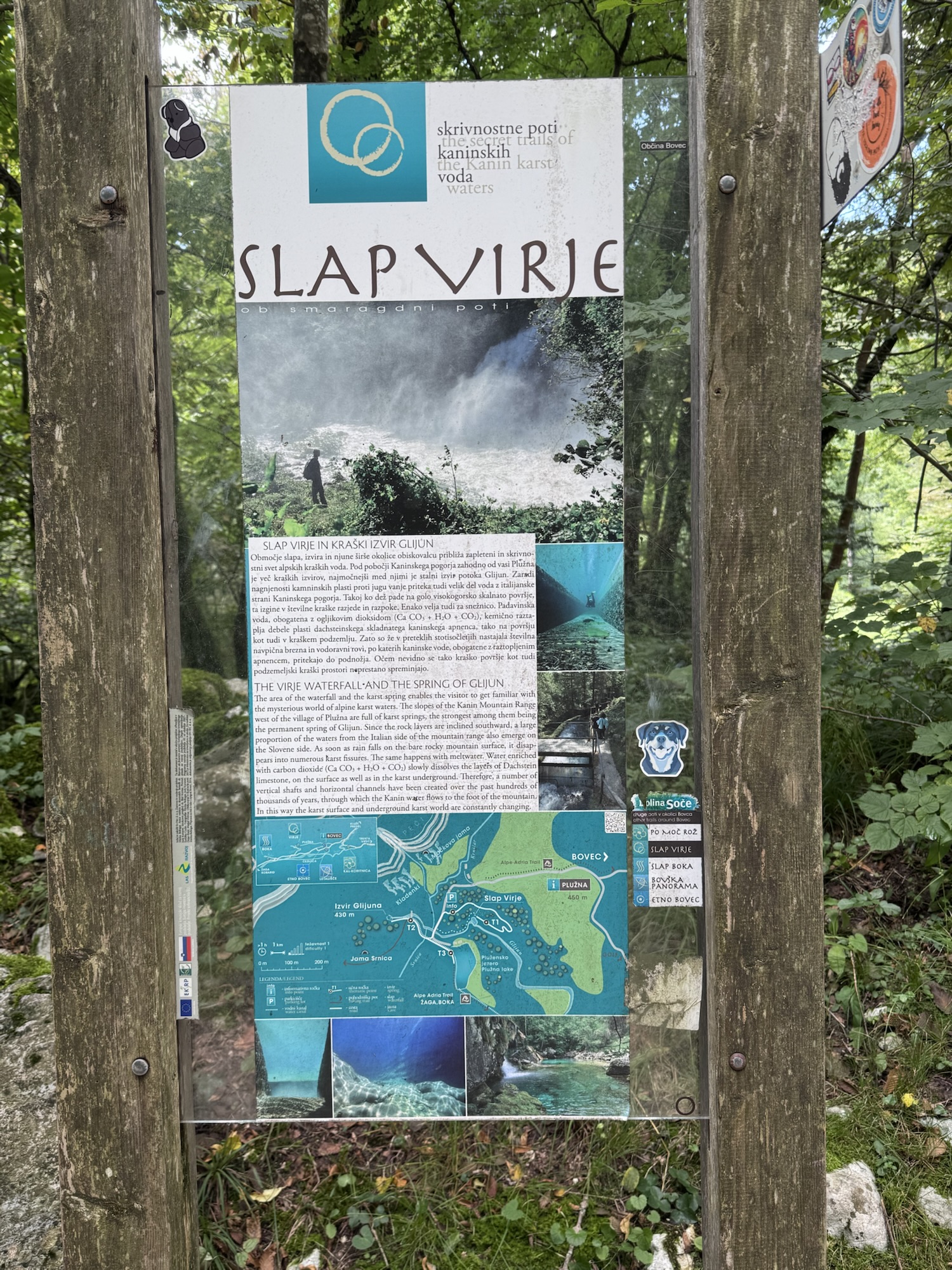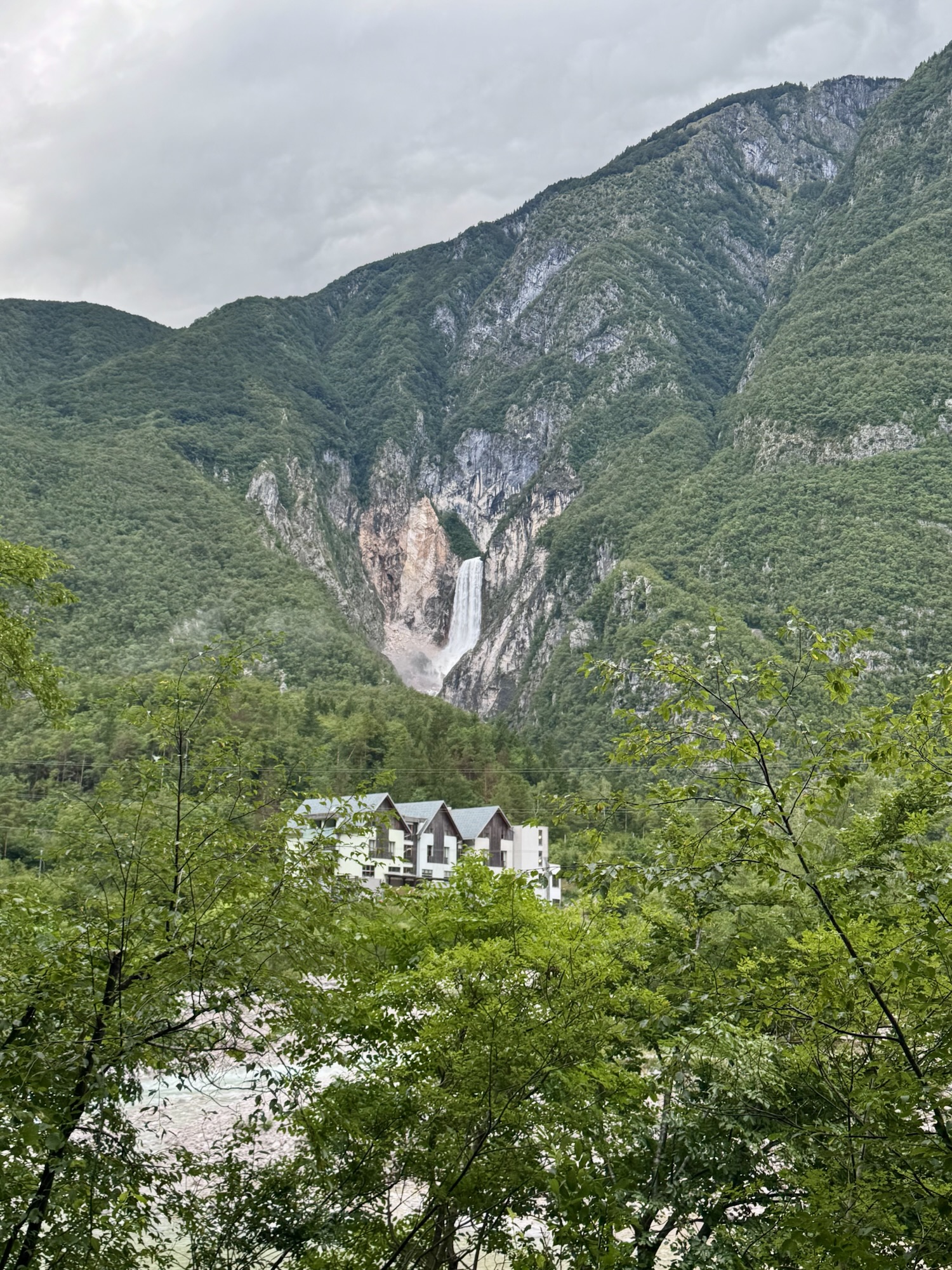 Am nächsten Morgen sah es immer noch so aus, als würde es den ganzen Tag regnen, aber irgendwann kam die Sonne und wir sind dann zu einer Loop Wanderung aufgebrochen. Als erstes wollten wir uns den Virje Wasserfall anschauen, dann in die kleine Stadt Bovec und danach auf der anderen Seite des Flusses zurück zum Campingplatz. Zusammen knapp ~19 Kilometer.
