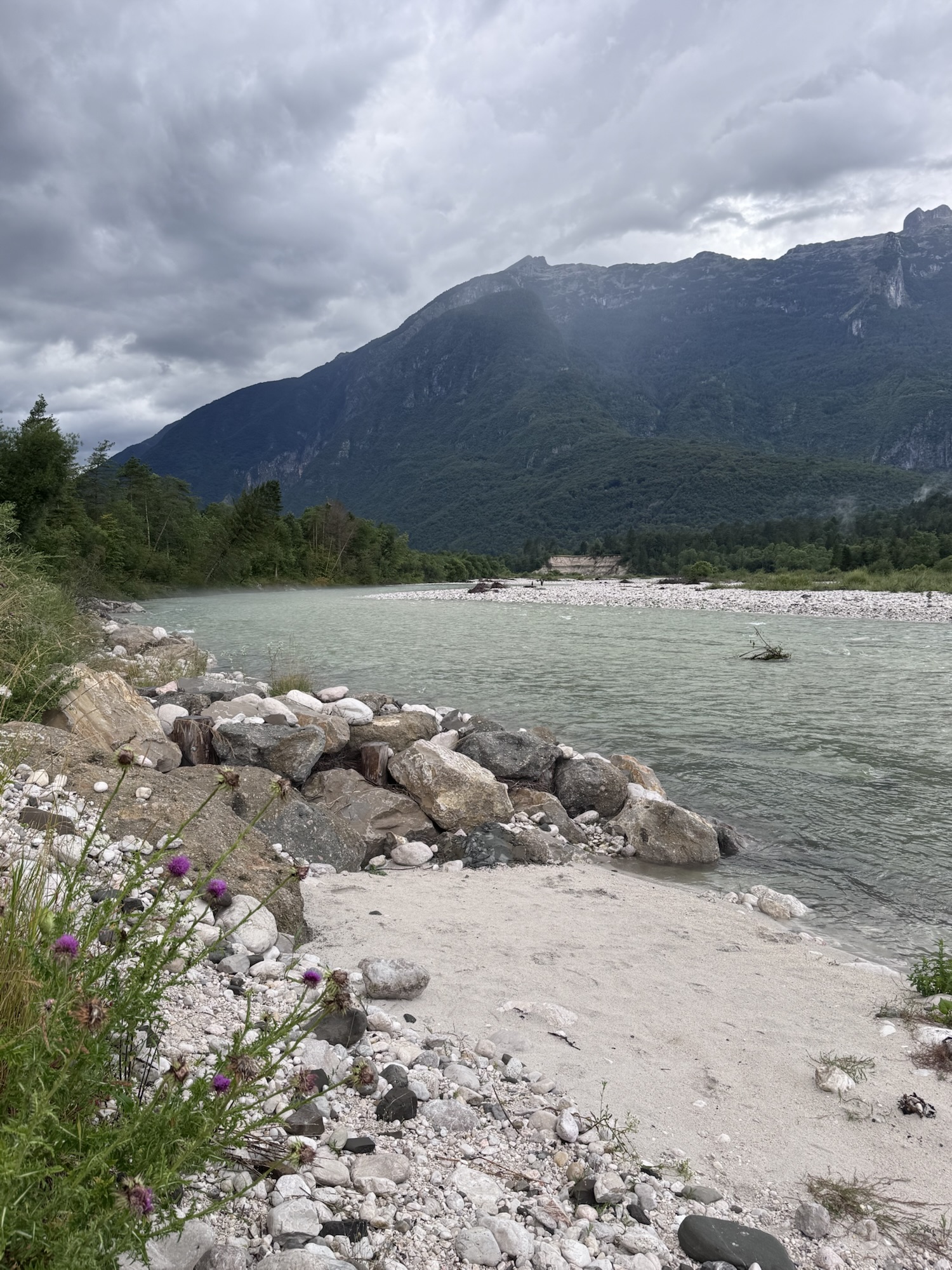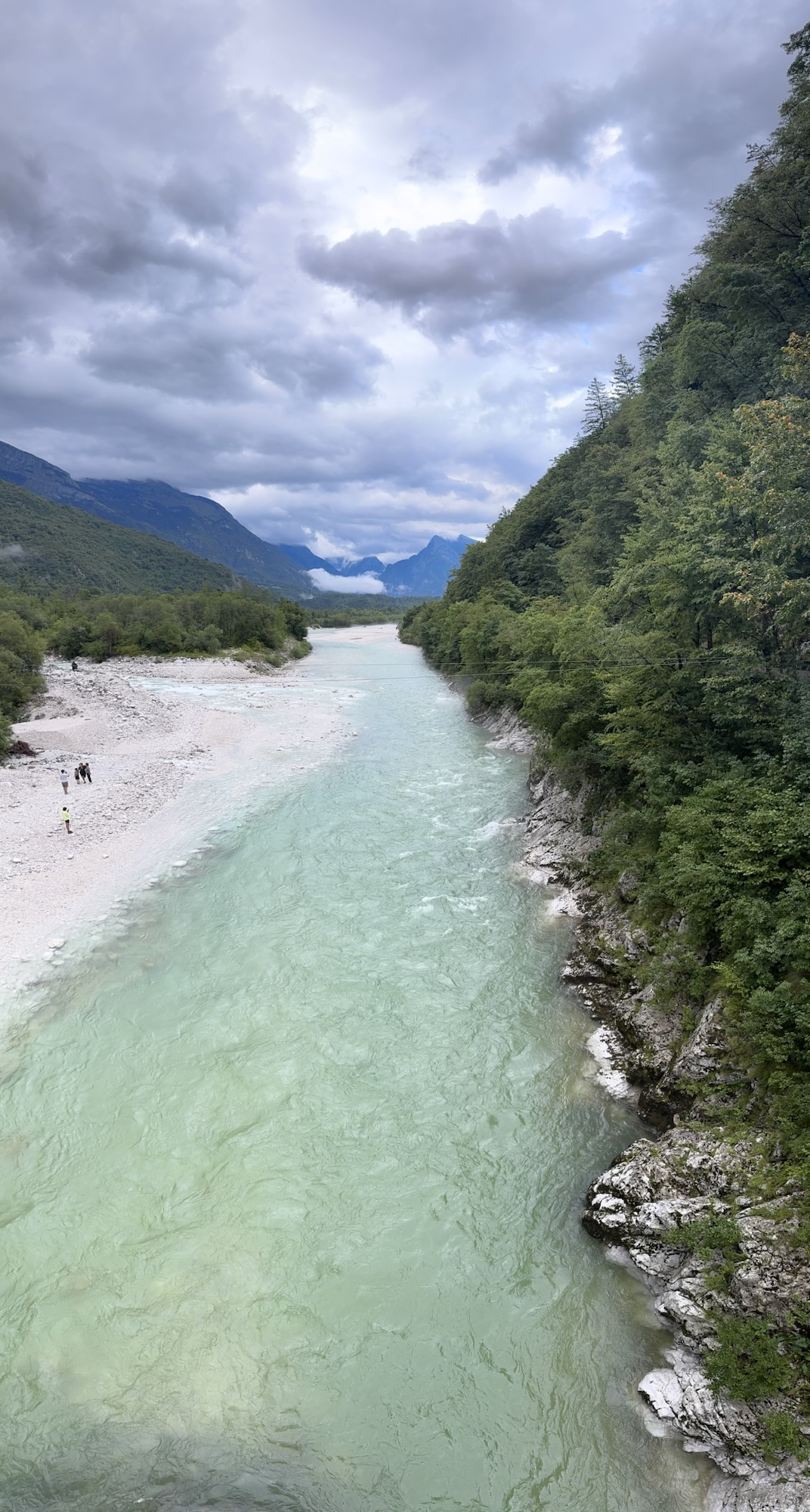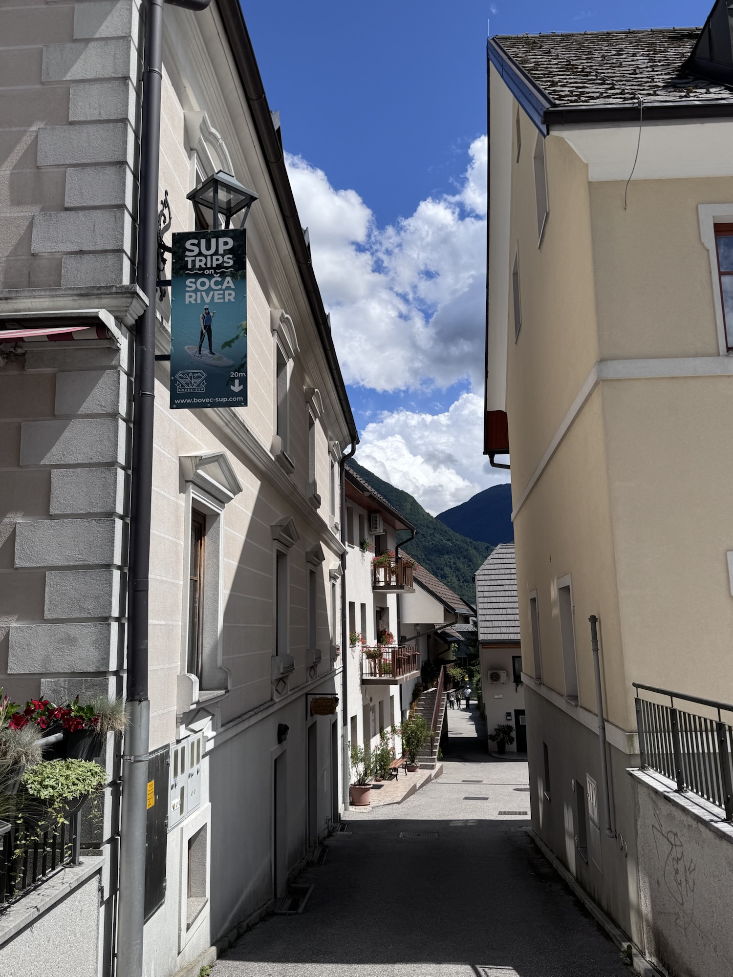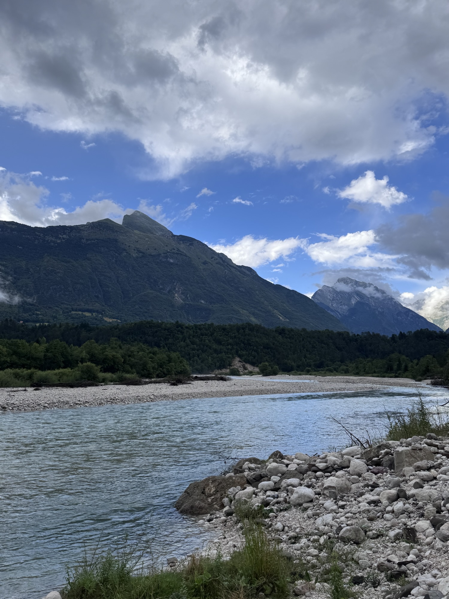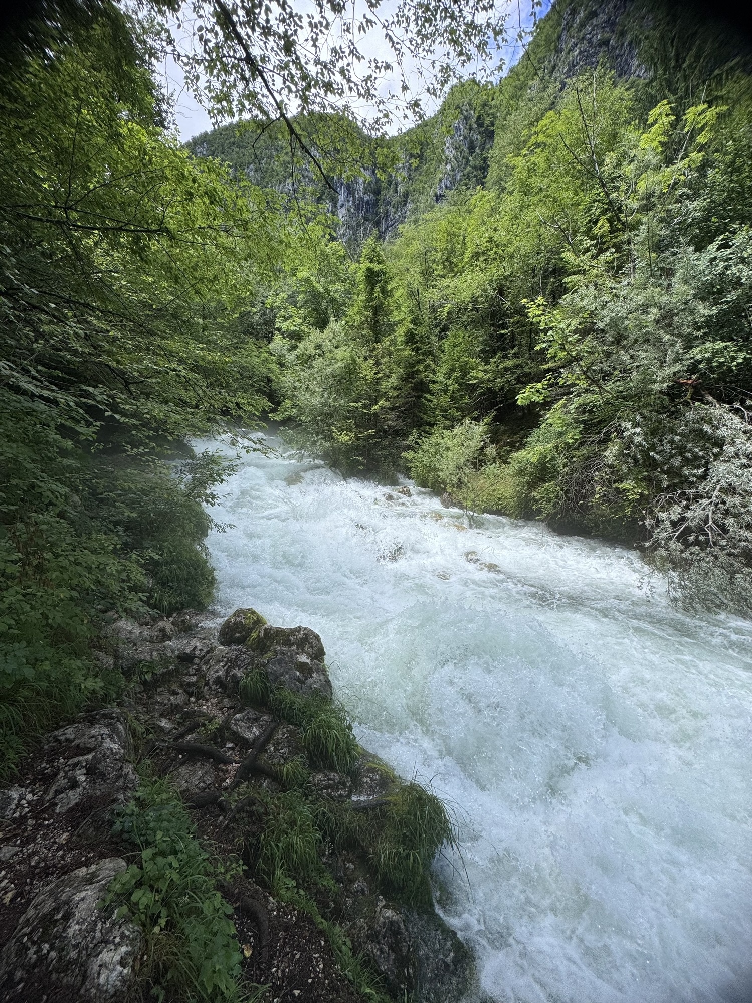Am nächsten Morgen sah es immer noch so aus, als würde es den ganzen Tag regnen, aber irgendwann kam die Sonne und wir sind dann zu einer Loop Wanderung aufgebrochen. Als erstes wollten wir uns den Virje Wasserfall anschauen, dann in die kleine Stadt Bovec und danach auf der anderen Seite des Flusses zurück zum Campingplatz. Zusammen knapp ~19 Kilometer.