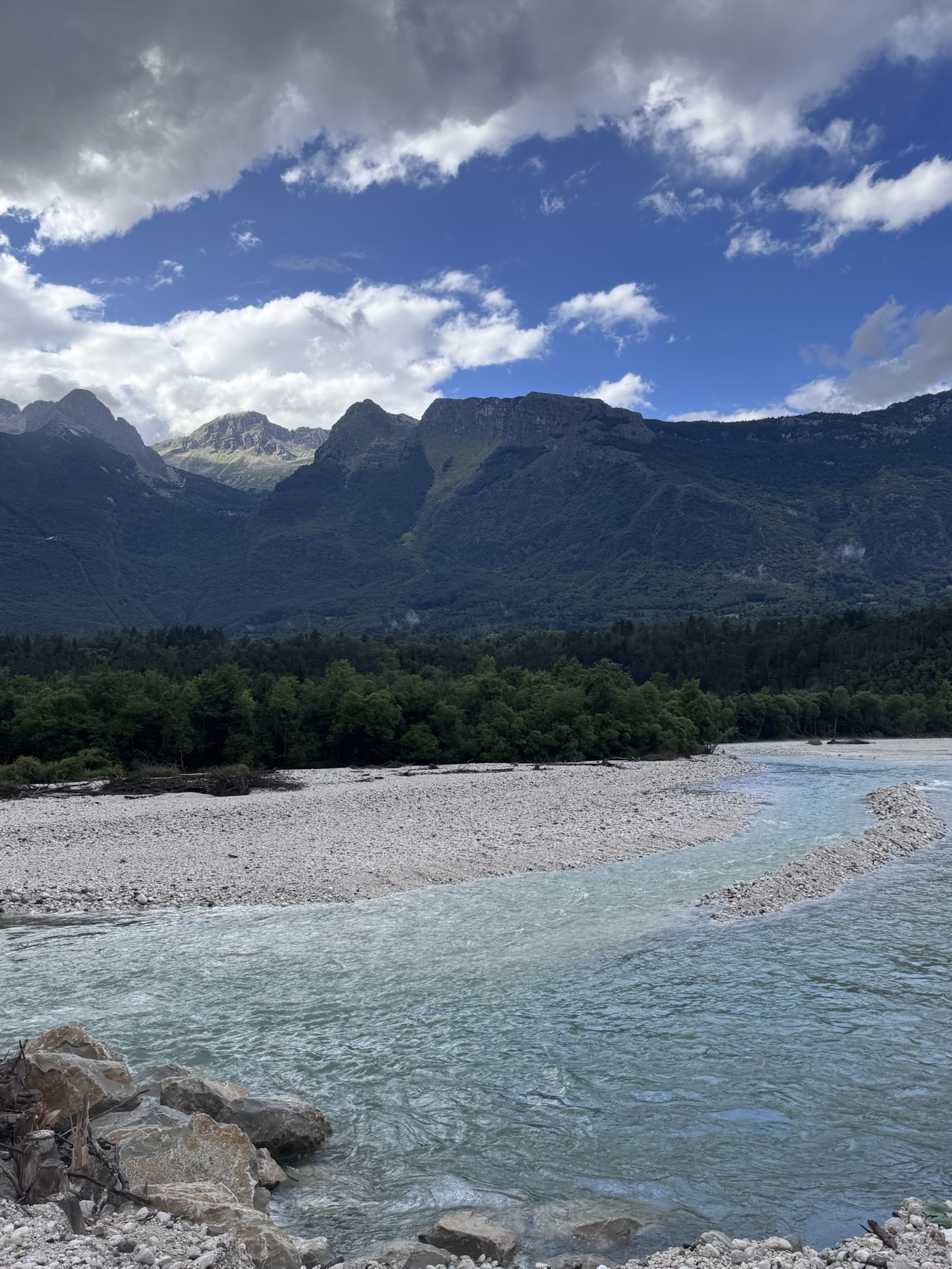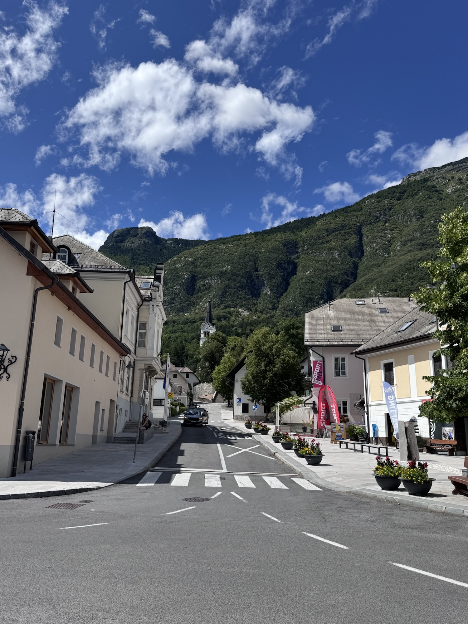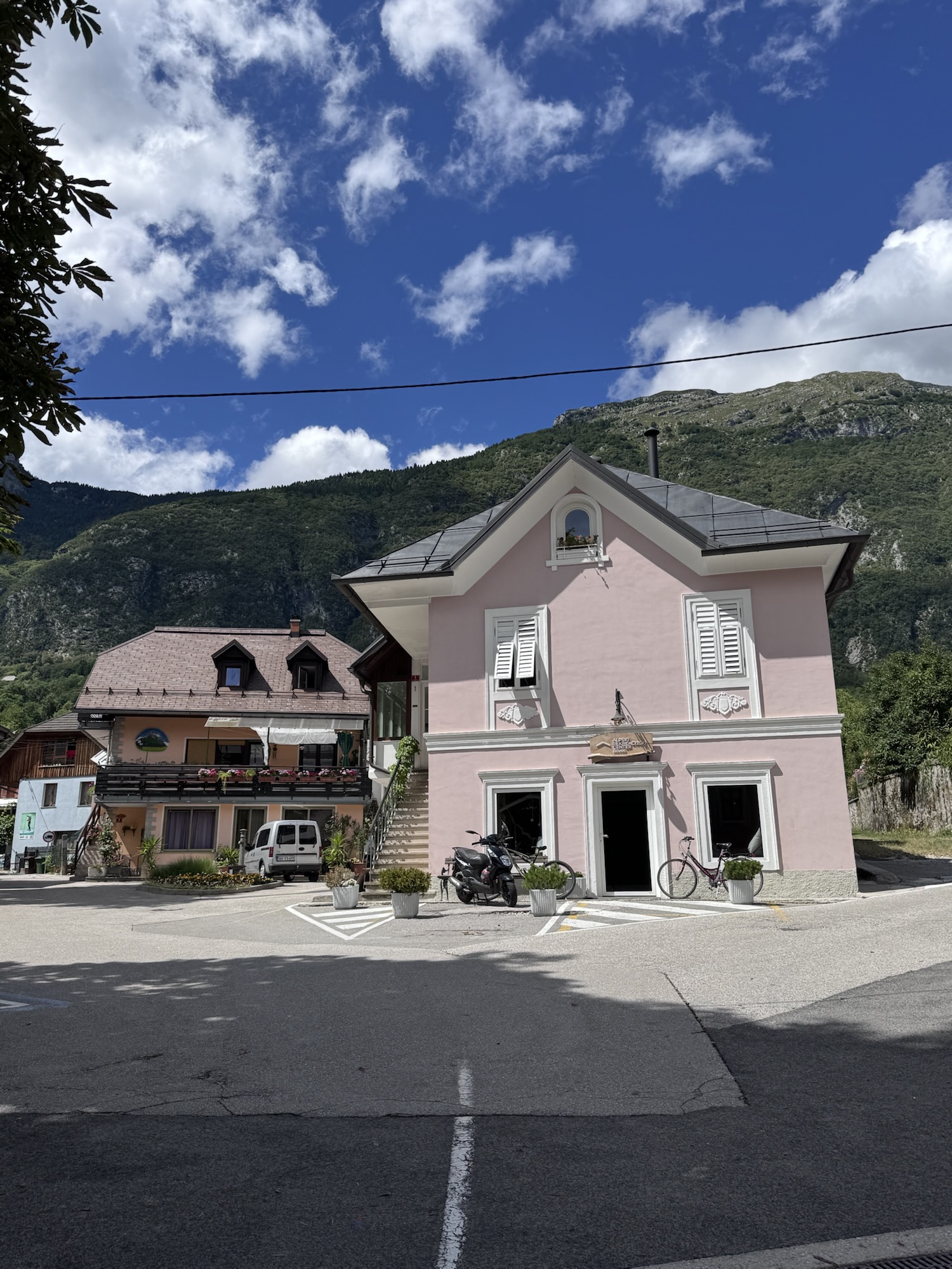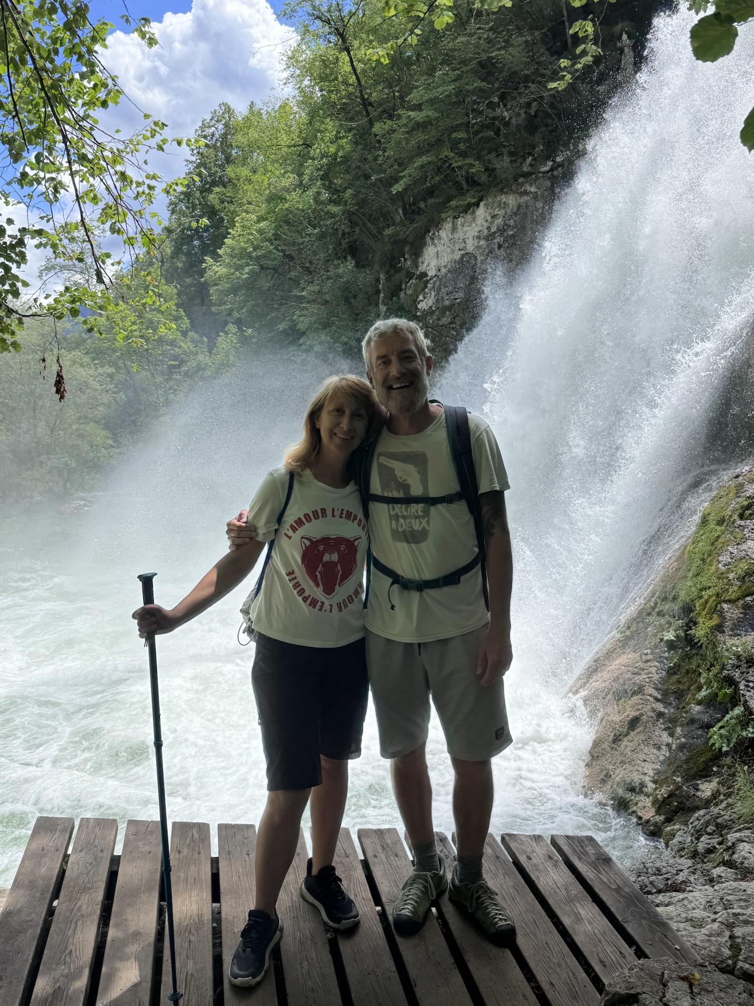 Am nächsten Morgen sah es immer noch so aus, als würde es den ganzen Tag regnen, aber irgendwann kam die Sonne und wir sind dann zu einer Loop Wanderung aufgebrochen. Als erstes wollten wir uns den Virje Wasserfall anschauen, dann in die kleine Stadt Bovec und danach auf der anderen Seite des Flusses zurück zum Campingplatz. Zusammen knapp ~19 Kilometer.